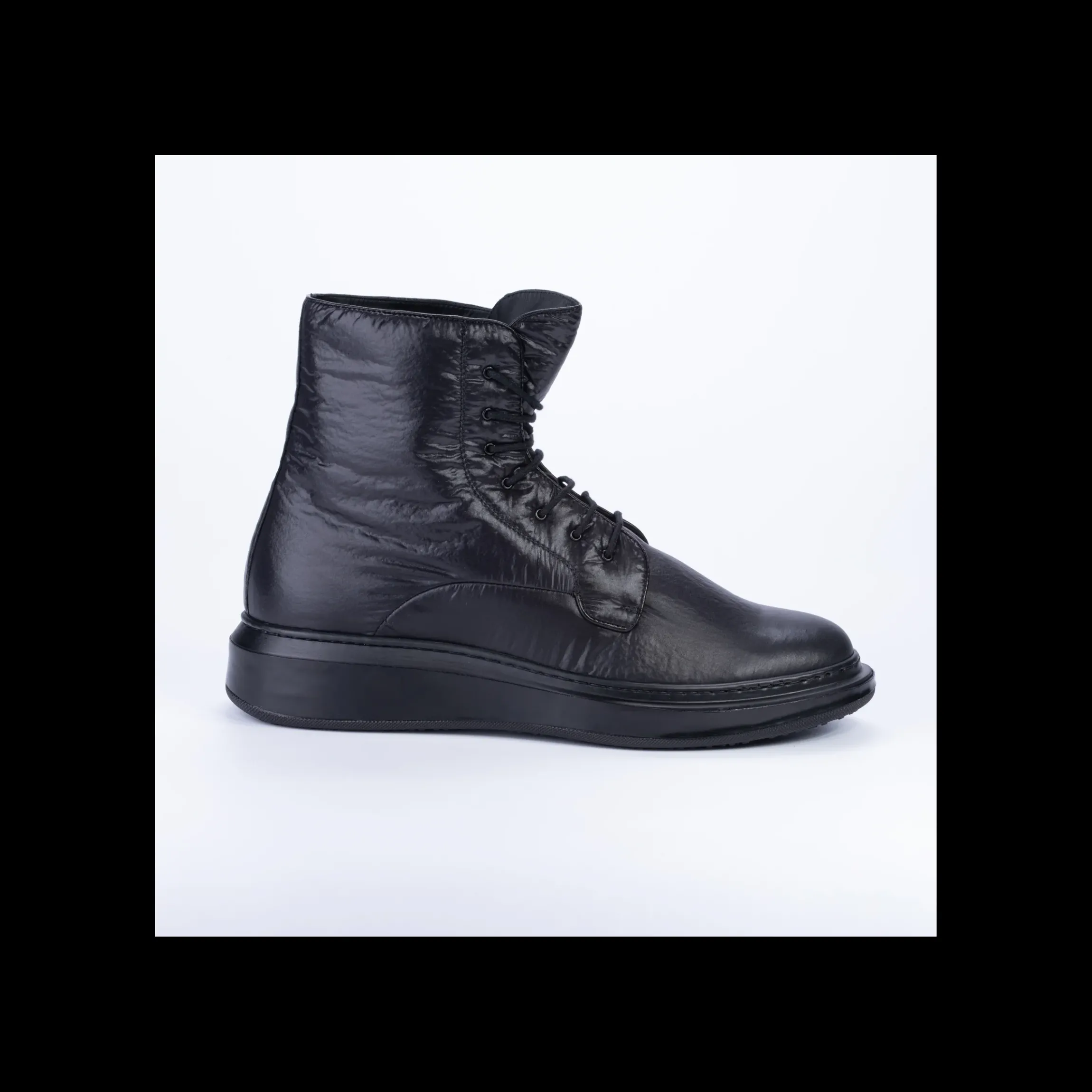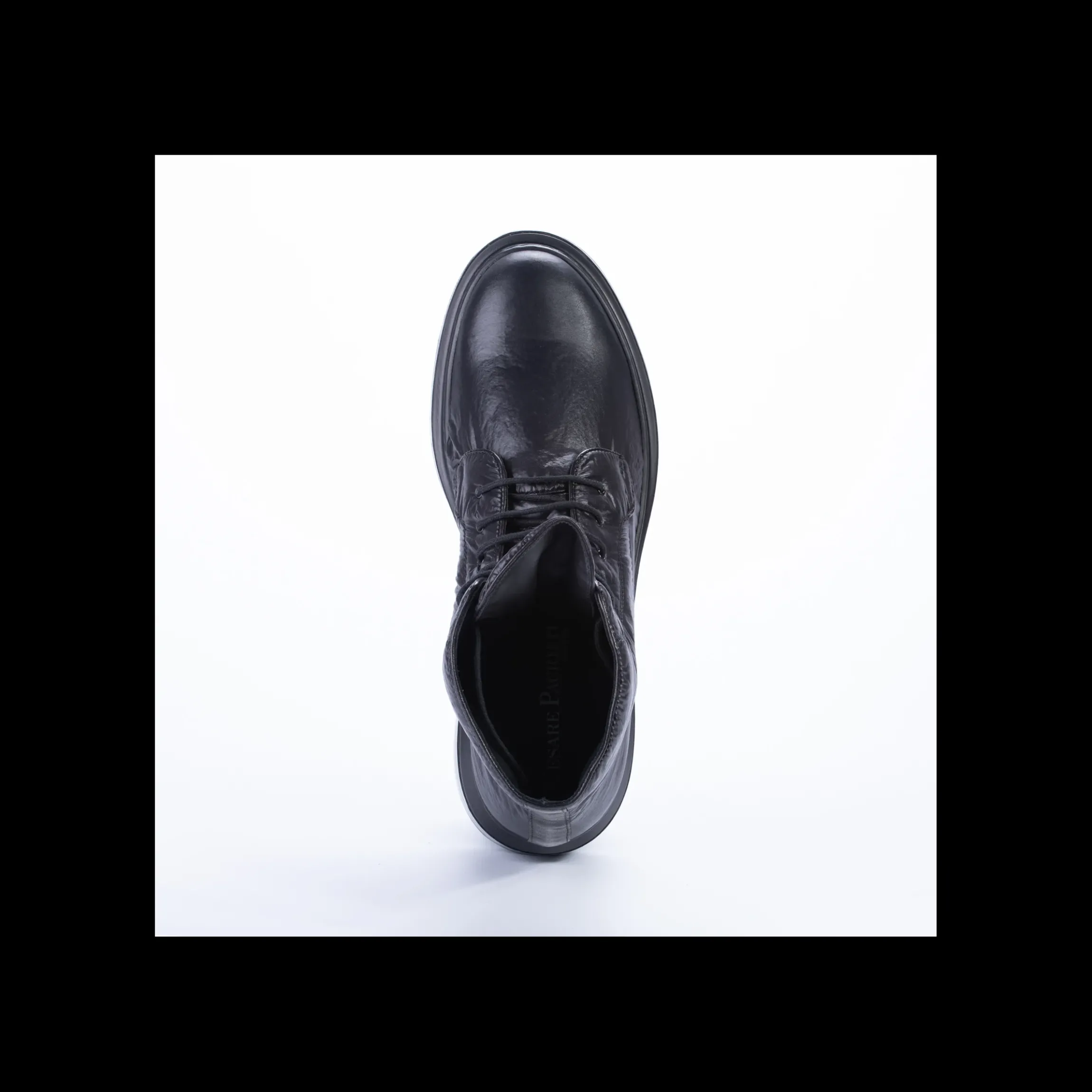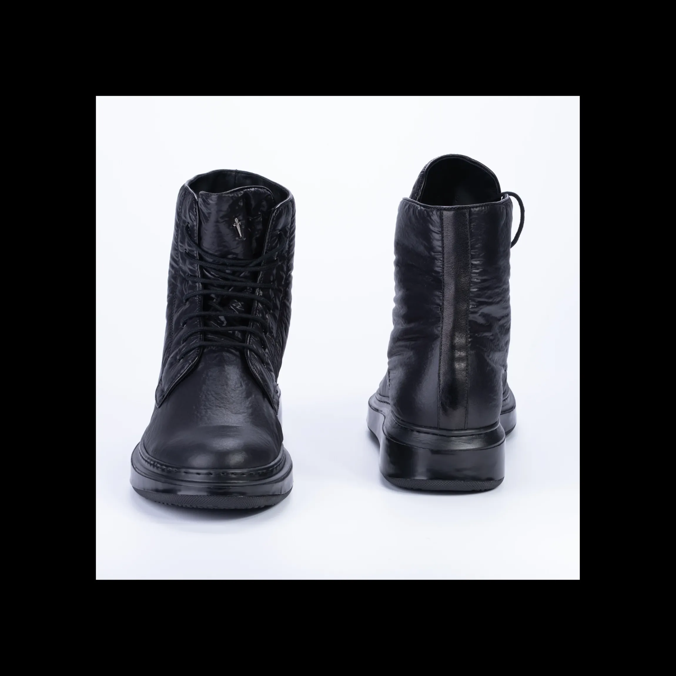 Anfibio uomo CESARE PACIOTTI in pelle e fibra tessile traslucida colore nero, allacciato , interno in pelle, para in gomma, spadino logo metallico su patta frontale.
