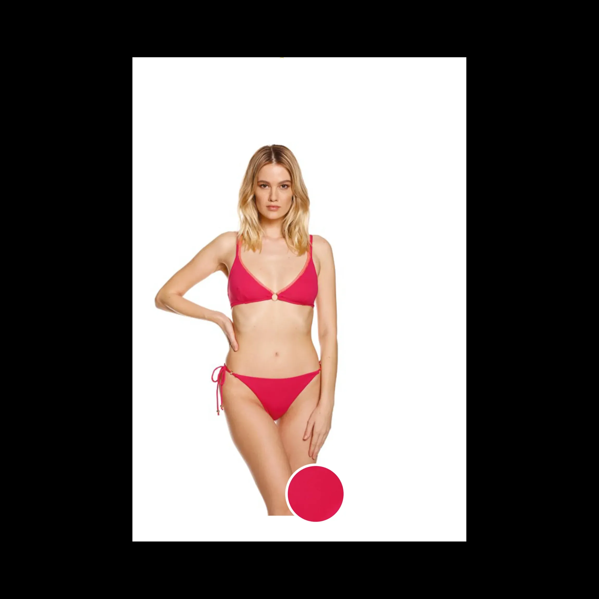 Bikini Triangolo Cotazur, con treccia e anelli gold, spalline con regolatori, coppe estraibili, slip media copertura.