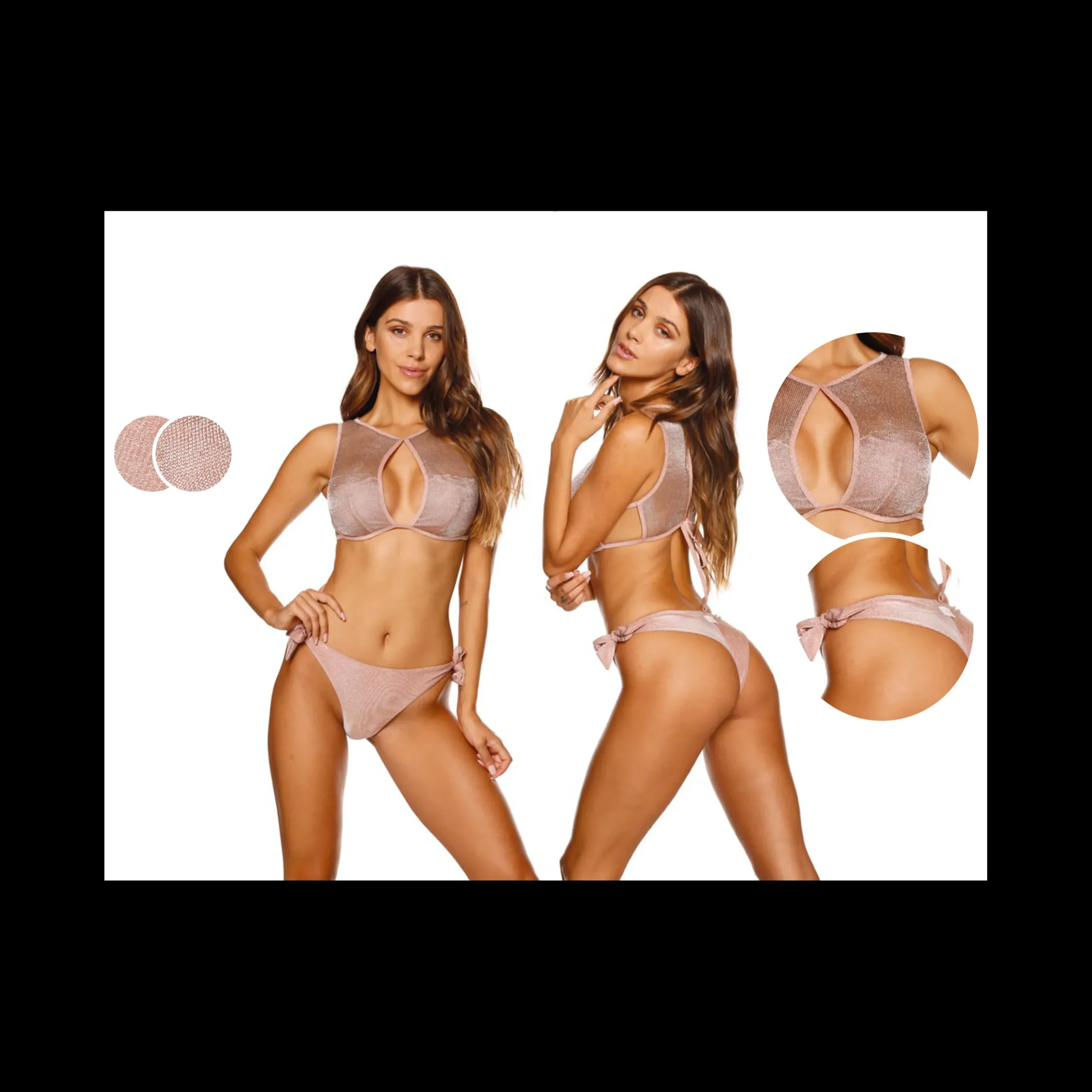 Bikini Corpetto Cotazur, in rete Oro e Rosa, in lurex, coppe estraibili, slip brasiliano.