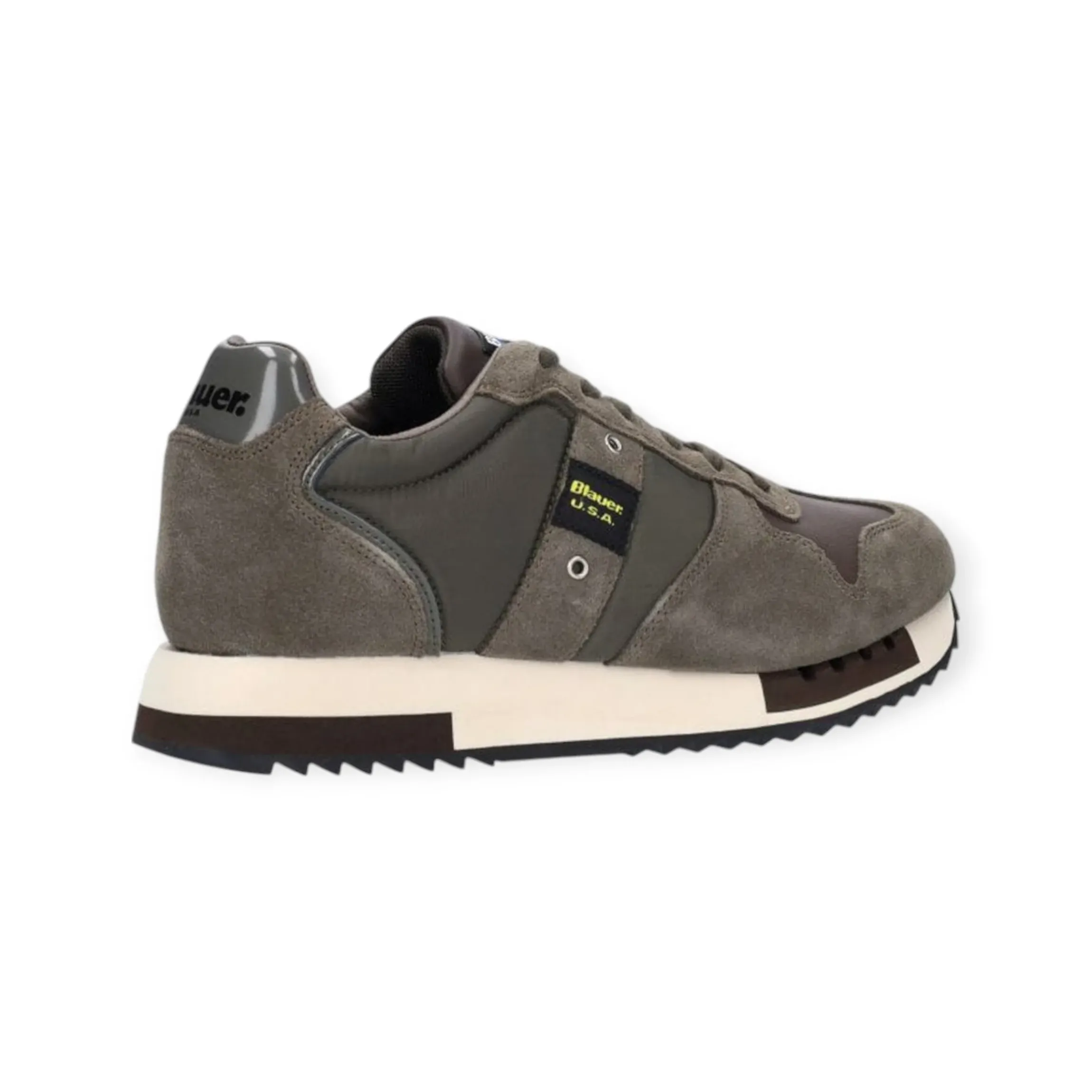 BLAUER SNEAKERS UOMO QUEENS01 in pelle scamosciata, pelle liscia e tessuto con suola in gomma di altissima qualità. All interno la soletta anatomica ed estraibile per il massimo comfort. Dettaglio sul lato esterno con borchie in metallo ed etichetta BLAUER USA con punta tonda e lacci in tessuto. La scarpa è disponibile in vari colori