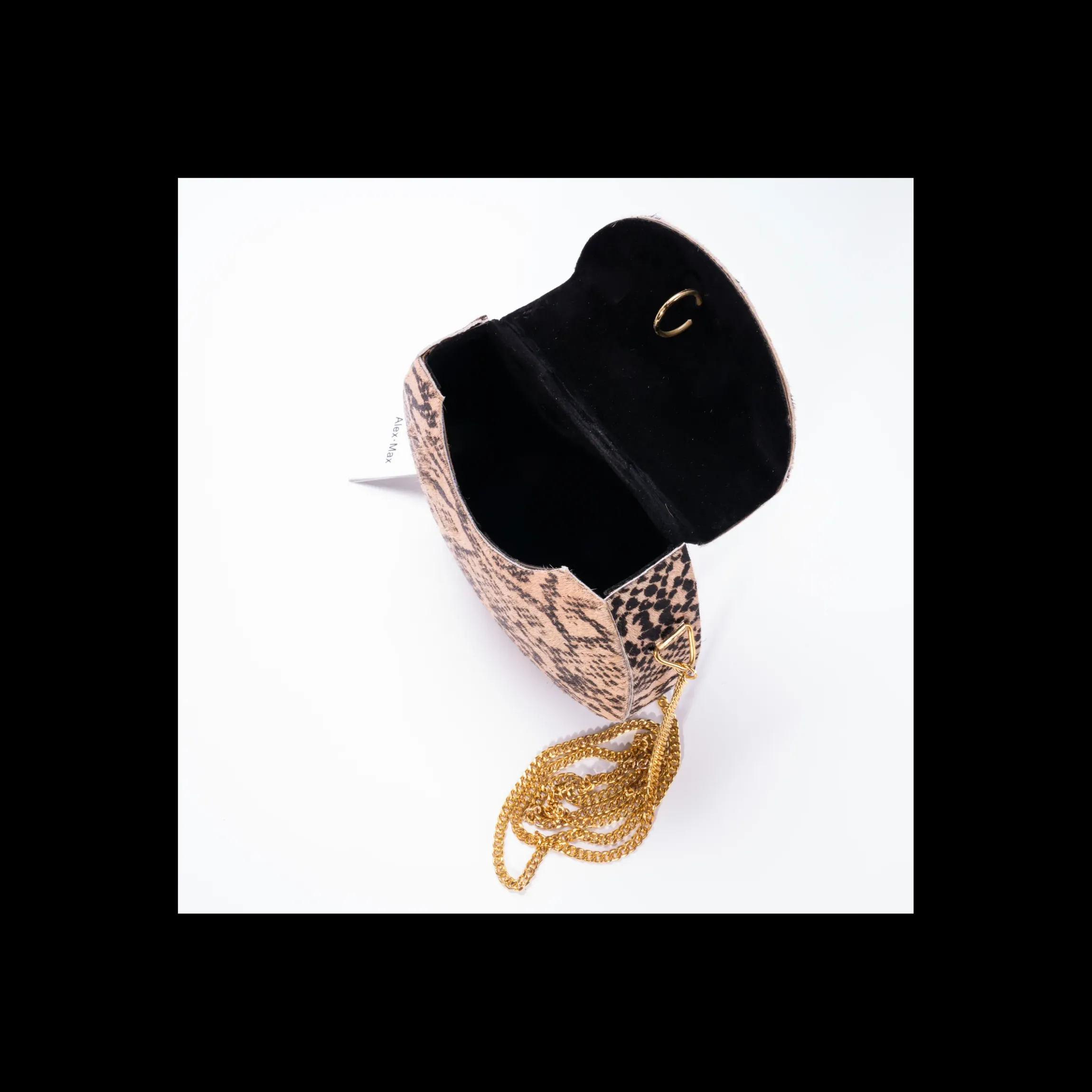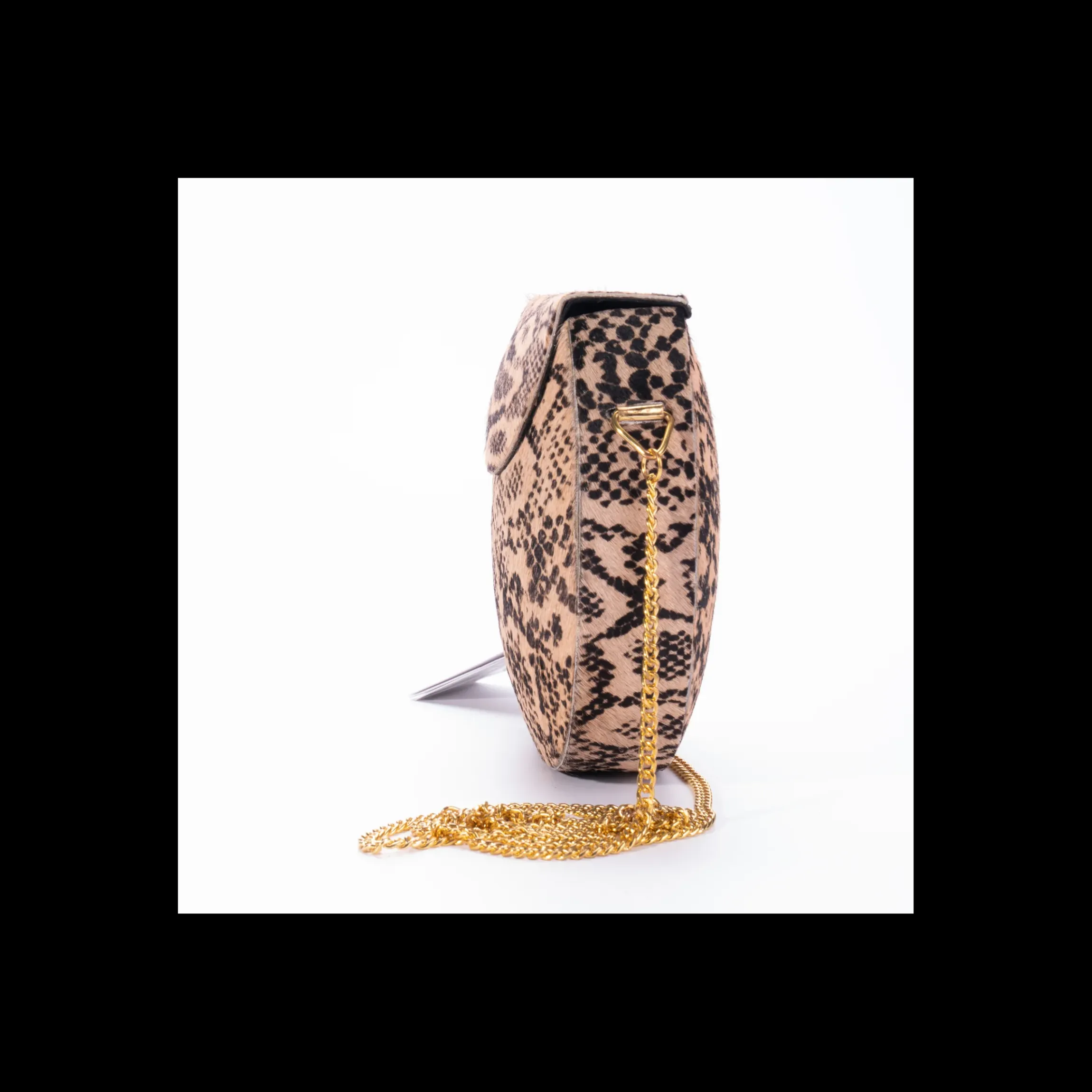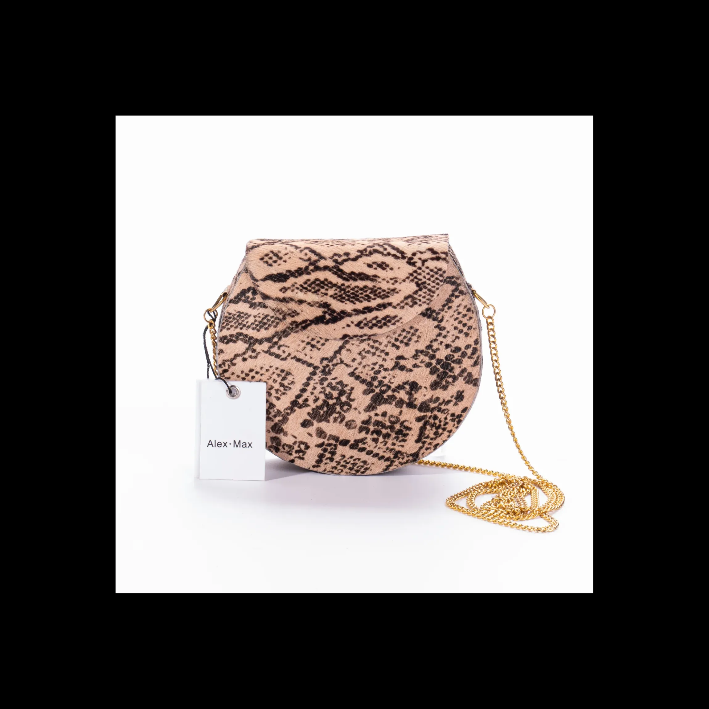 Tracollina rigida ALEX MAX in cavallino fantasia rettile colore base beige, catenina estraibile metallica colore oro ,tasca interna unica