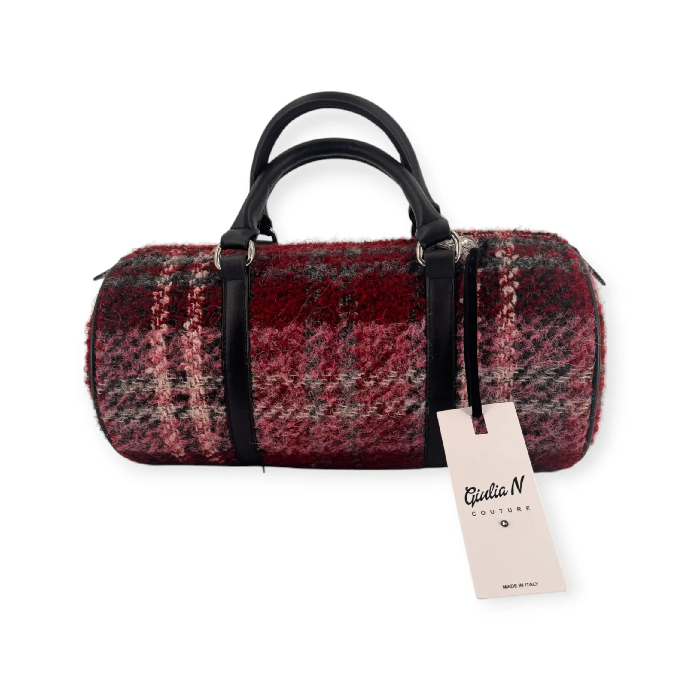 BORSA GIULIA N COUTURE . DUE TESSUTI PER LA STESSA FORMA. NERA IN TESSUTO CON FIORI IN TRE 3 STAMPA NERO SU NERO E MAXY LOGO CUCITO SUL LATO. L’ALTRA IN TESSUTO LANA BORDO’ E CKECH A QUADRI. PEREFTTE DA COORDINARE AI CAPPOTTI O AI VESTITI DELLA MEDESIMA FANTASIA IN PERFETTO STILE DEL BRAND.