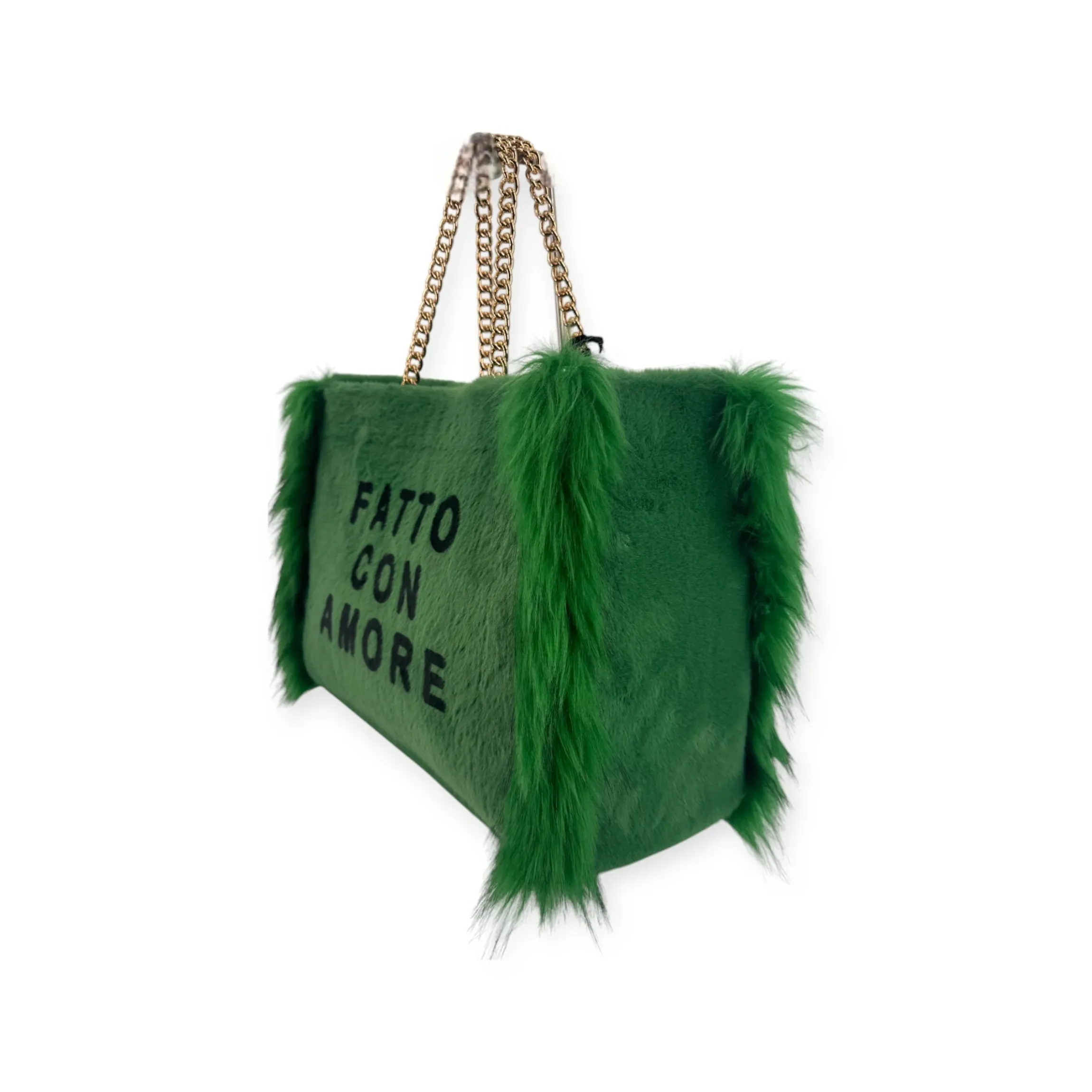 BORSA IN ECOPELLICCIA GIULIA NATI, CON MAXY LOGO ICONICO ” FATTO CON AMORE” . CATENA COLORE ORO. COLORE UNICO