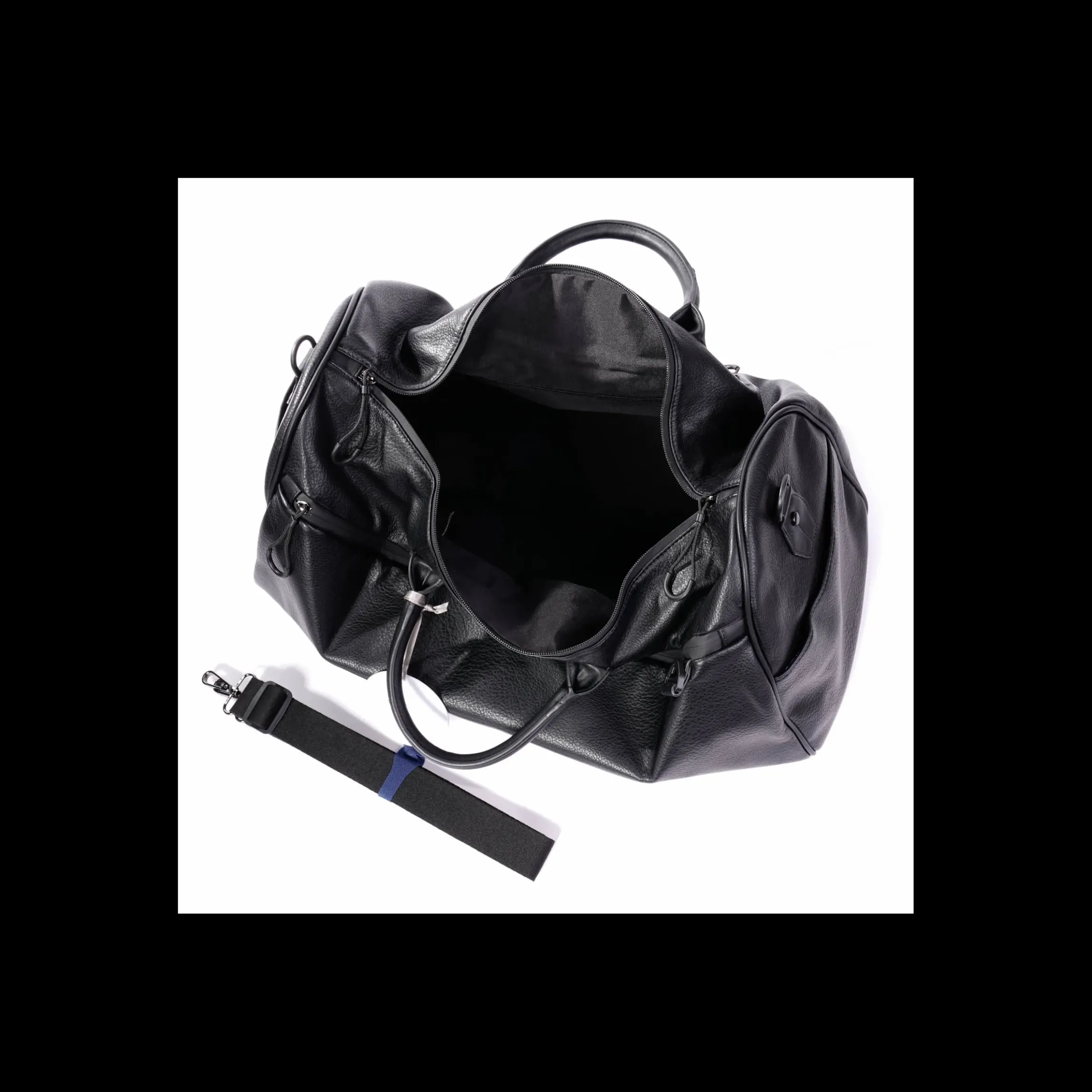 Borsone Unisex in Eco-pelle effetto martellato colore nero , tracolla regolabile estraibile, maxi tasche interne, zip e accessori, maxi tasche esterne