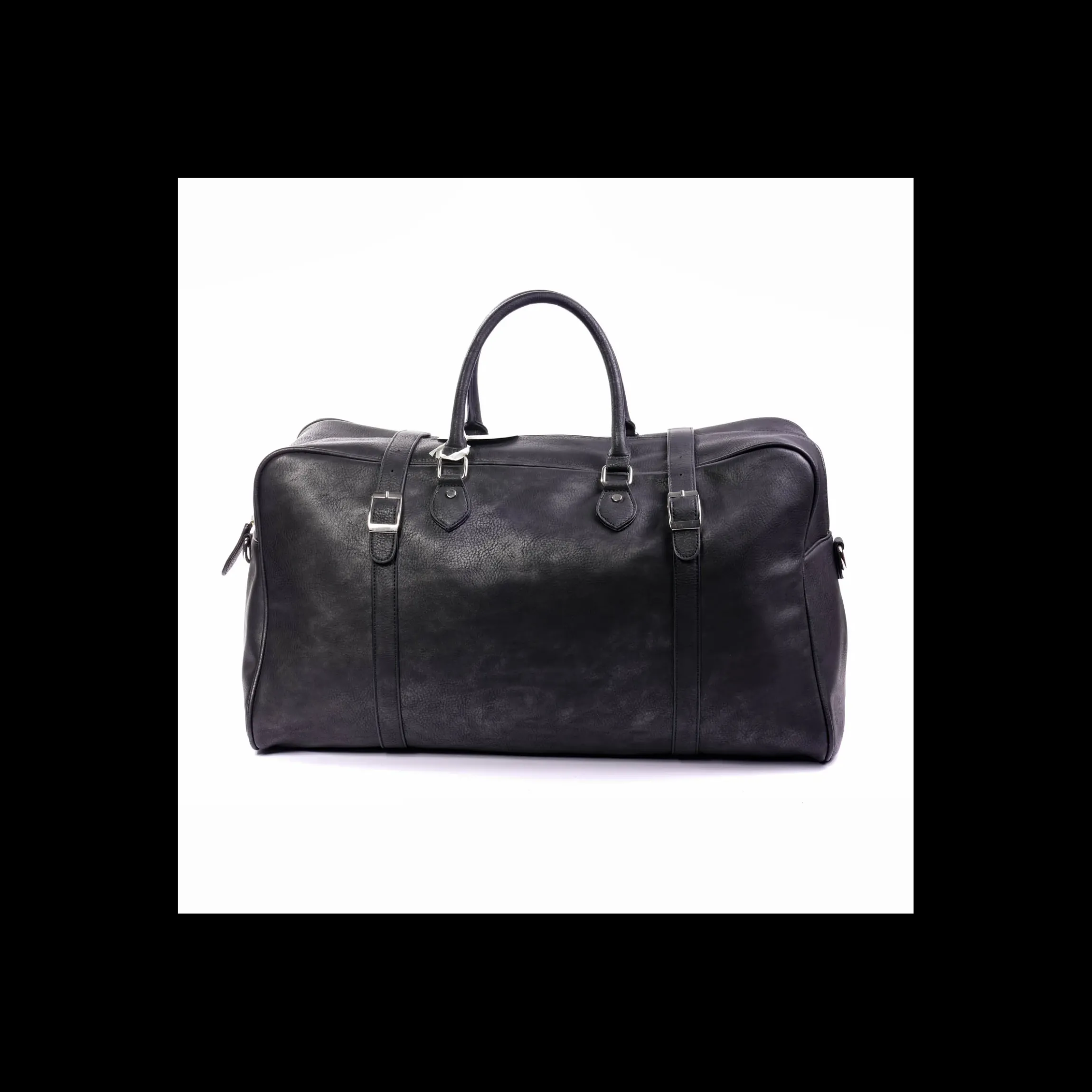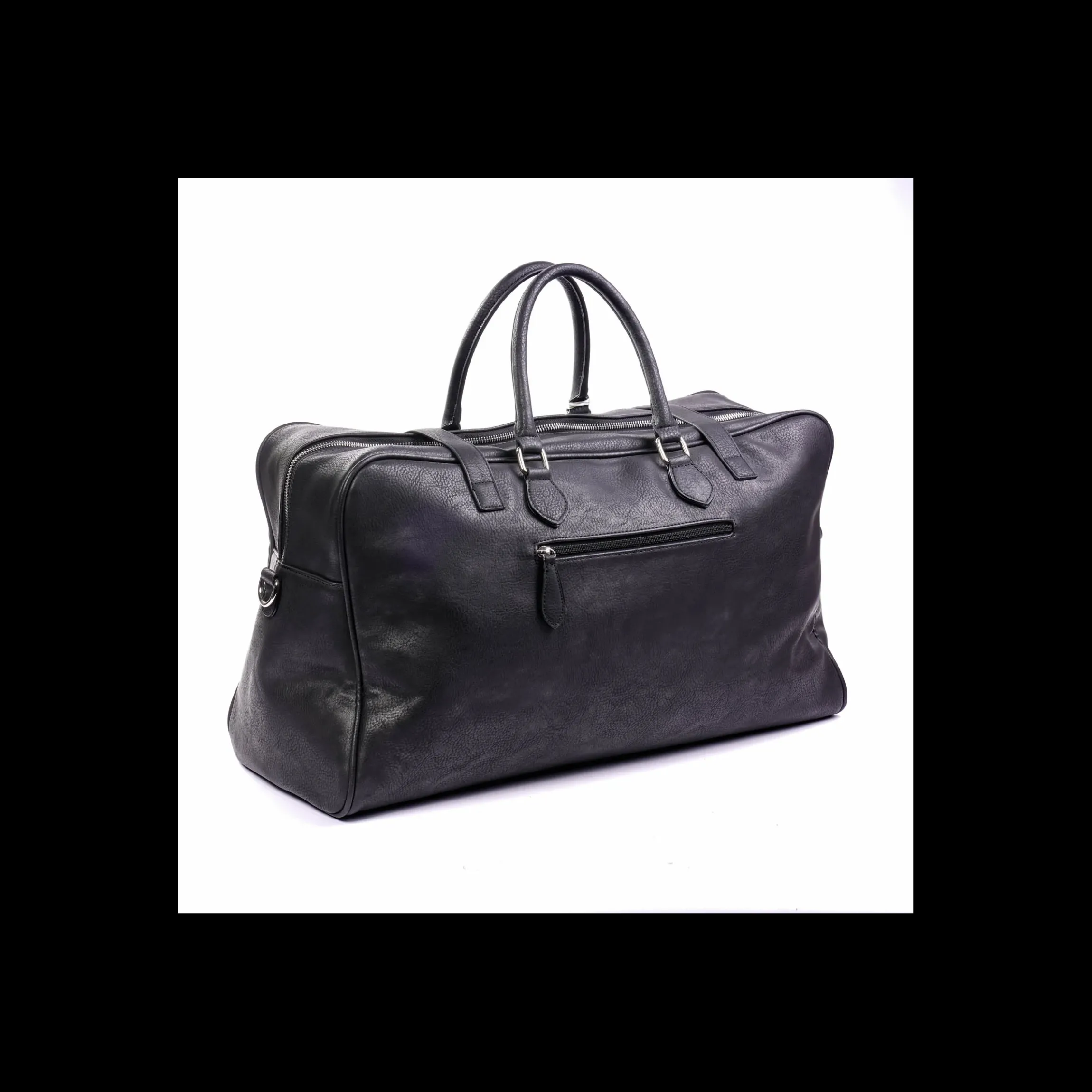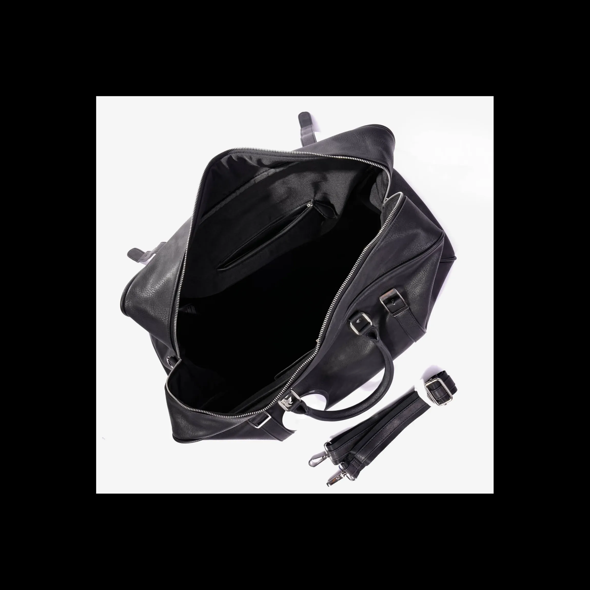 Borsone unisex MADE IN ITALY in eco-pelle colore nero, chiusura con zip e doppia fibbia cromata automatica, tracolla regolabile in eco-pelle e tela, multi tasche interne, tasca esterna con zip, pratico e capiente