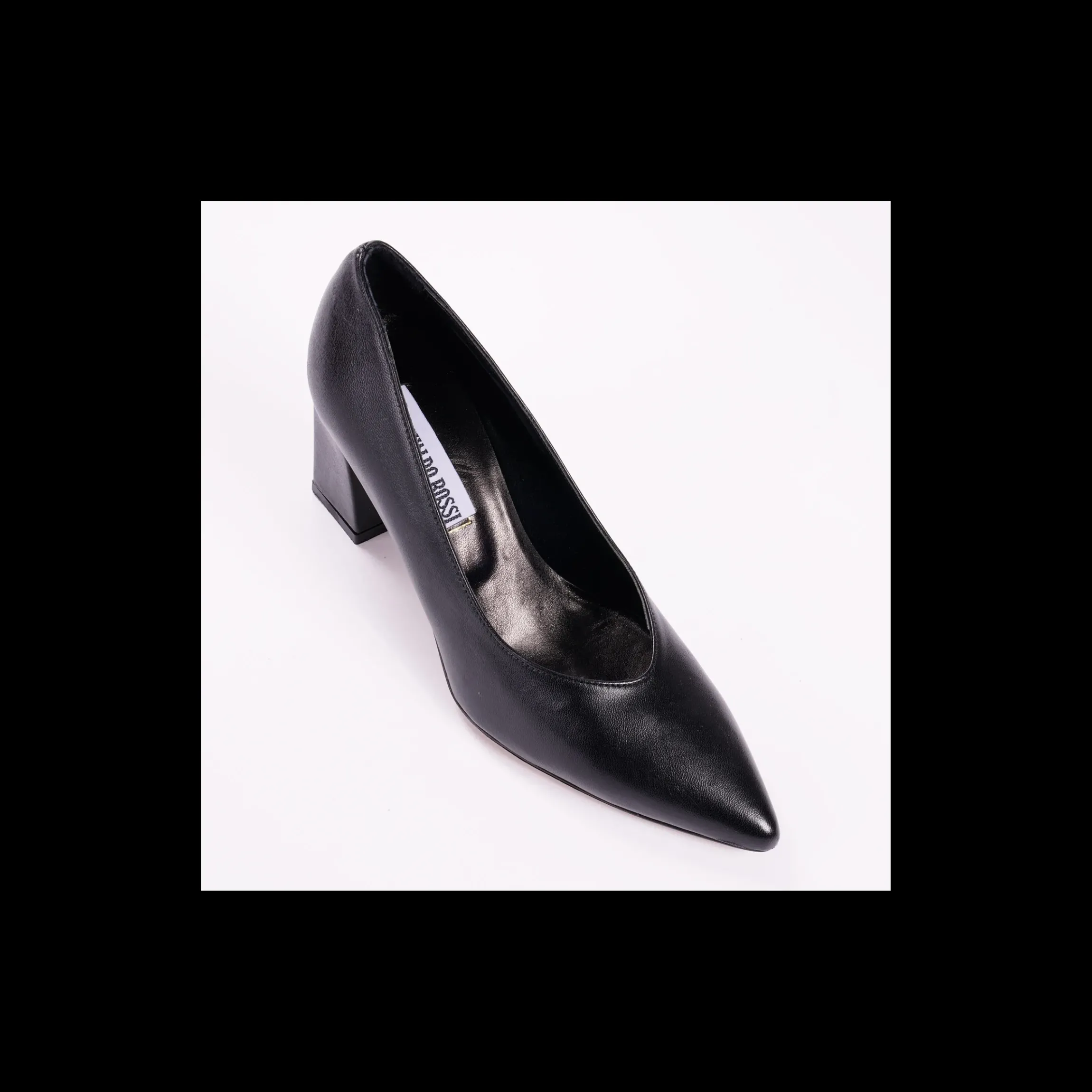 Dècolettè OSVALDO ROSSI in pelle colore nero, a punta, tacco a blocco, interno in pelle, fondo cuoio