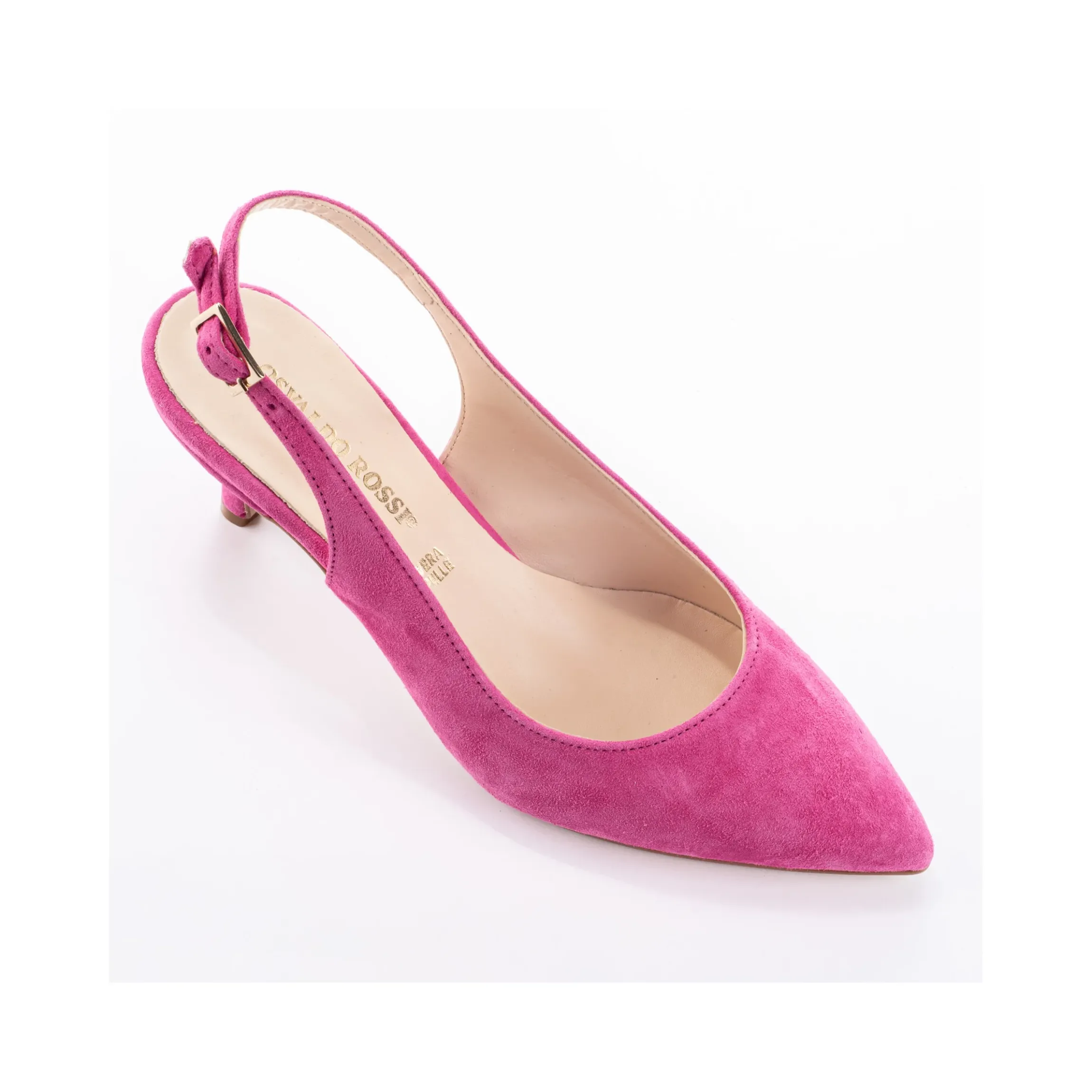 Décolleté Osvaldo Rossi Made in Italy, modello chanel a punta. Tacco a spillo di 7 cm, chiusura con fibbia laterale, morbido camoscio fucsia.