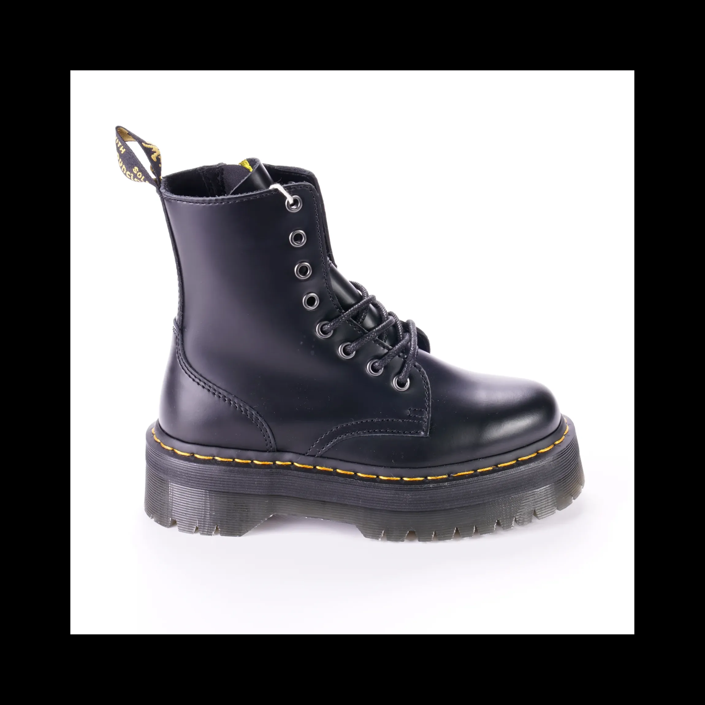 Evoluzione più aggressiva del classico anfibio a 8 occhielli, Jadon conserva i suoi dettagli originali: bordi scanalati, cuciture gialle e una fettuccia posteriore con logo, a cui si aggiunge una zeppa solida dal carattere risoluto.