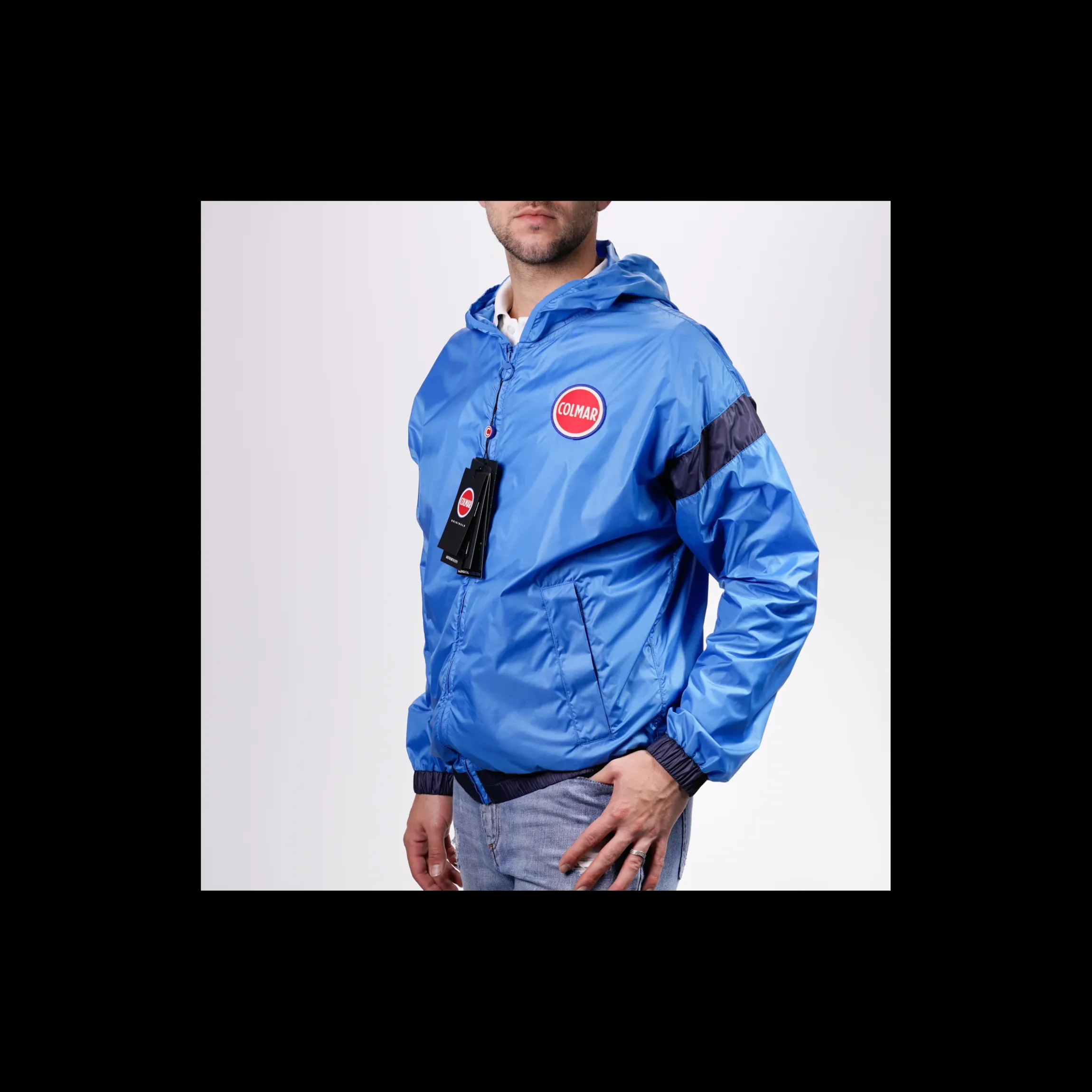 Giubbino Colmar Originals P/E di colore blu elettrico con dettagli blu Navy e logo fronte e retro. Realizzato in tessuto pertex quantum soffice, leggero, comprimibile e antivento per trattenere il calore.