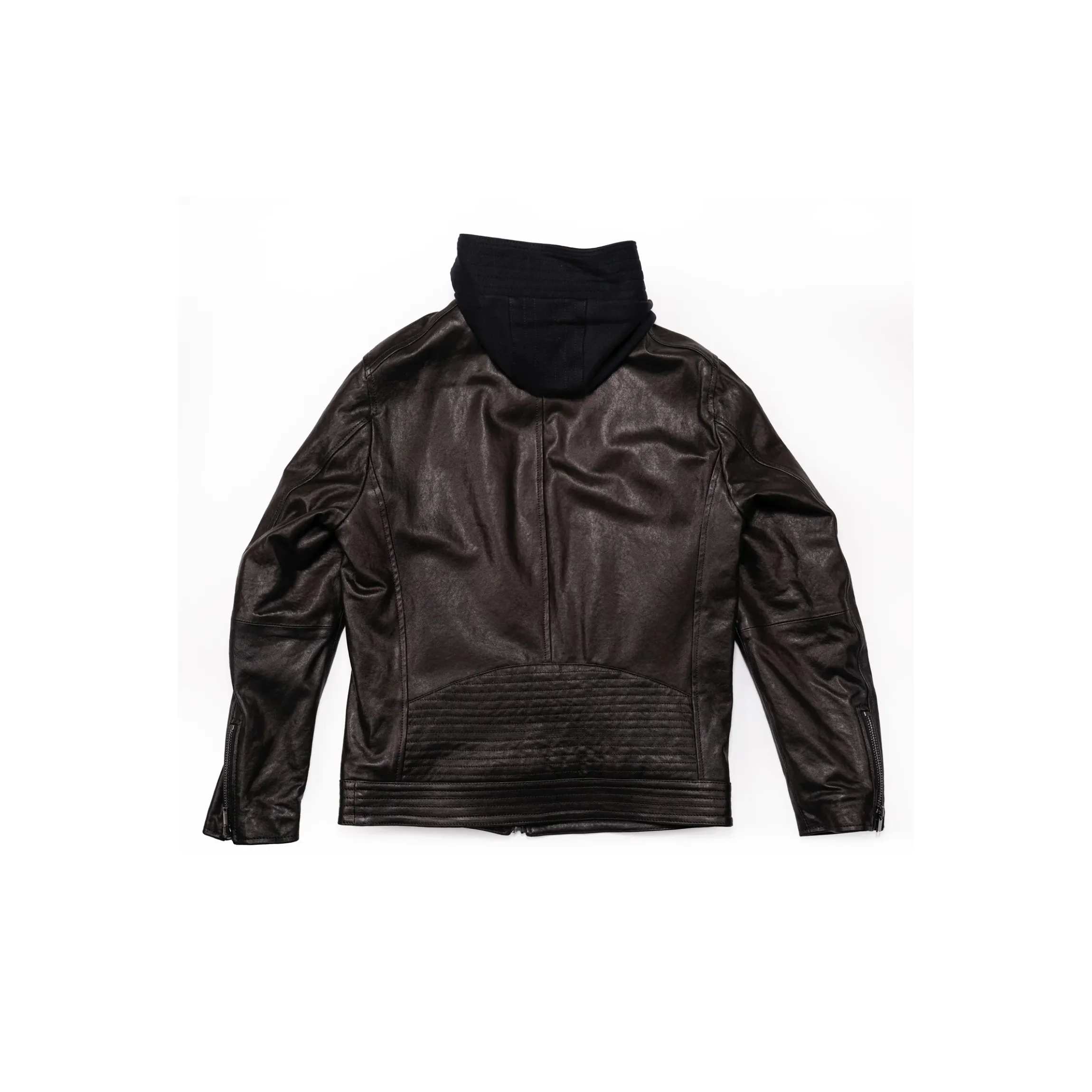 DONDUP giubbotto in pelle di vitello morbidissimo di colore nero con cappuccio removibile. Chiusura frontale con zip in vista. Vestibilità regular. Il capo che non deve mai mancare nell armadio di un uomo.