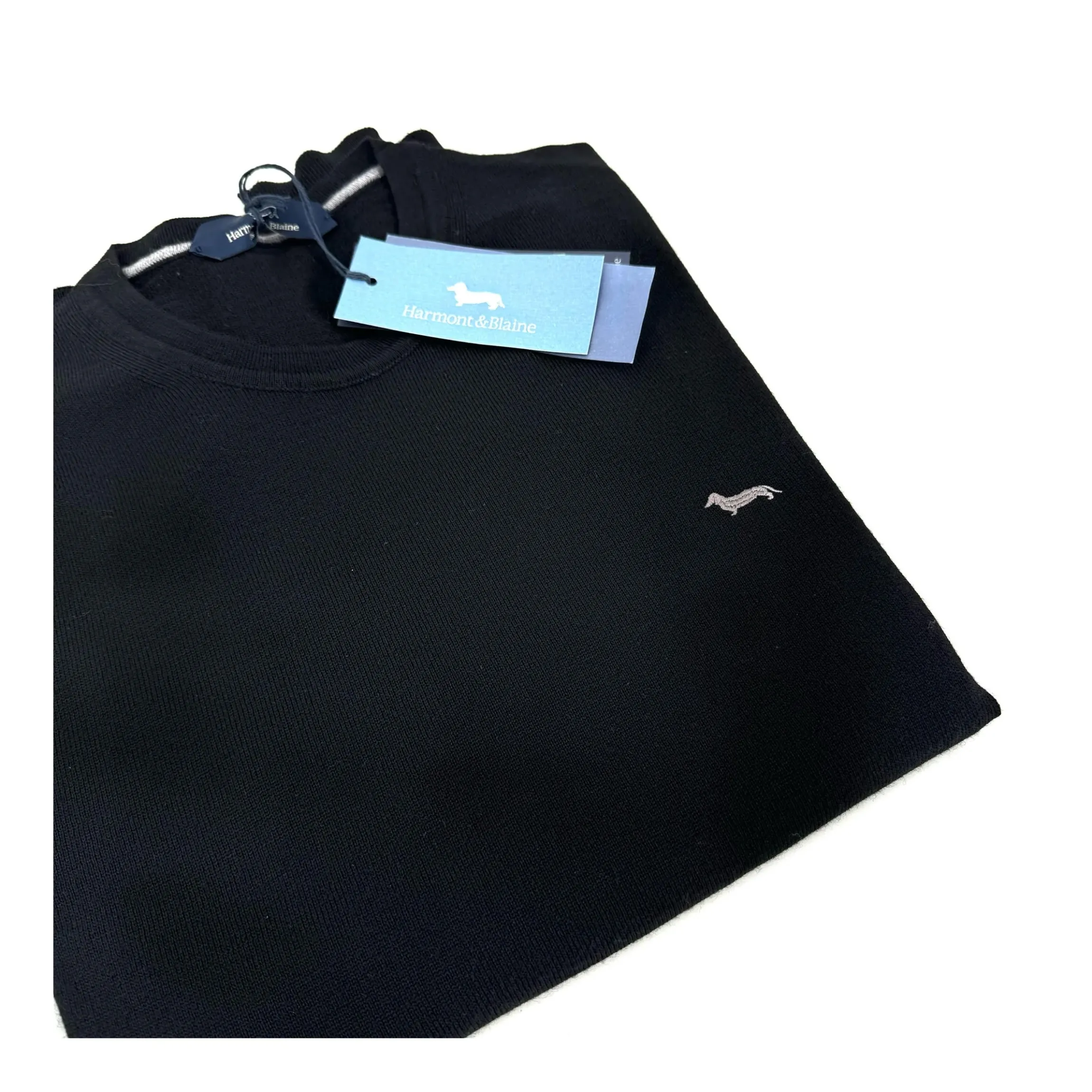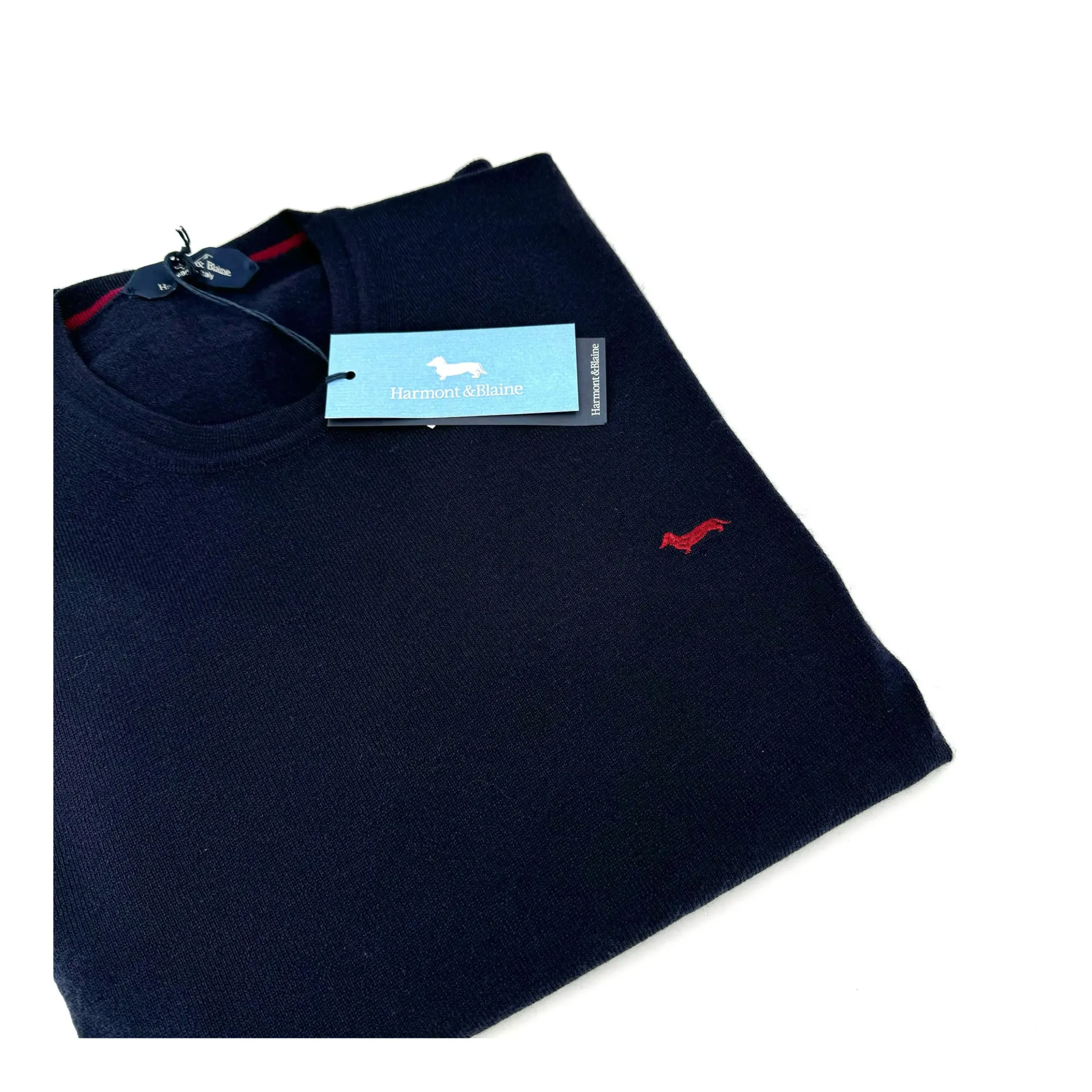 HARMONT & BLAINE maglione paricollo Uomo, modello semplice in 100% lana rasata con logo a contrasto del brand ricamato lato cuore e vestibilità regolare.