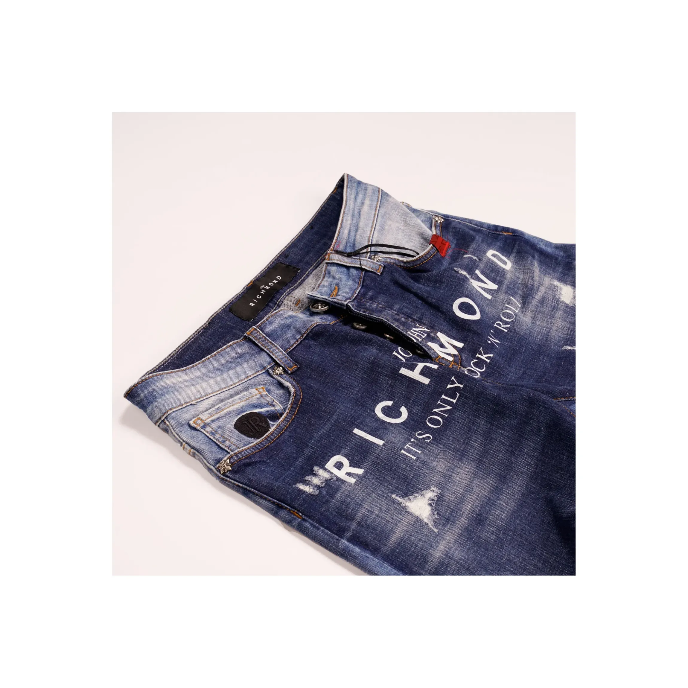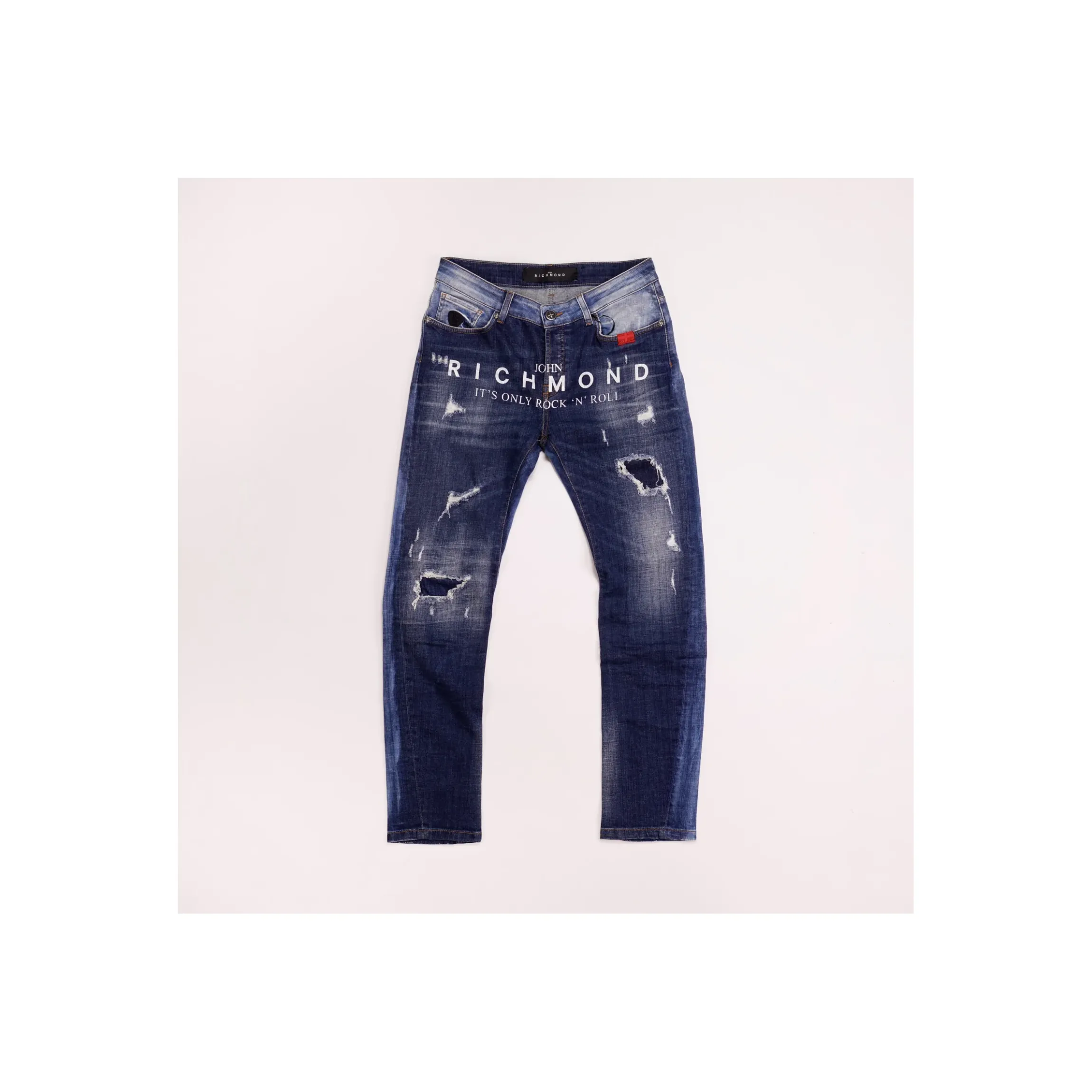 JEANS RICHMOND , LAVAGGIO CHIARO E SLAVATO, CON STRAPPI E MAXY LOGO FRONTALE. TESSUTO MORBIDO E ELASTICIZZATO. VESTIBILITA’ ABBONDANTE E IMPECCABILE. IN PERFETTO STILE DEL BRAND ANCHE QUESTO CAPO NON PASSERA’ INOSSERVATO UNA VOLTA INDOSSATO.