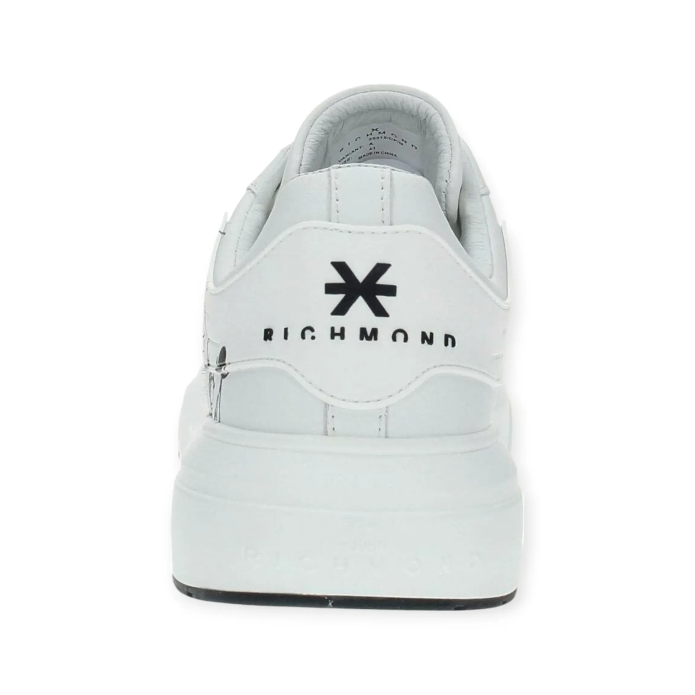 JOHN RICHMOND SNEAKERS UOMO GRAFFITI realizzata in pelle di colore bianco con grana liscia e stampe illustrative con logo sulla tomaia esterna e sulla punta e suola in gomma. Tomaia interna e soletta estraibile rivestite in pelle e dettaglio logo applicato sulla linguetta e sul tallone