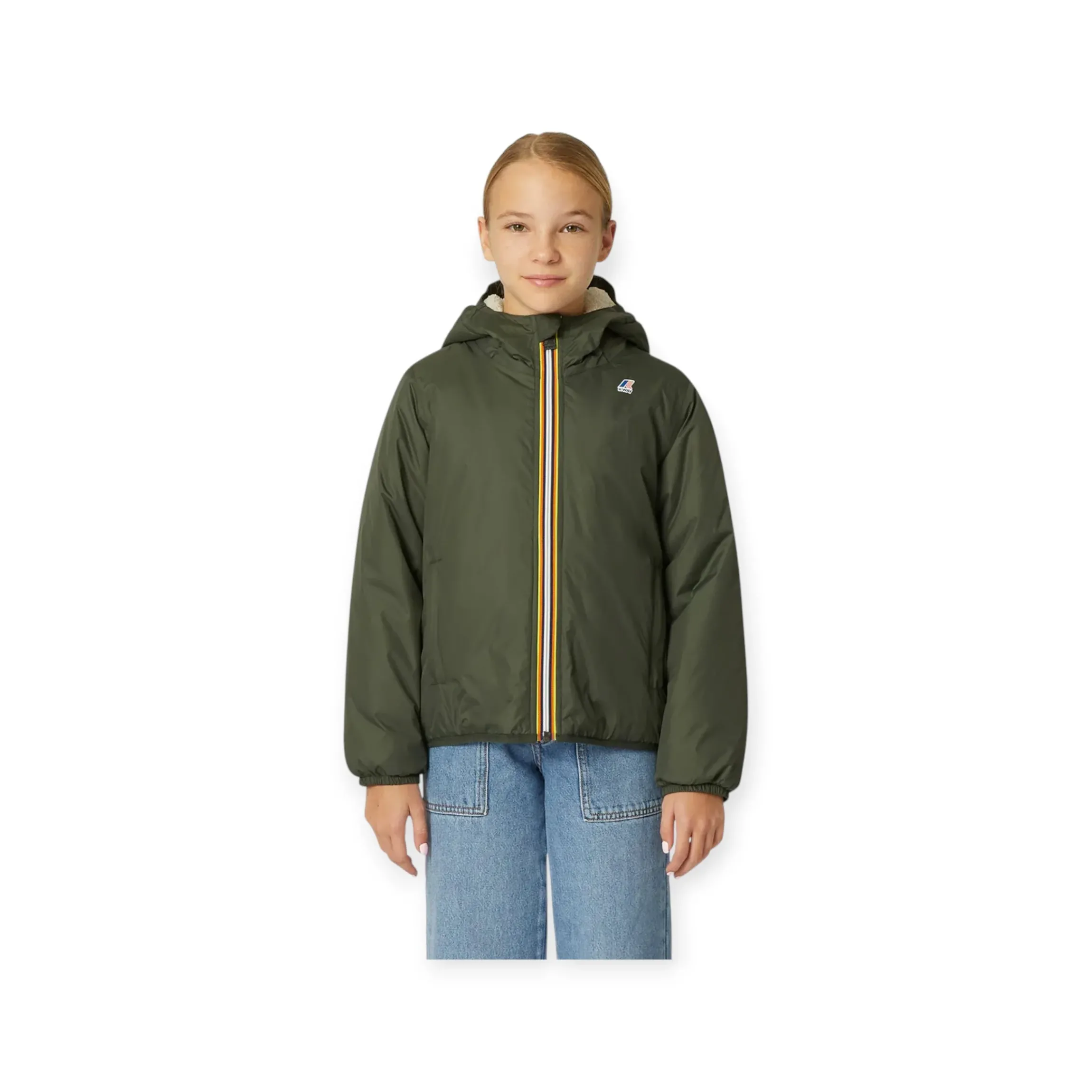 GIUBBOTTINO K-WAY LE VRAI CLAUDE 3.0 E’ L’OUTERWEAR UNISEX PER BAMBINI PROGETTATO PER LA STAGIONE INVERNALE. CON CAPPUCCIO, IMPERMIABILE, IDROREPELLENTE, ANTIVENTO, TRASPIRANTE. IMBOTTITURA DI OVATTA E INTERNO IN ECOPELLICCIA ORSETTO. CHIUSURA CON ZIP ICONICA.