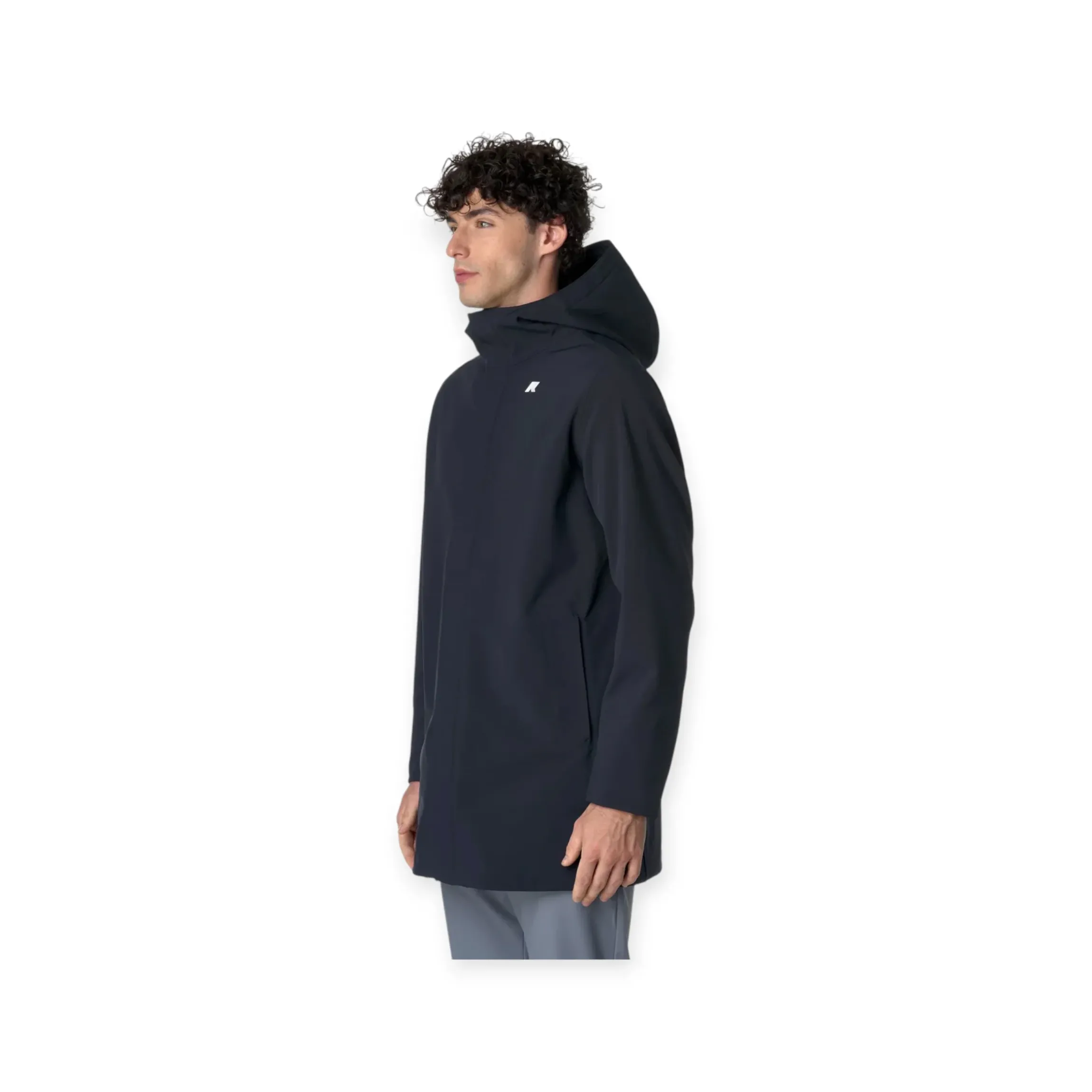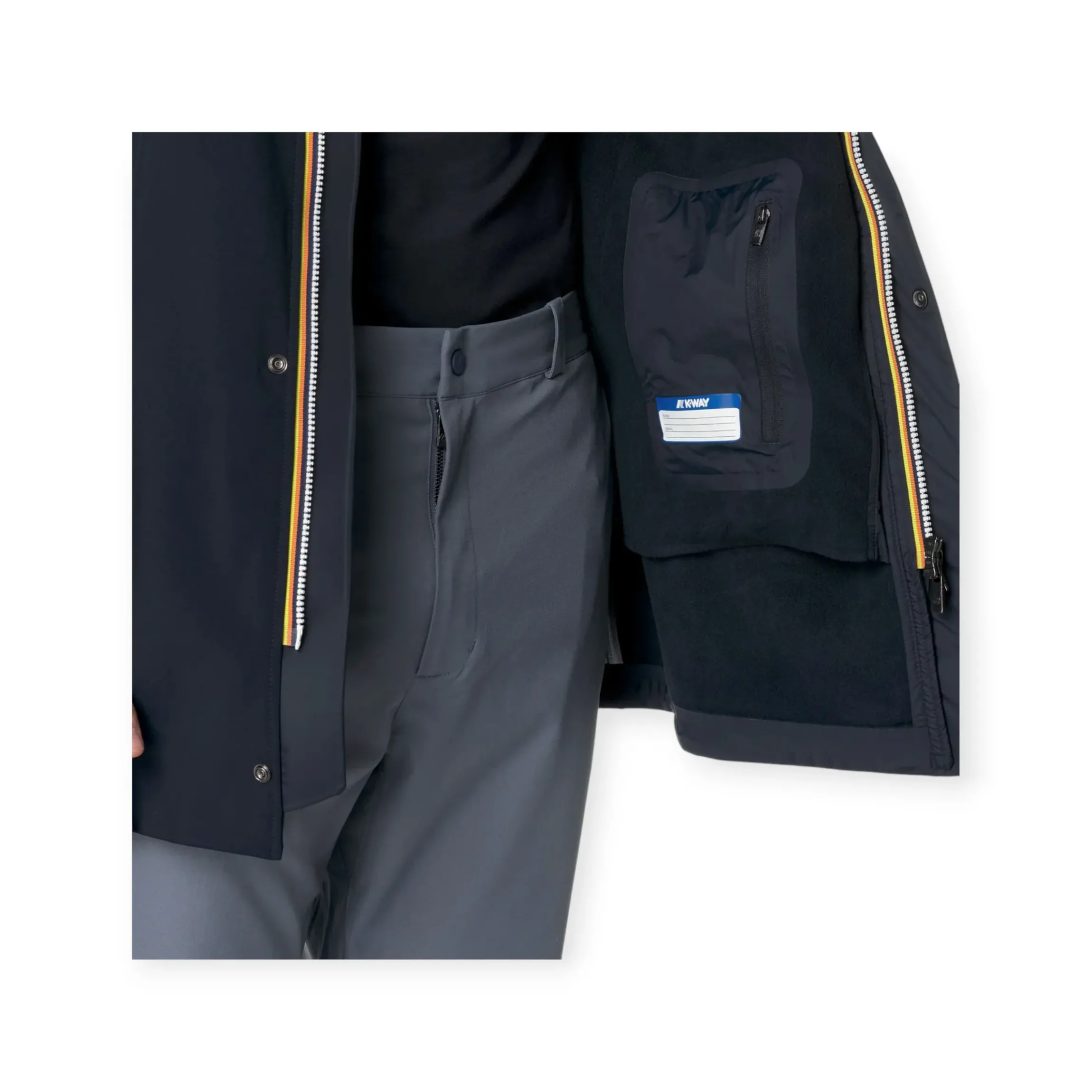 K-WAY MARLYN BONDED NEW UOMO, giacca con lunghezza media e un aspetto versatile. Il modello è realizzato in polyestere con membrana interna e lo strato in pile morbido sulla pelle. Il tessuto a 3 strati elasticizzato impermeabile, idrorepellente e antivento, chiusura e tasche con zip, cuciture termonastrate e logo in silicone bianco.