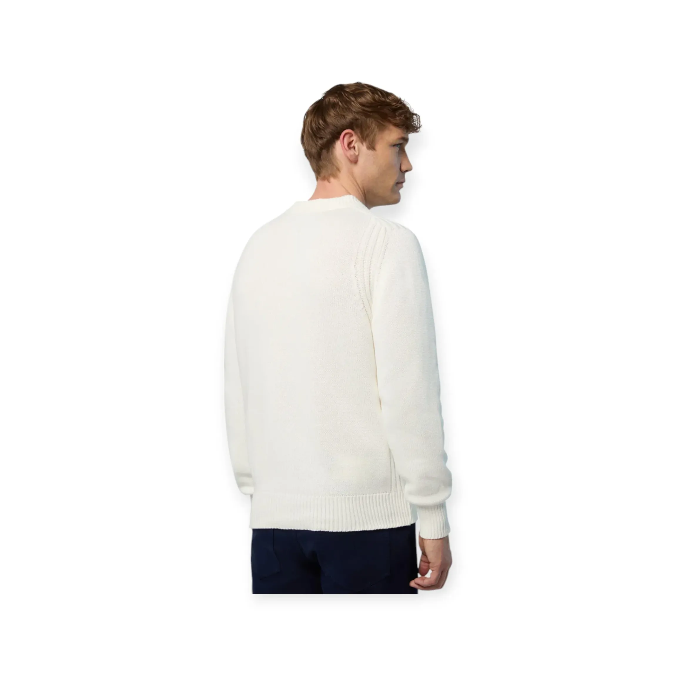 MAGLIONE GIROCOLLO UOMO A COSTE NORTH SAILS, un classico senza tempo, rielaborato con una silhouette rilassata e moderna. Questo maglione da uomo è realizzato in cotone organico morbido sulla pelle e gentile con l’ ambiente. La lavorazione a coste sulle spalle e lungo i fianchi definisce la vestibilità e aggiunge un elemento grafico elegante. Si presente con patch logo cucito sulla manica sinistra, disponibile nel colore panna