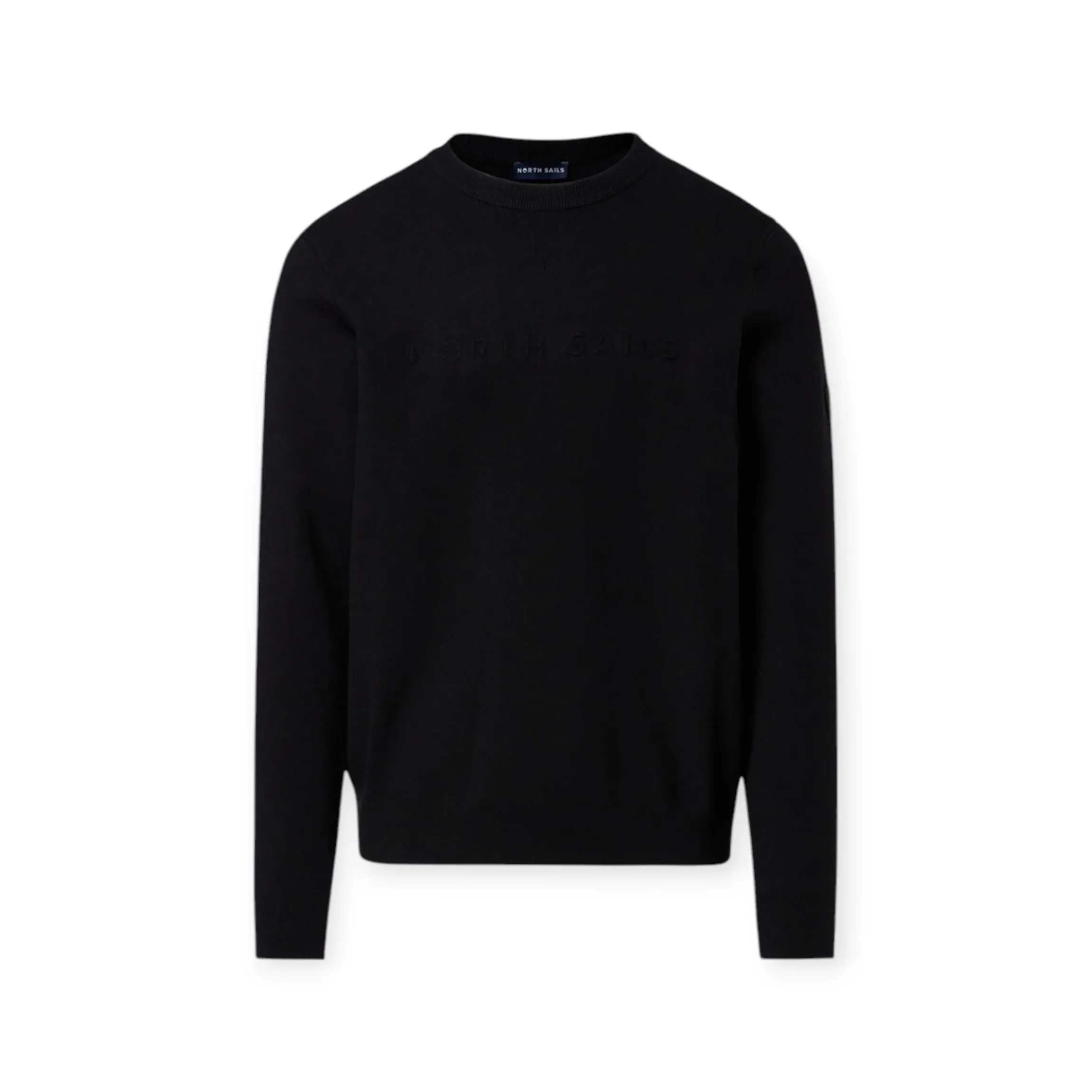 MAGLIONE UOMO PUNTO MILANO NORTH SAILS, con linee accoglienti ed eleganza senza sforzo, questo maglione girocollo da uomo è versatile in ogni occasione. Il modello è realizzato in misto viscosa stretch punto milano che segue delicatamente i movimenti. I bordi a costine definiscono il design, il lettering NORTH SAILS a rilievo al centro dona una nota iconica e discreta con inserto a V sul collo e patch logo cucito sulla manica sinistra. Il modello è disponibile nel colore nero