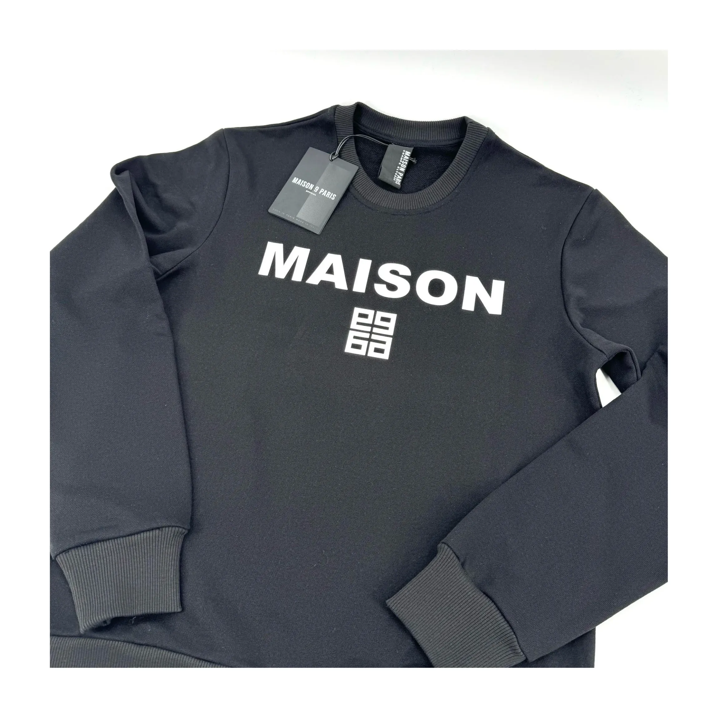 MAISON9 PARIS felpa uomo girocollo. La felpa si presenta con collo, polsini e fondo a costine elasticizzate e logo gommato grande frontale a contrasto. La felpa è composta da 100% cotone