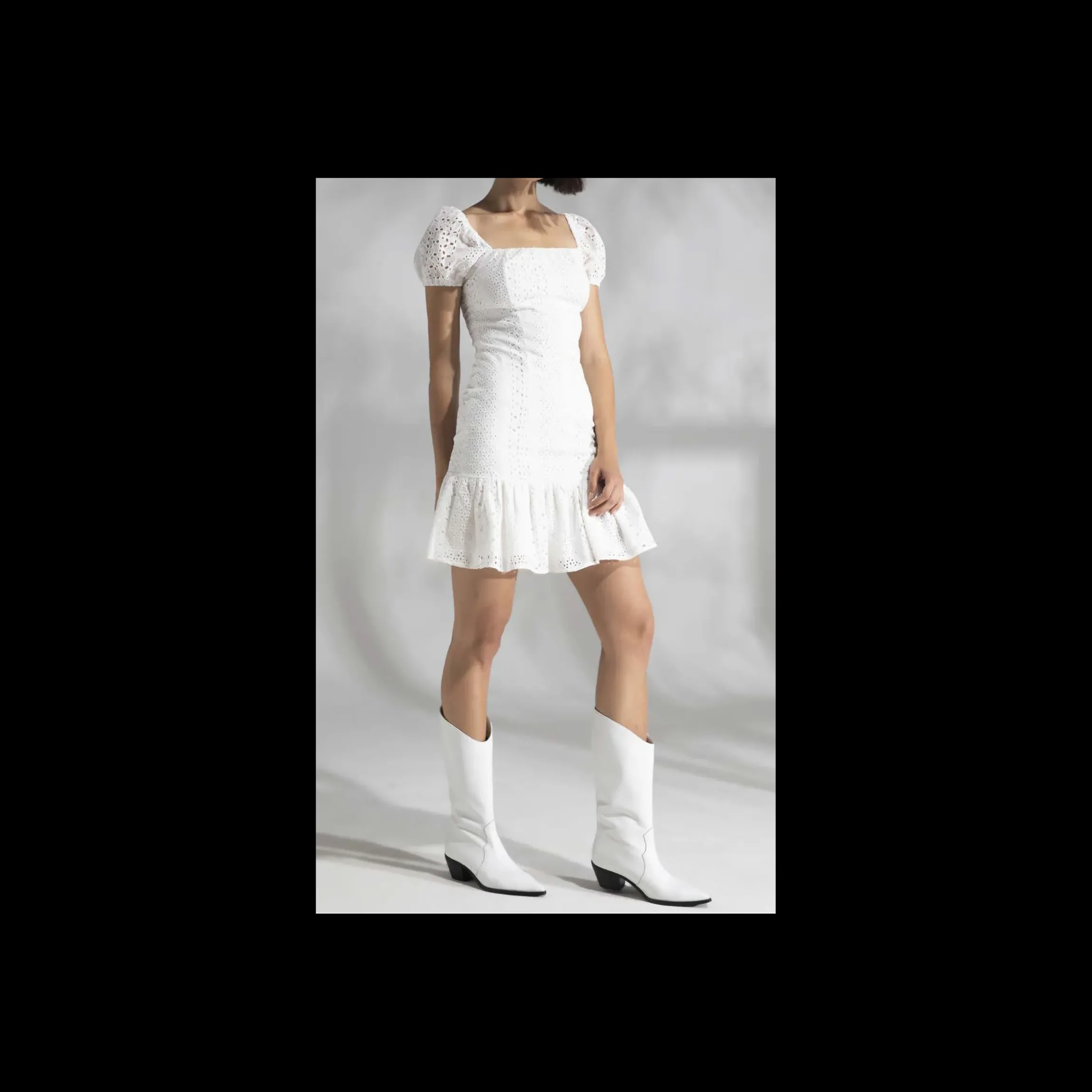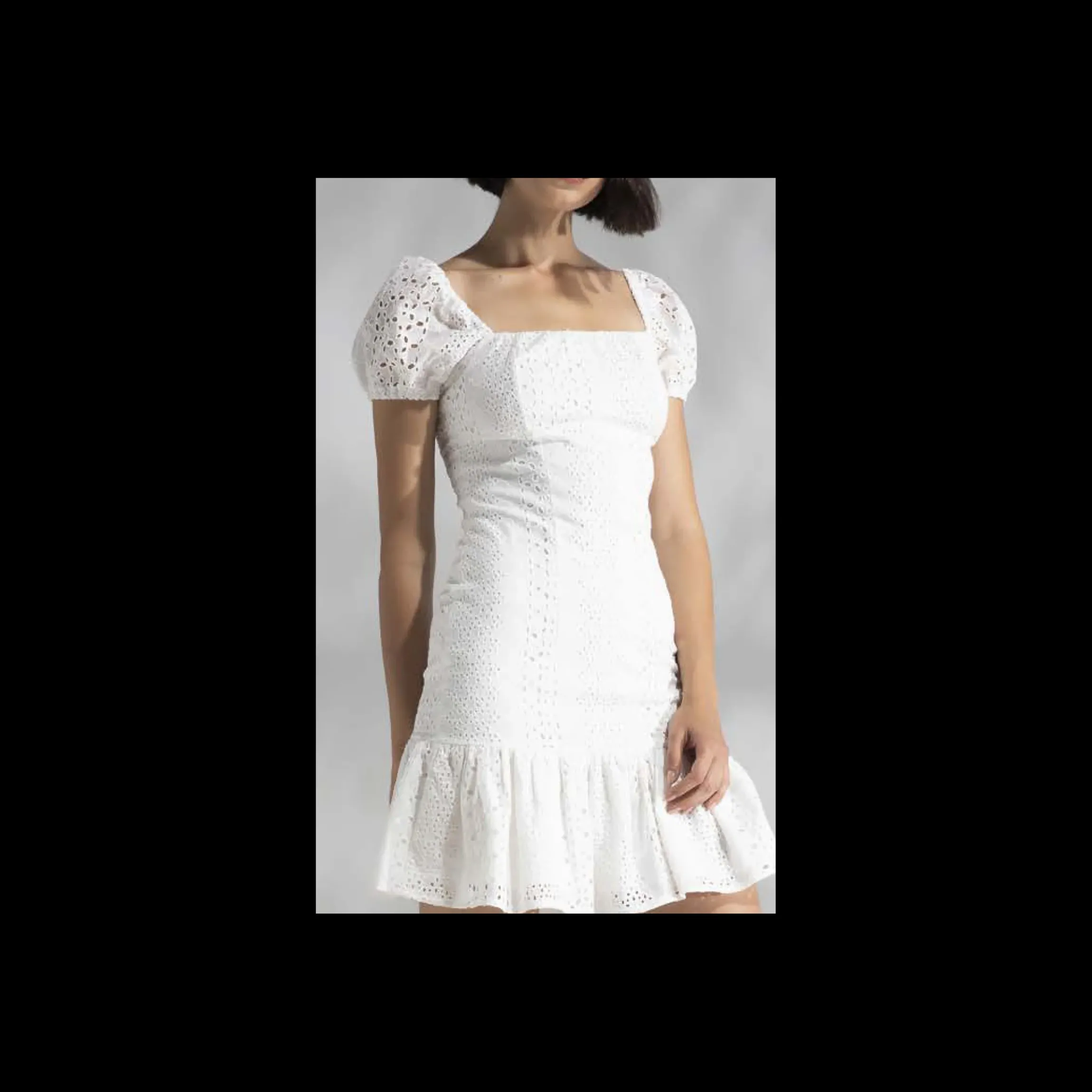ABITO CORTO GIULIA N , IN PIZZO SAN GALLO, DI COLORE BIANCO,MANICA CORTA, FODERATO.