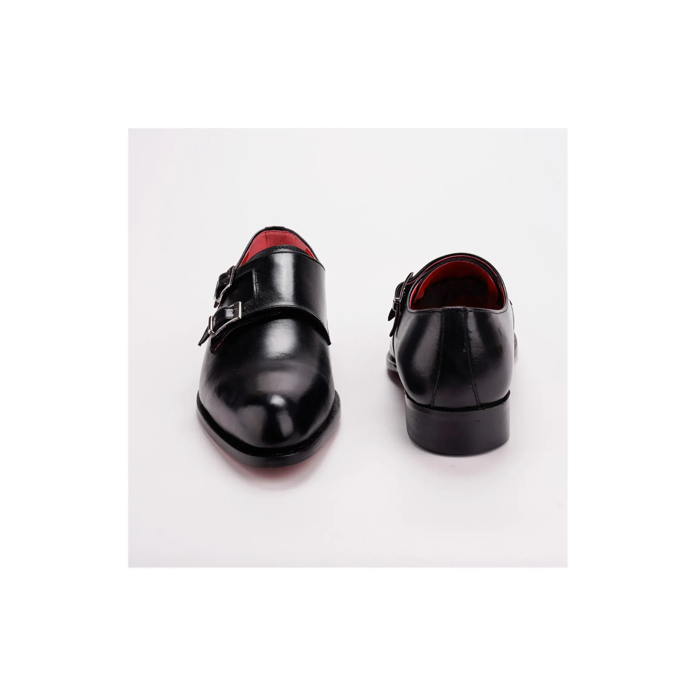 ANDREA NOBILE, SCARPA FONDO CUOIO, AFFUSOLATA MONKSTRAP, DOPPIA FIBBIA. ELEGANTISSIMA. IN PELLE DI COLORE NERO.