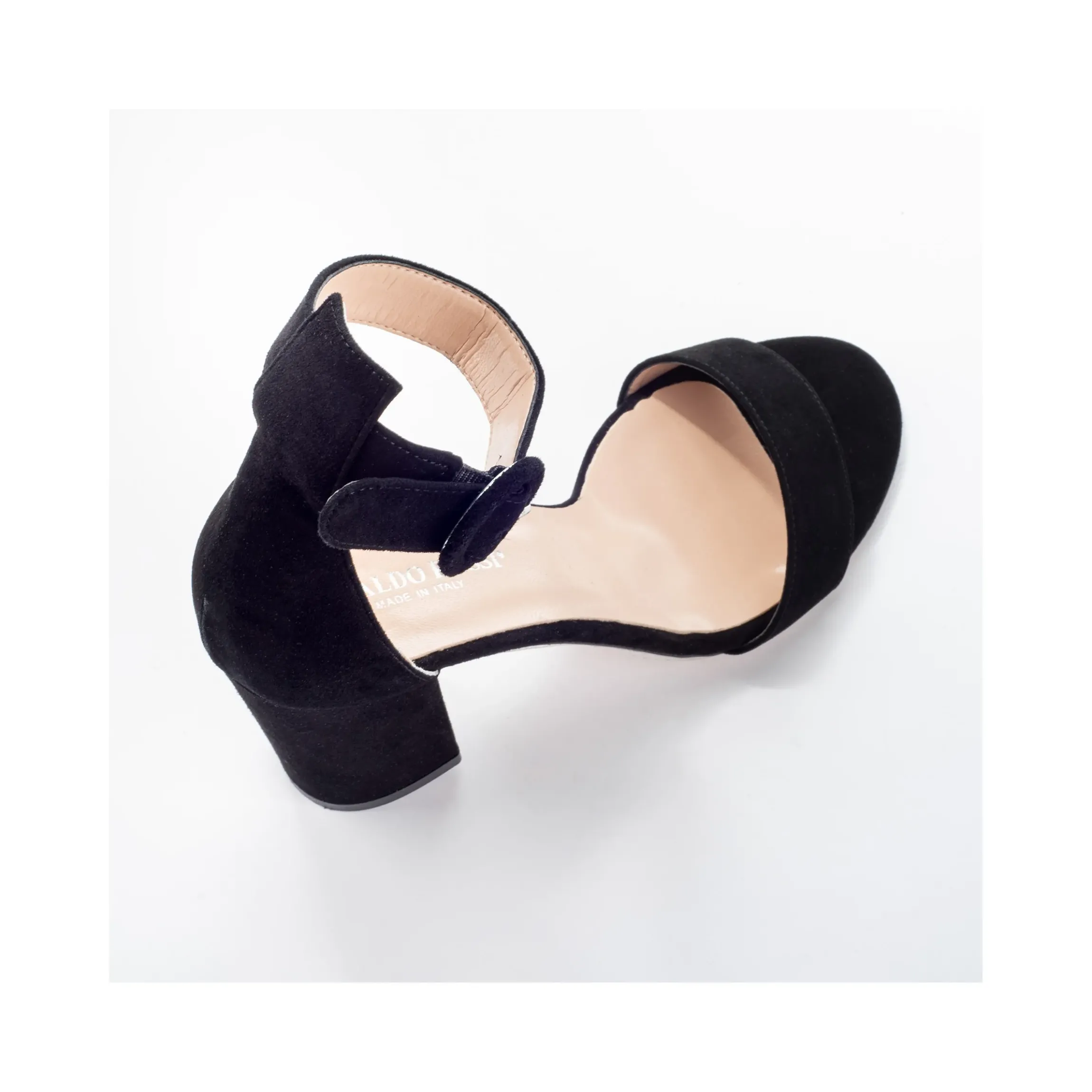 Sandalo Osvaldo Rossi Made in Italy in camoscio nero. Cinturino con dettaglio di fibbia in caviglia. Tacco a blocco di 8 cm.