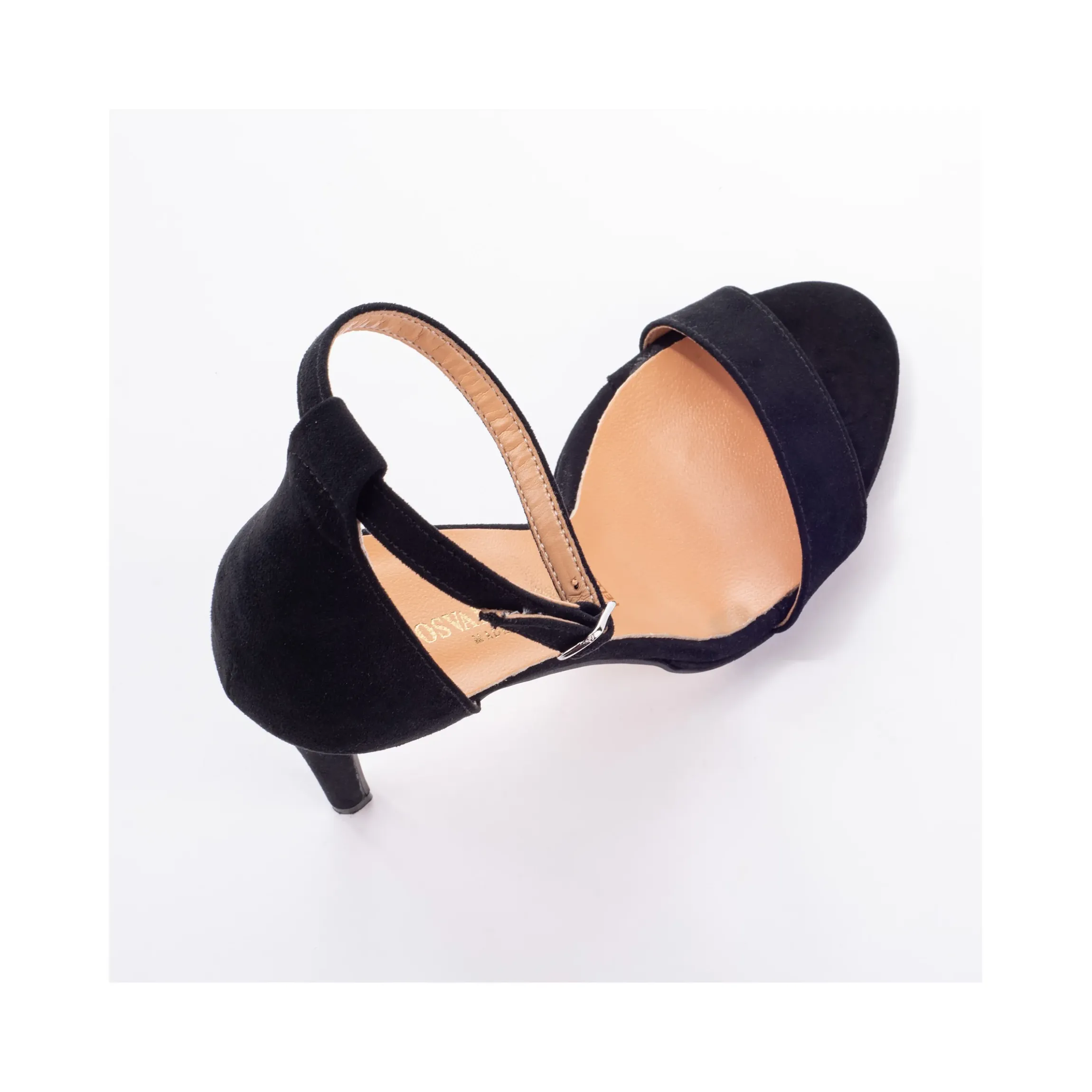 Sandalo Osvaldo Rossi Made in Italy in pelle nera. Cinturino con dettaglio di fibbia in caviglia. Tacco a spillo di 10 cm.