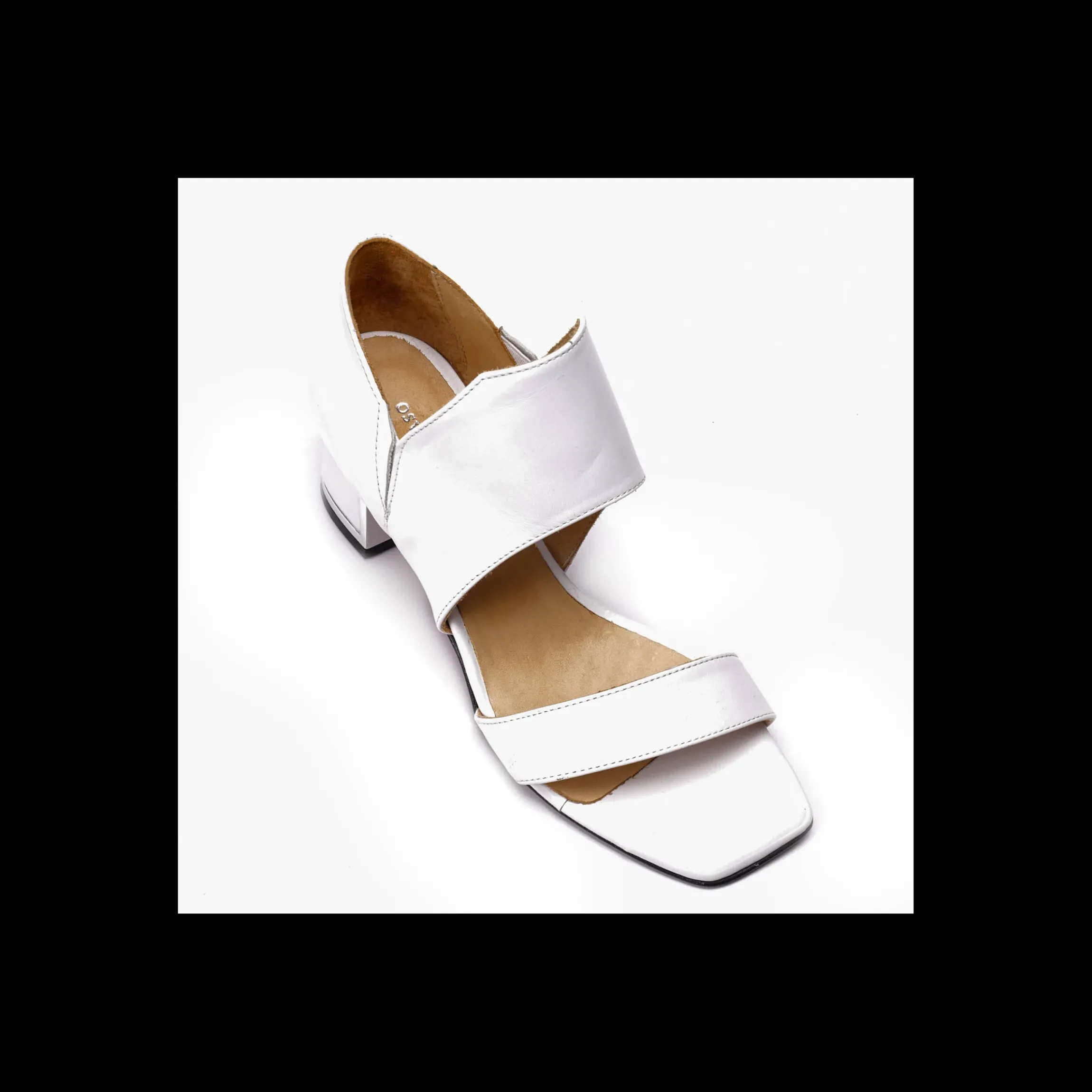 Sandalo Osvaldo Rossi, in pelle, di colore bianco, tacco basso a blocco rivestito in pelle.