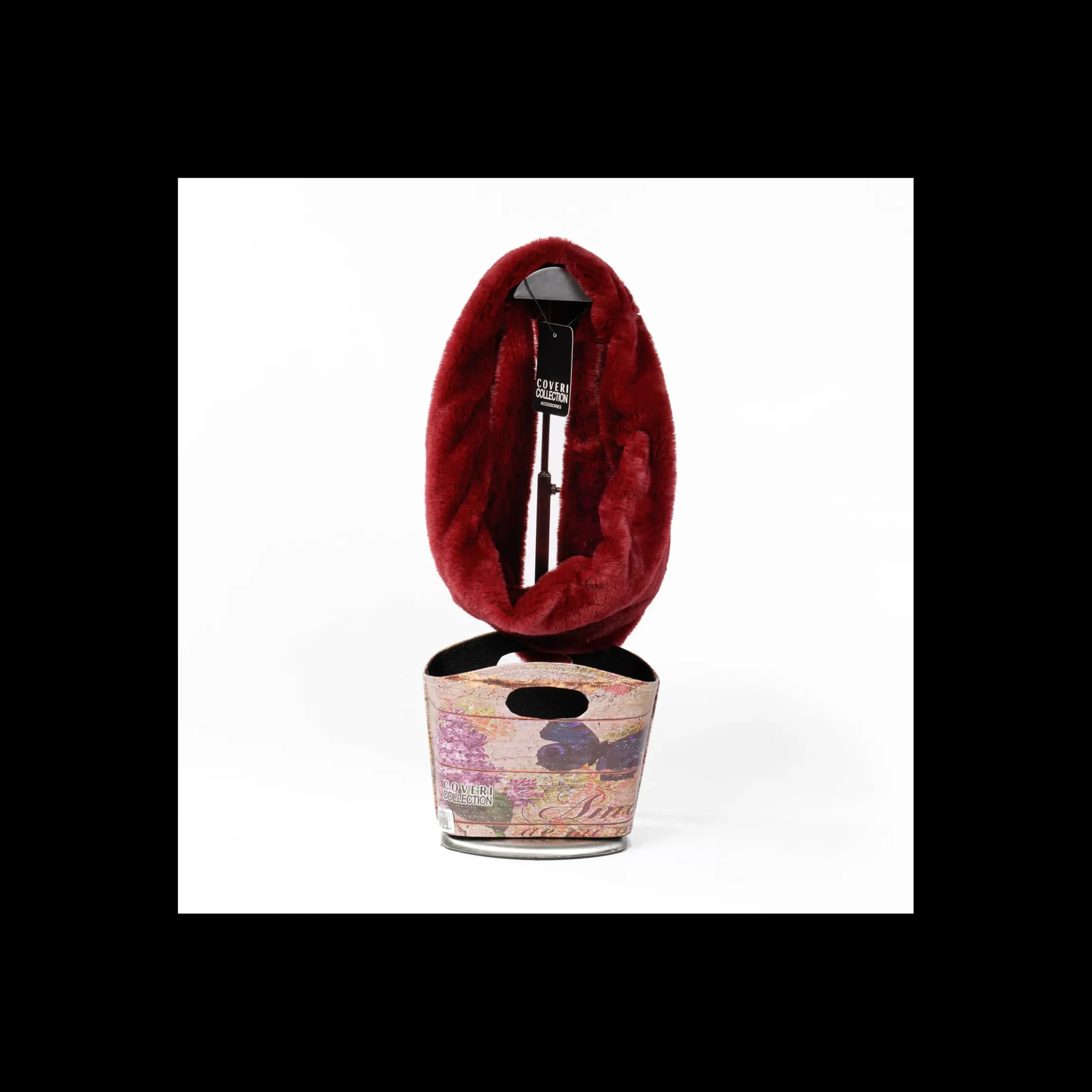Confezione con scaldacollo ENRICO COVERI COLLECTION , morbidissima eco-pelliccia colore bordò