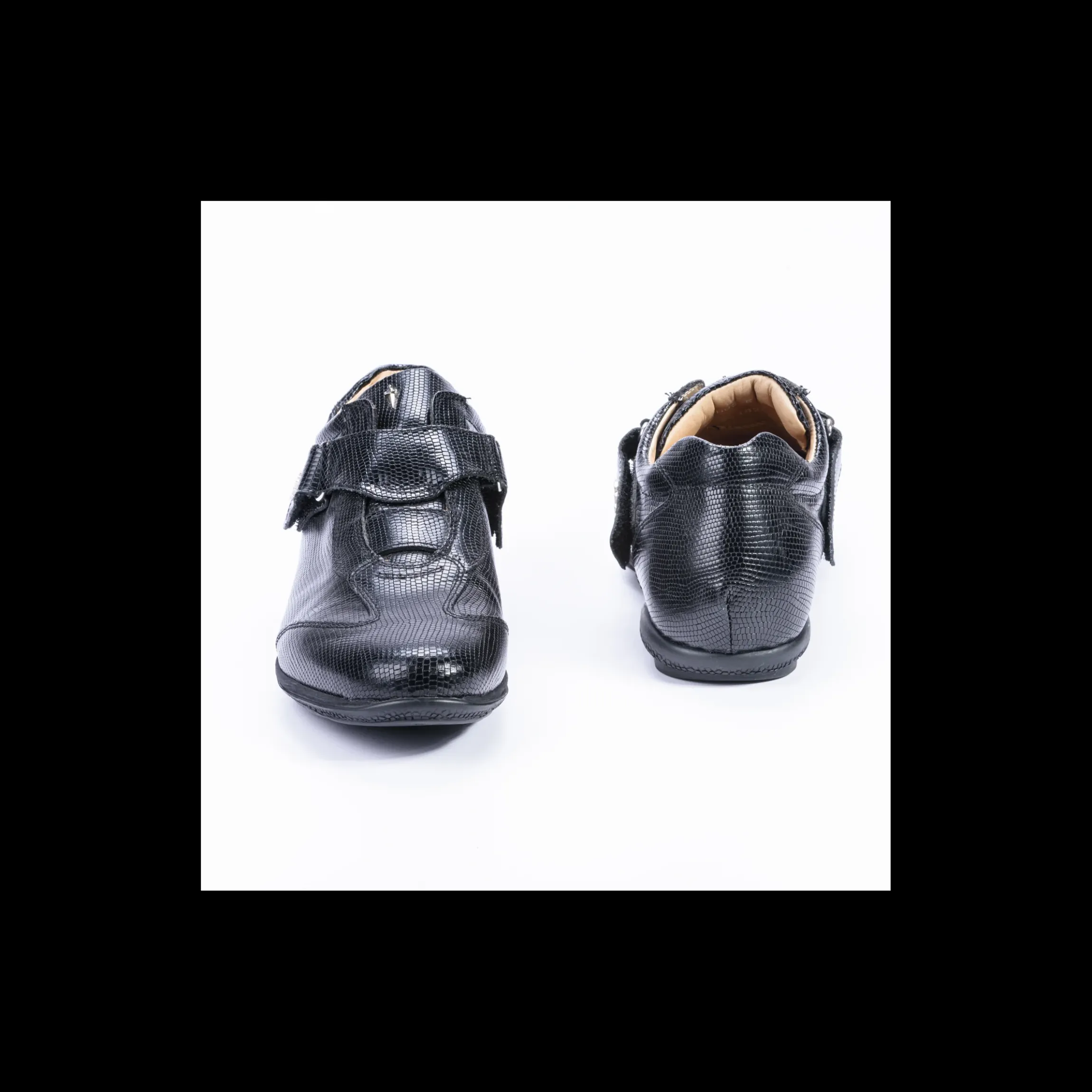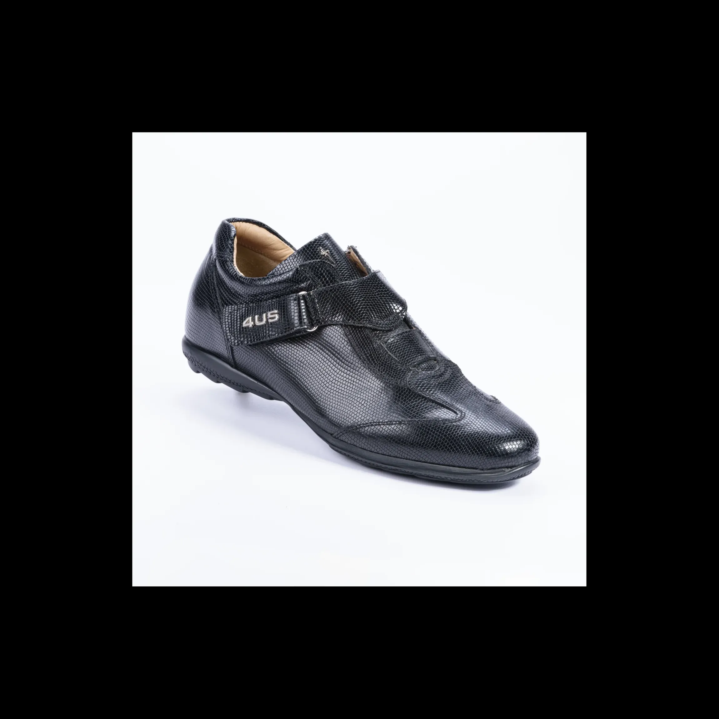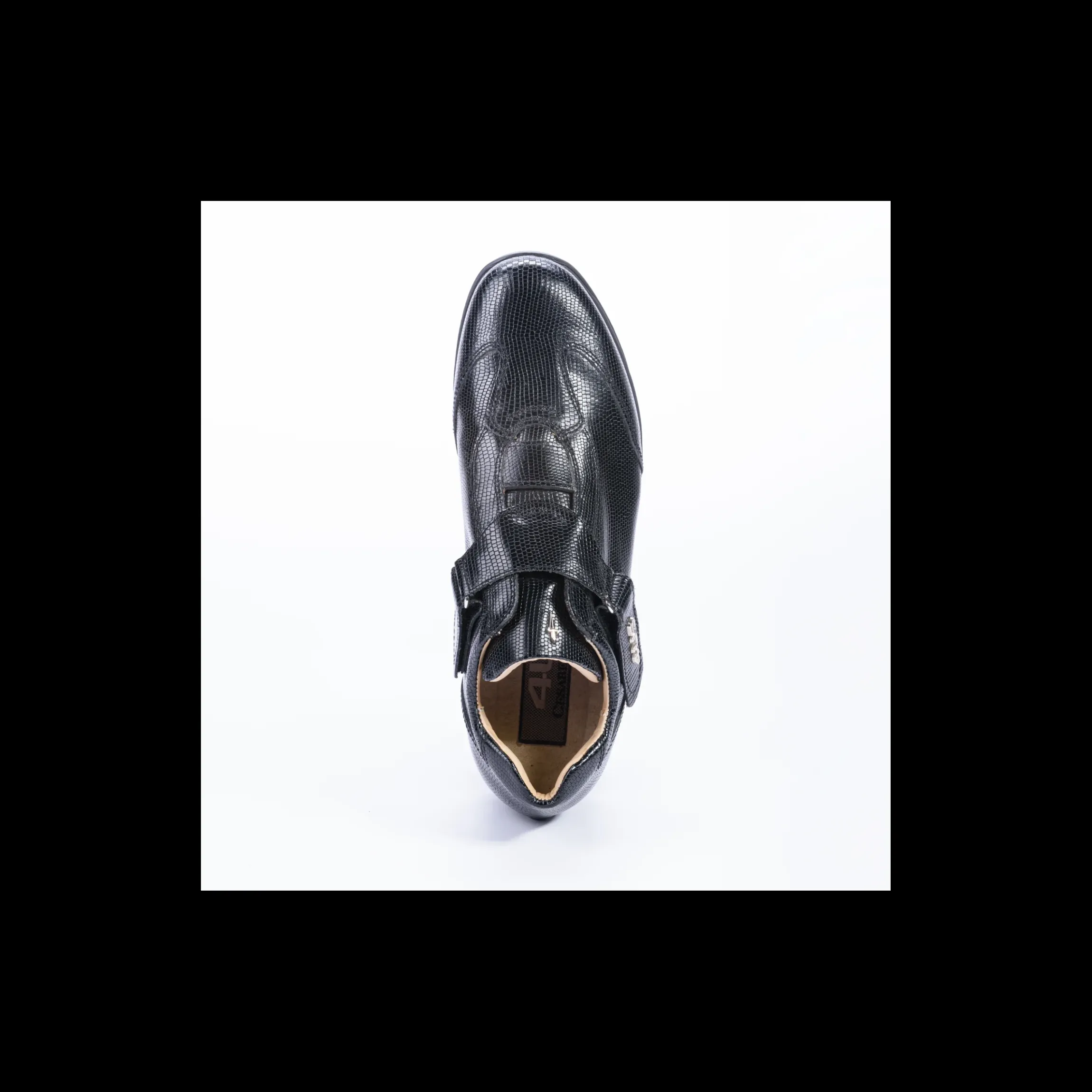 Sneakers Cesare Paciotti 4US Made in Italy, in pelle stampata lizard colore nero, chiusura in velcro, fondo in gomma. Eleganza e praticità senza mai essere banali.