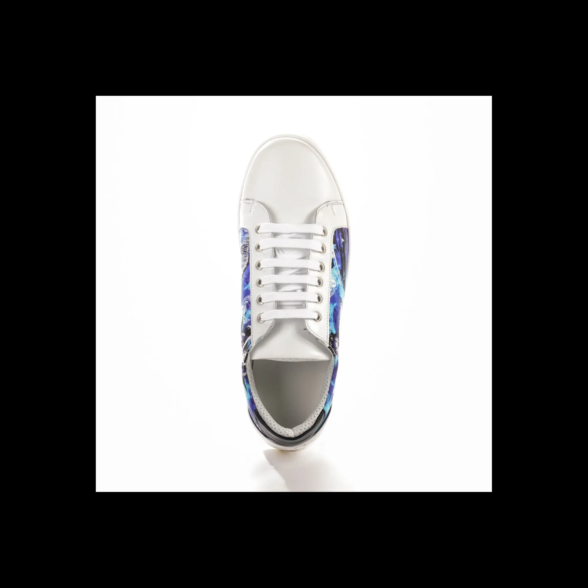 Sneakers ANDREA NOBILE in pelle bianca e pelle blu fantasia multicolor. fondo gomma