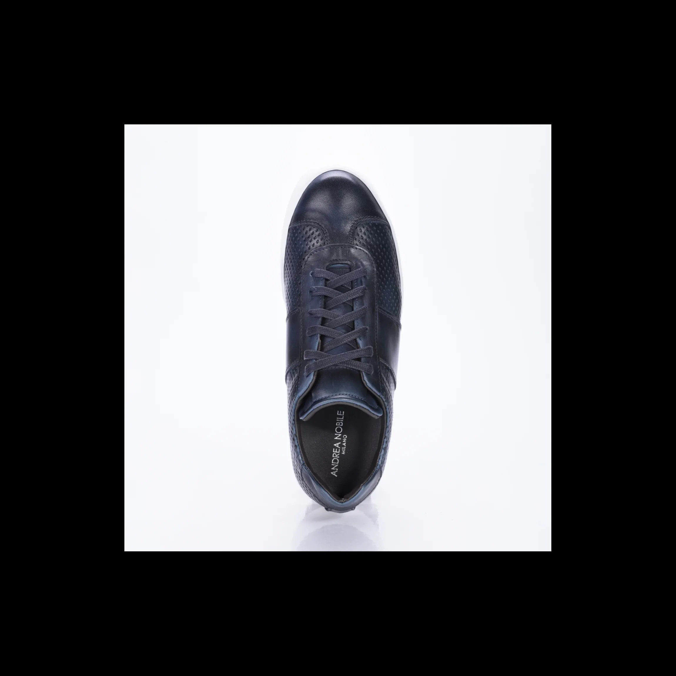 Sneakers Andrea Nobile Made in Italy in pelle di colore blu. para in gomma di colore bianco . calzata comodissima.