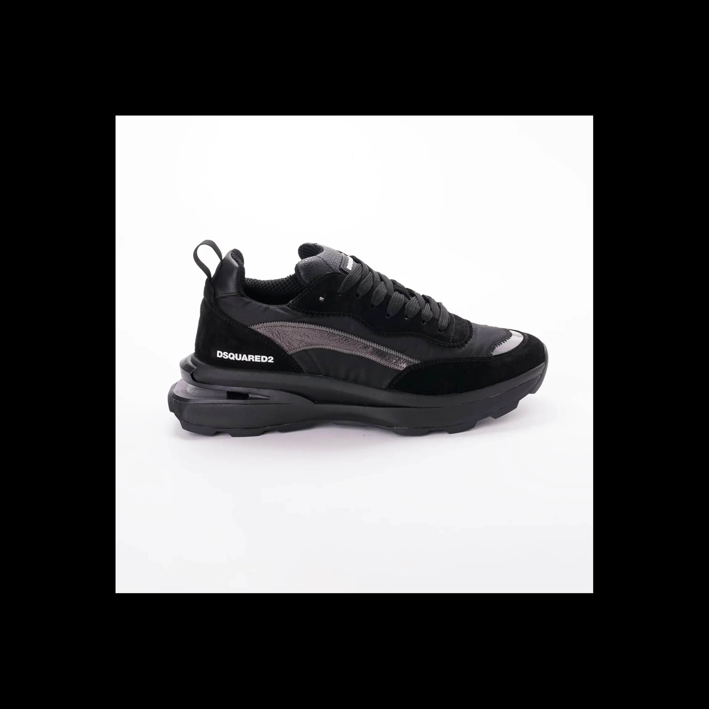 SNEAKERS DSQUARED2 SLASH, IN CAMOSCIO PELLE E TESSUTO DI COLORE NERO. STRINGATA , LOGO LATERALE E SULLA LINGUETTA, FONDO IN GOMMA. CALZATA COMODA E PIANTA LARGA.