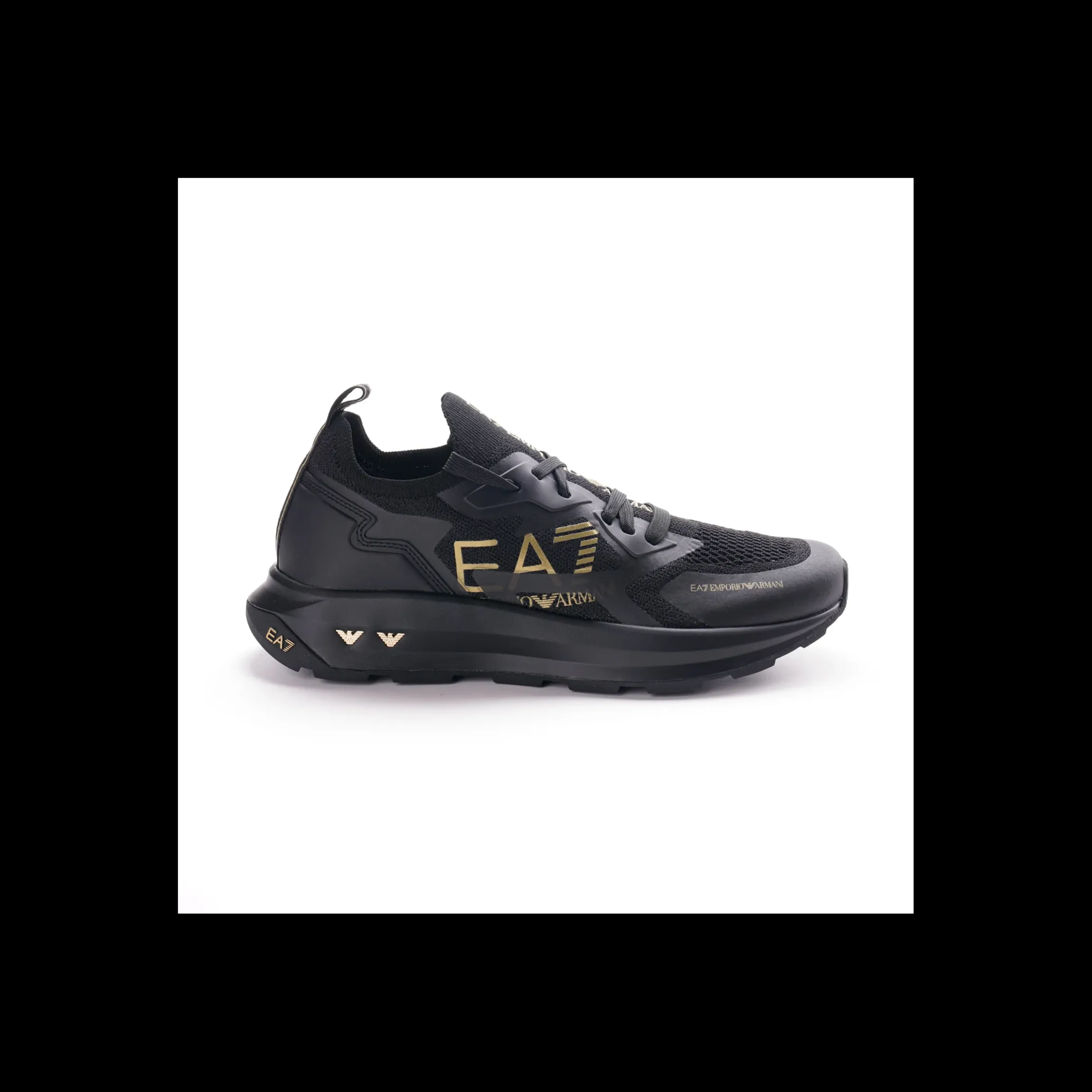 SNEAKERS EMPORIO ARMANI 7 CON DESIGN ISPIRATO AL TRAIL ORA CON TOMAIA IN MAGLIA SINTETICA ED ELASTICA.ULTRALEGGERA E’ DECORATA CON INSERTI IN GOMMA E LOGO CARATTERISTICO DEL MARCHIO DI COLORE GOLD NEL TALLONE E LATERLAMENTE. COMODISSIMA E ADATTA A QUALSIASI TIPO DI CALZATA.