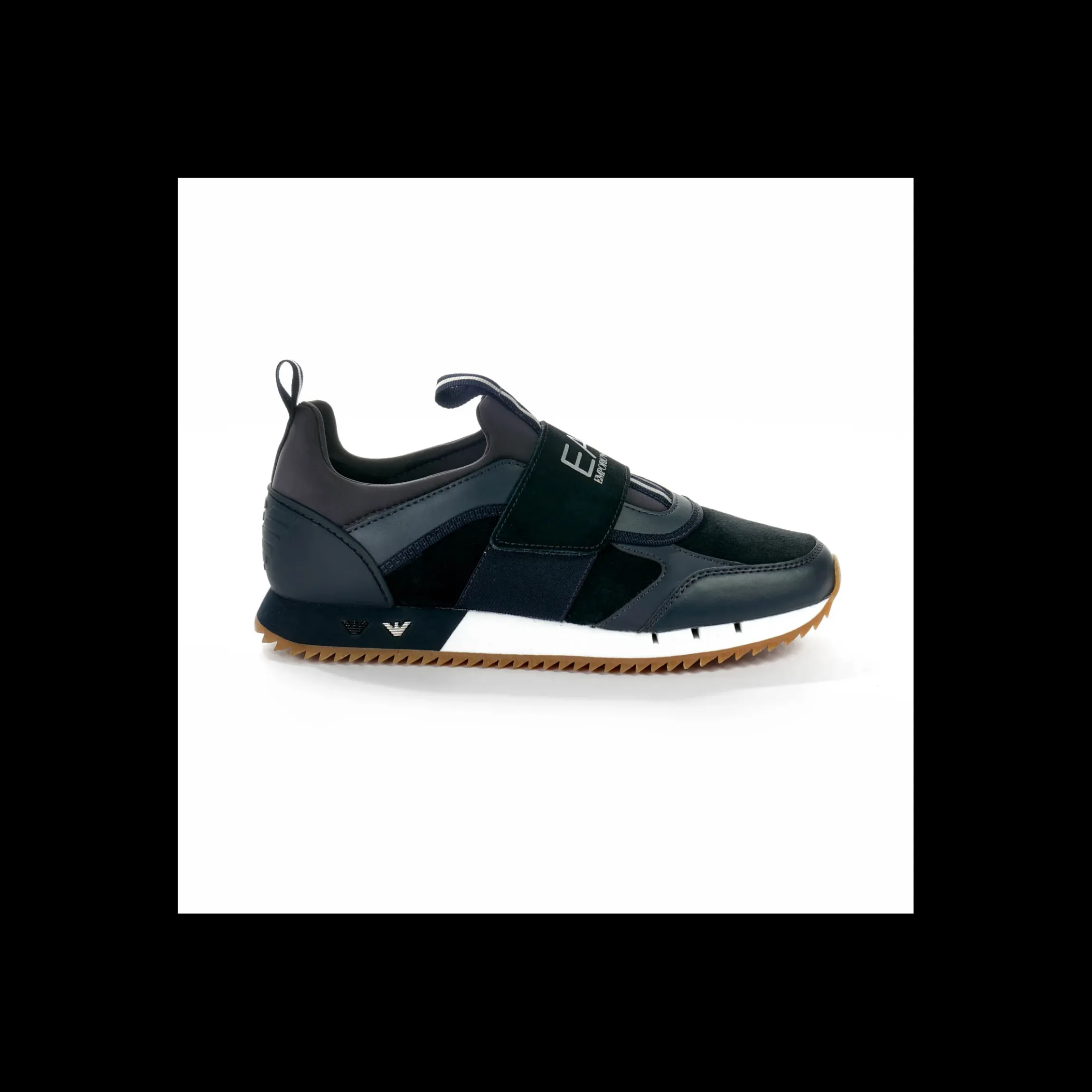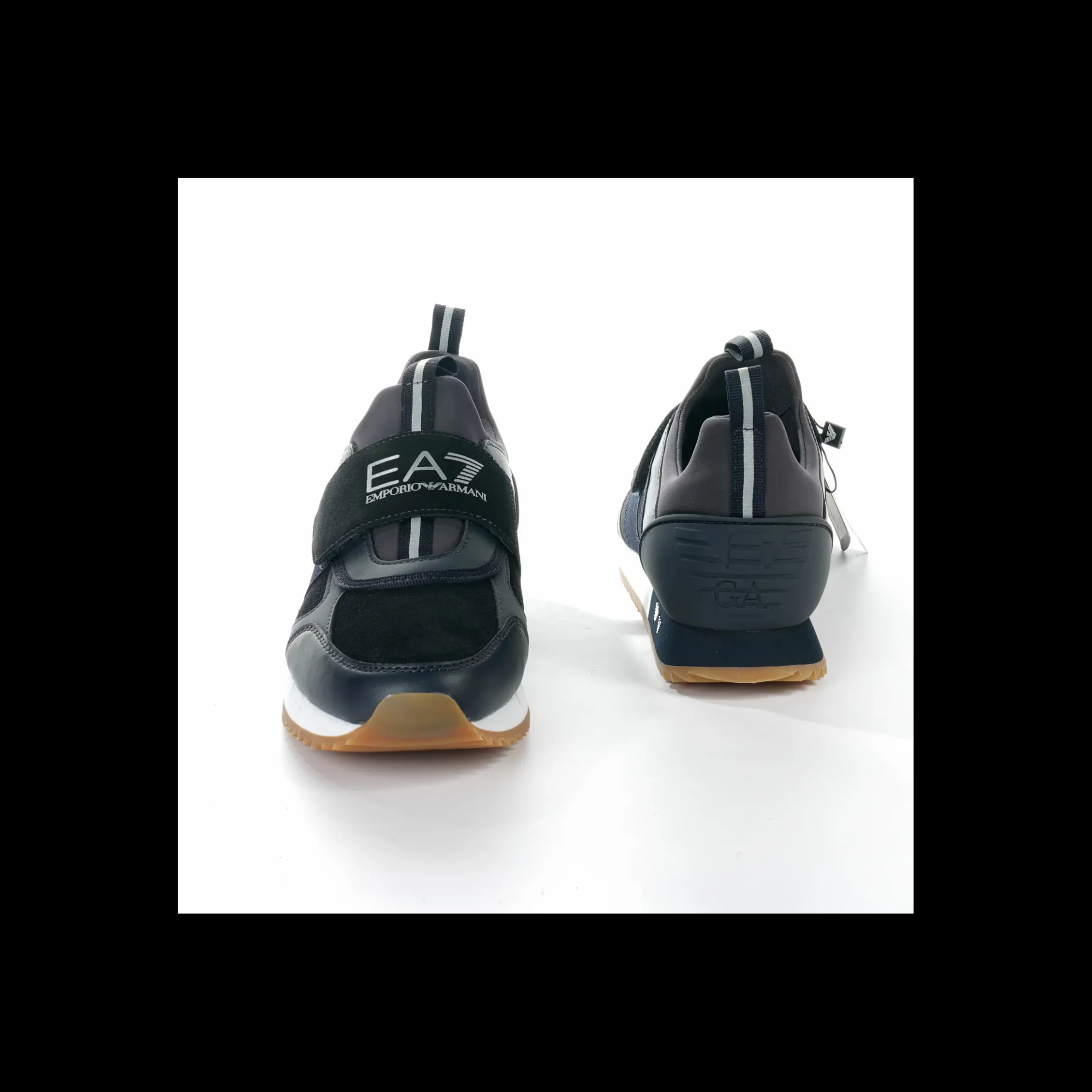 Sneakers Slip-on X8X066 EMPORIO ARMANI in pelle e camoscio colore blu scuro, dettagli logo a contrasto, fondo gomma antiscivolo