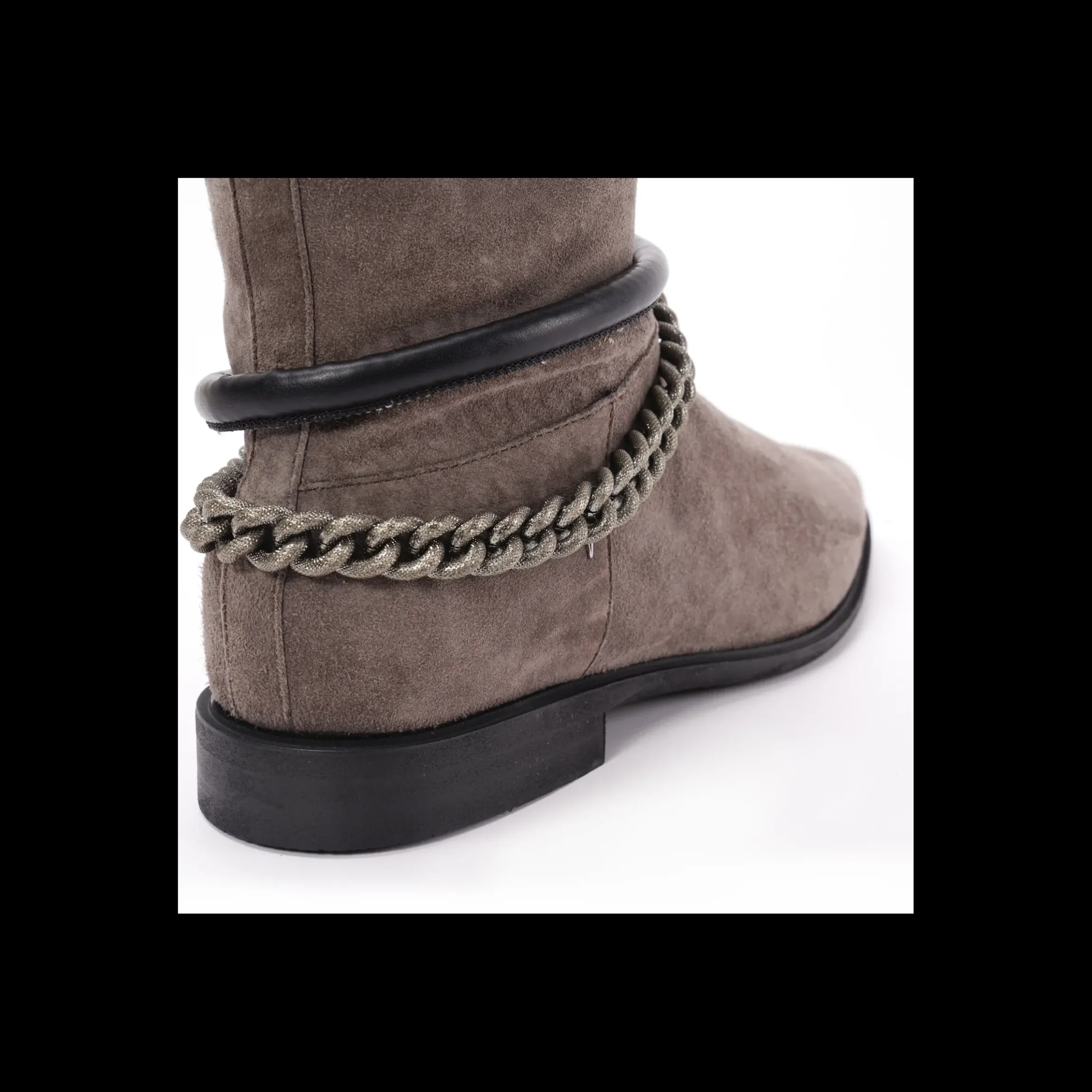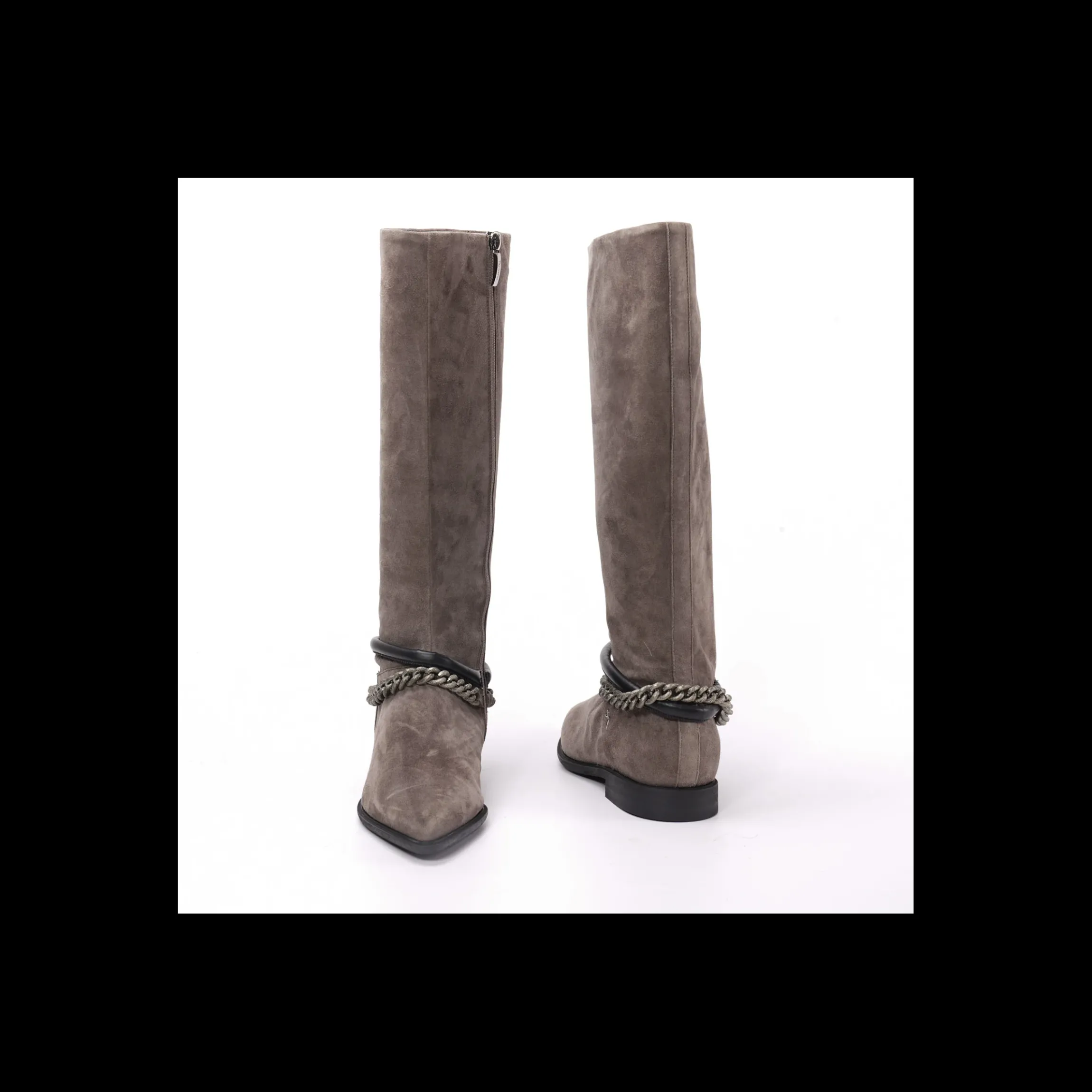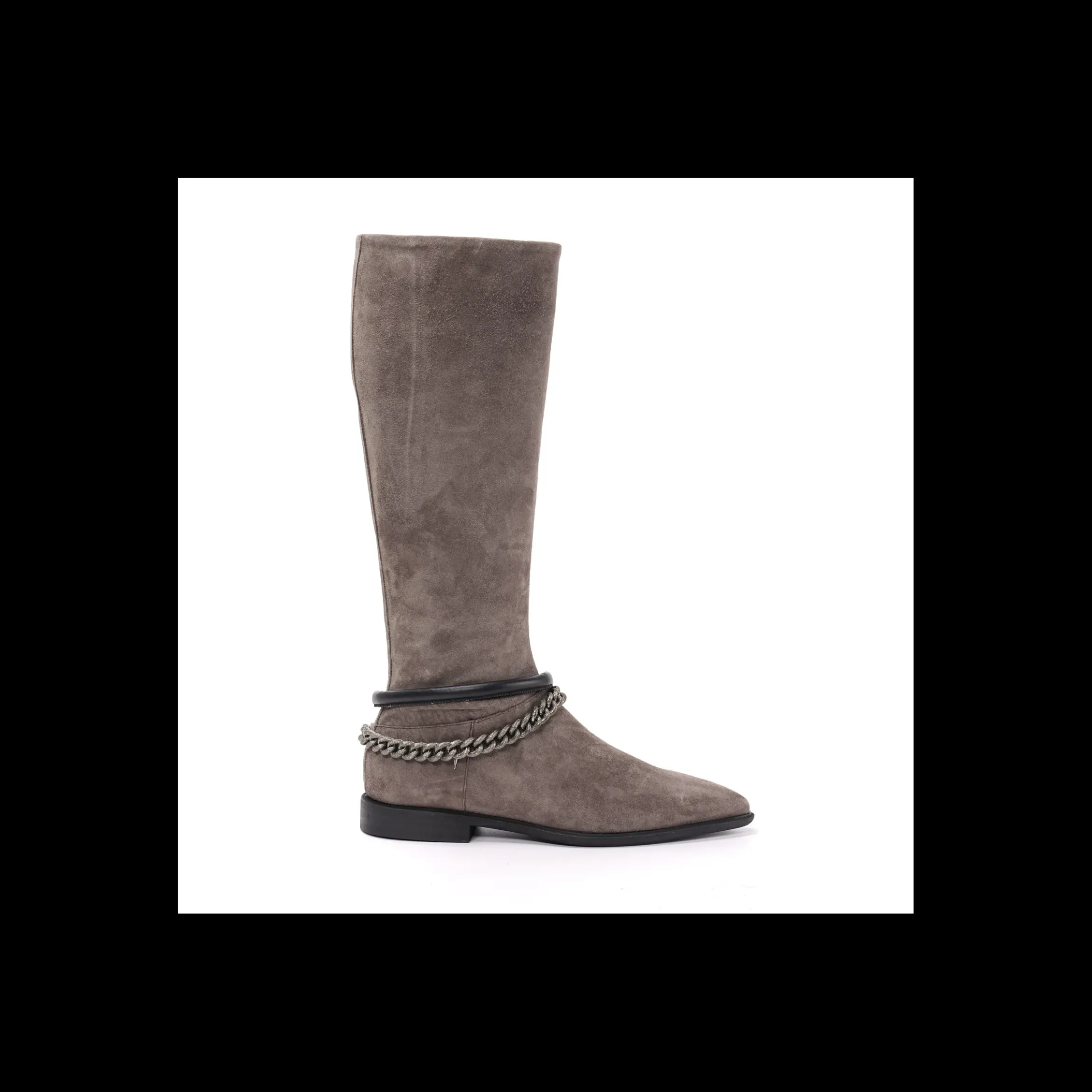 STIVALE CESRAE PACIOTTI IN CAMOSCIO, A PUNTA, TACCO CM 3, CON APPLICAZIONE DI CATENA. ZIP LATERALE. COMODISSIMO.