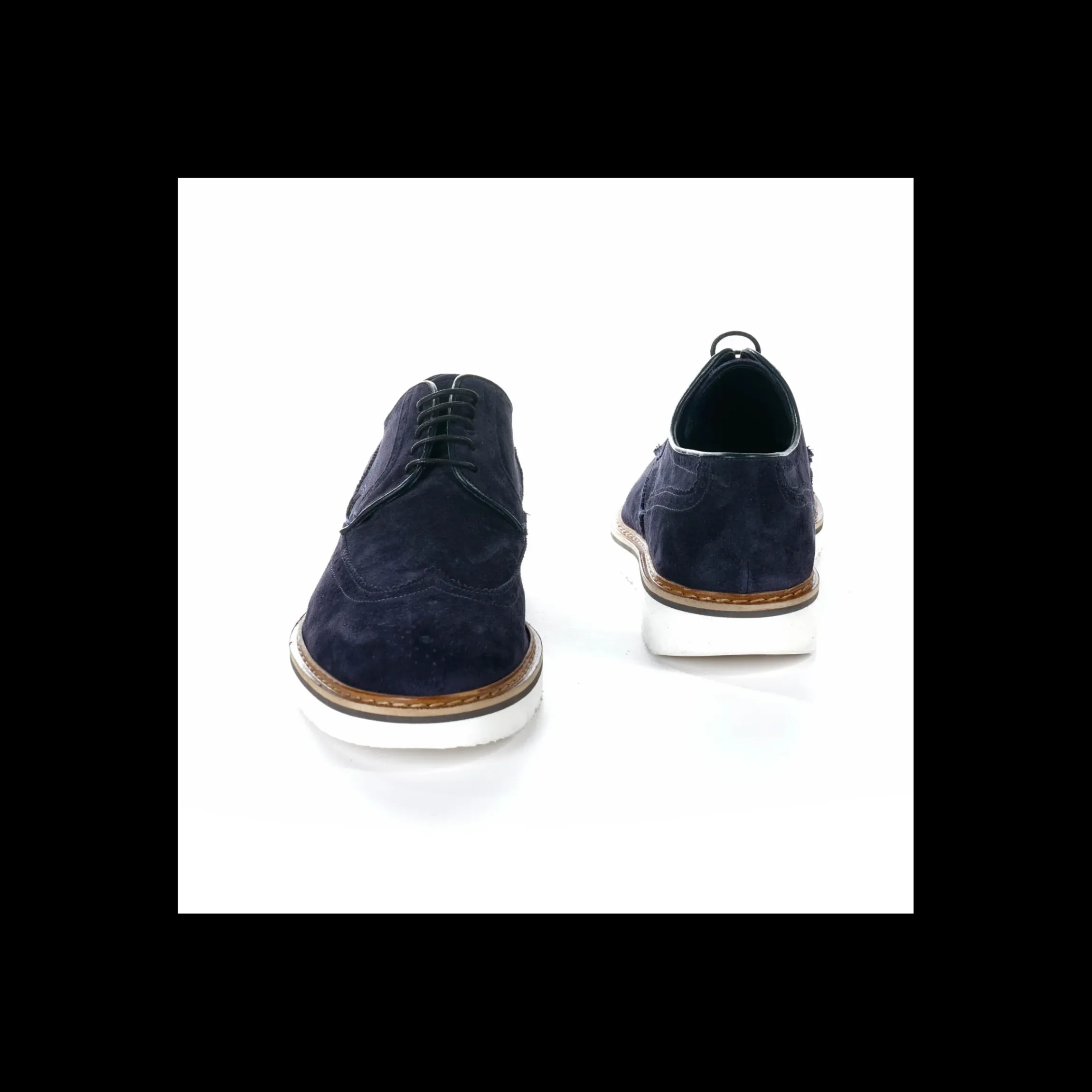 Stringata ANDREA NOBILE in camoscio colore blu scuro con dettagli colore cuoio, interno in pelle, fondo gomma colore bianco .