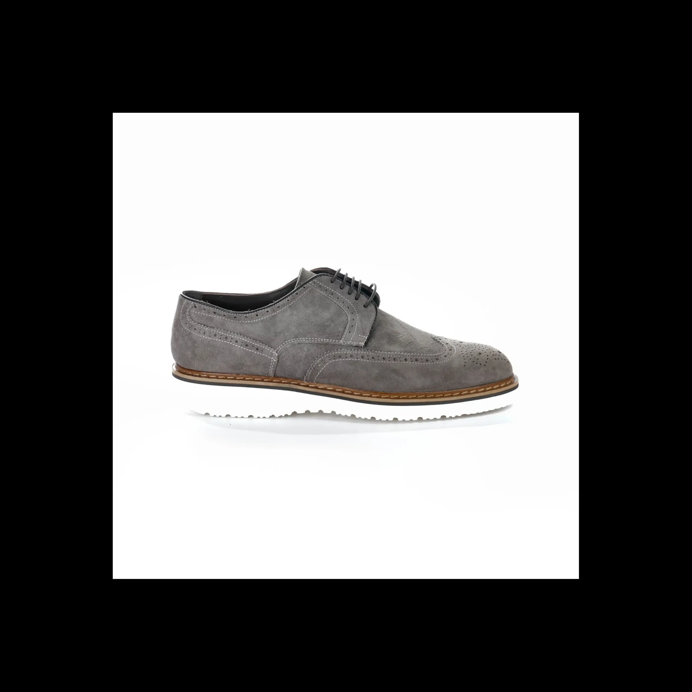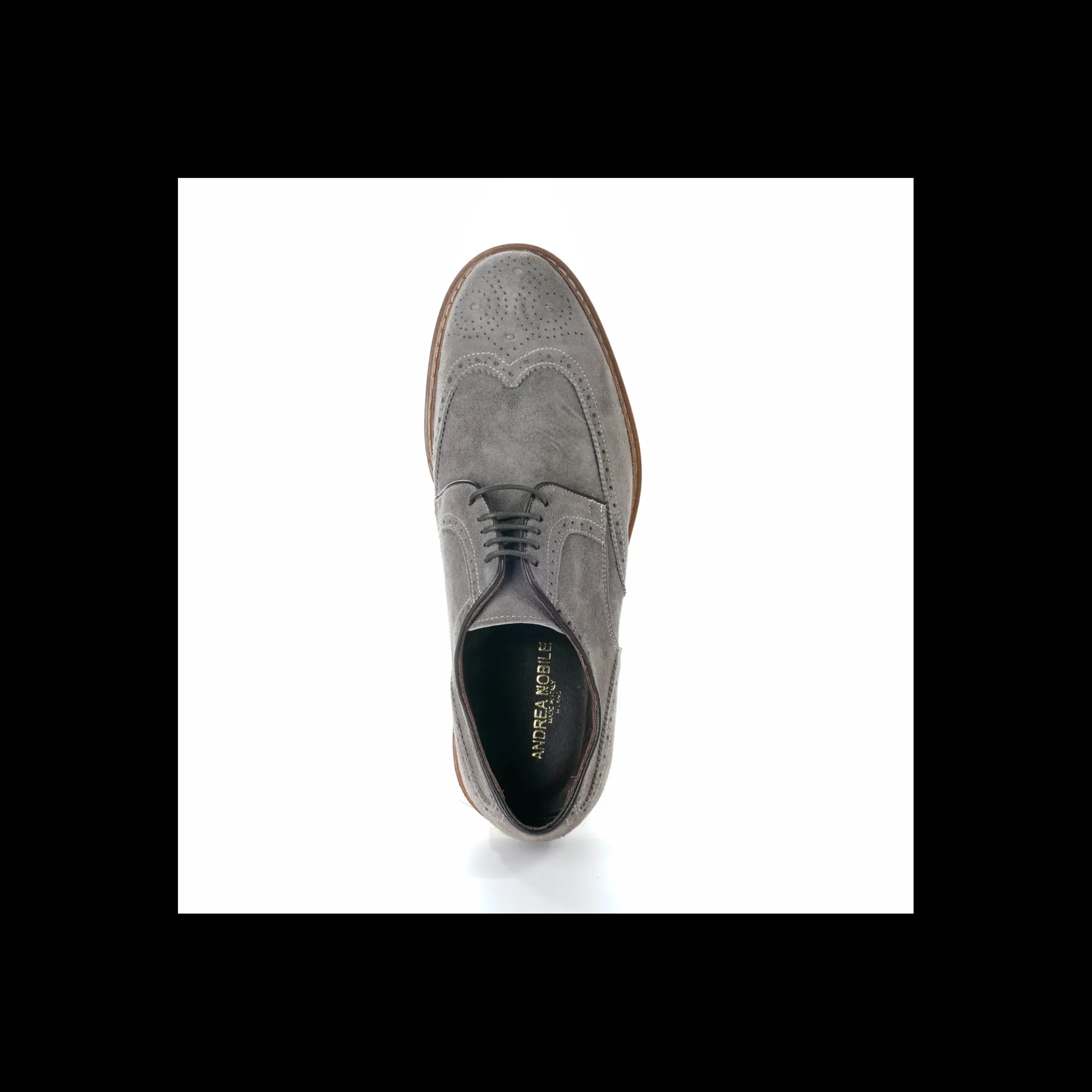 Stringata ANDREA NOBILE in camoscio colore grigio con dettagli colore cuoio, interno in pelle, fondo gomma colore bianco