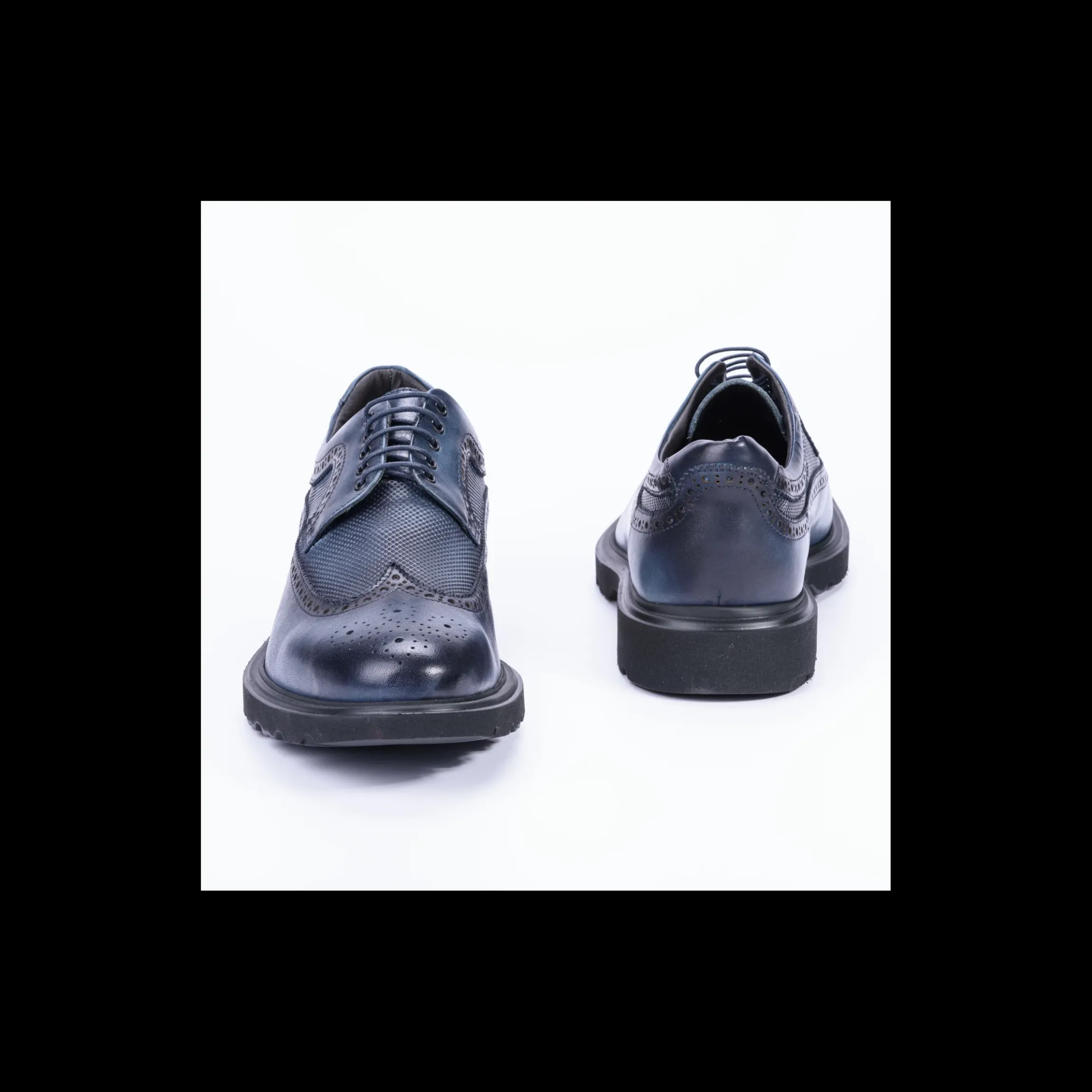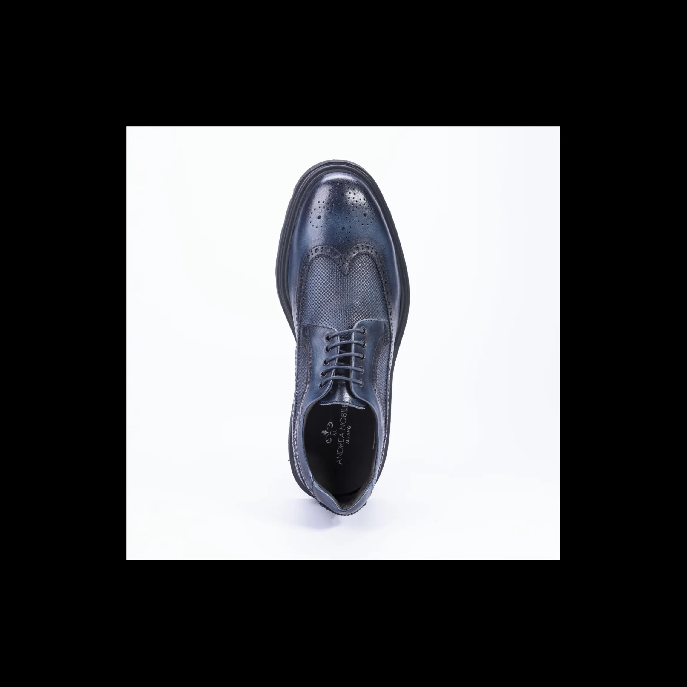 Stringata Andrea Nobile Made In Italy stile inglese in pelle con dettagli microforati colore blu, fondo gomma.