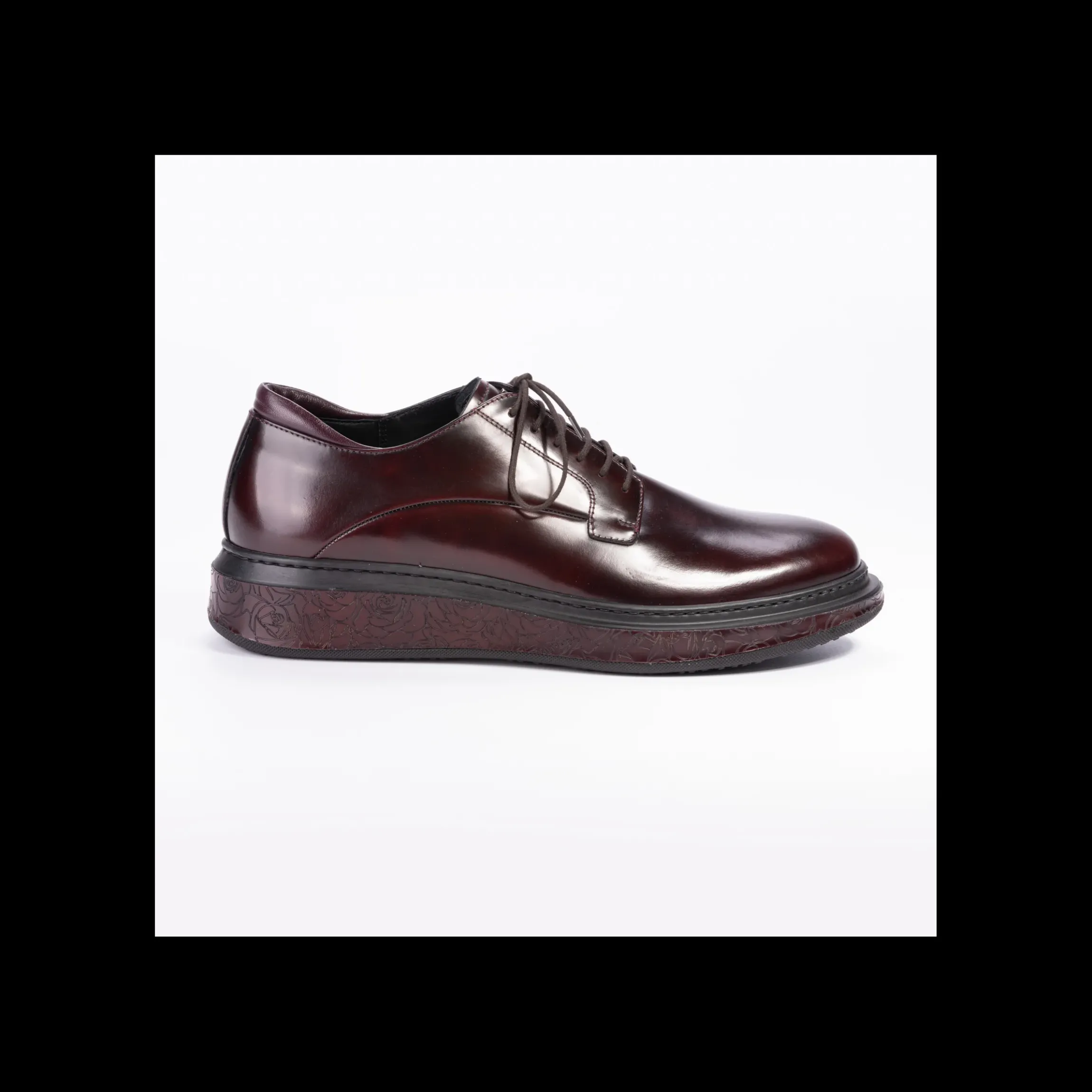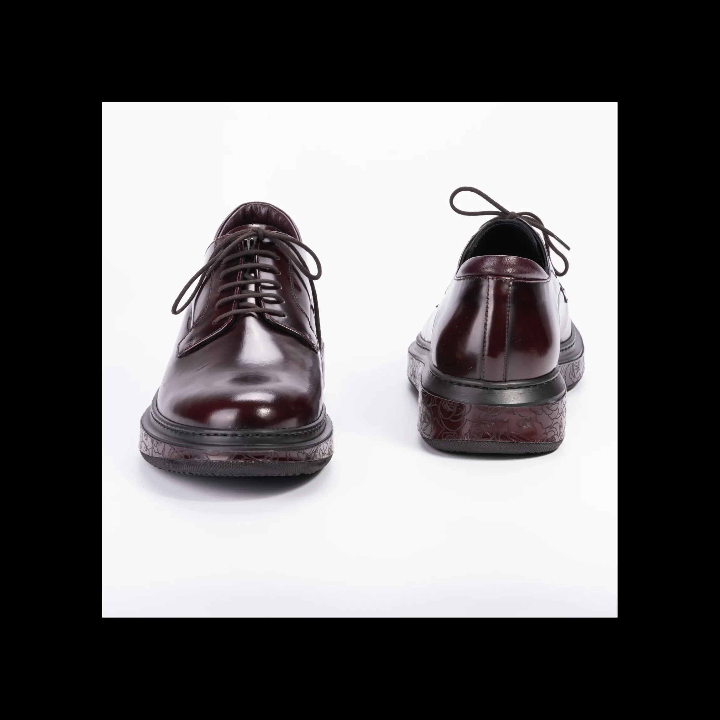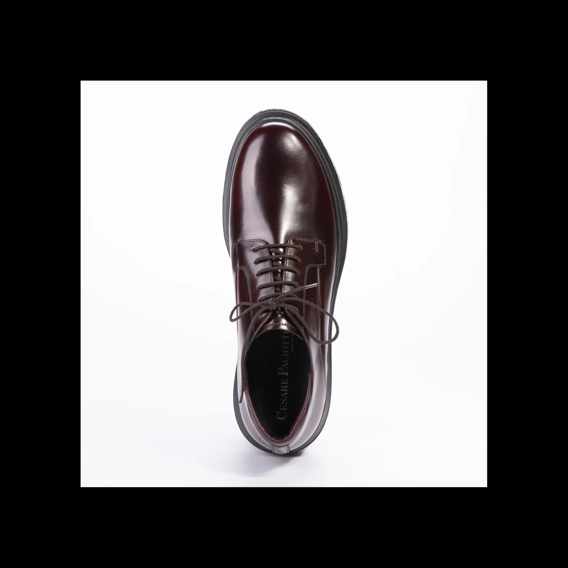 Stringata CESARE PACIOTTI uomo in pelle colore melanzana, allacciata, interno in pelle, profilatura in gomma nera, para in pelle intagliata con rose colore melanzana.