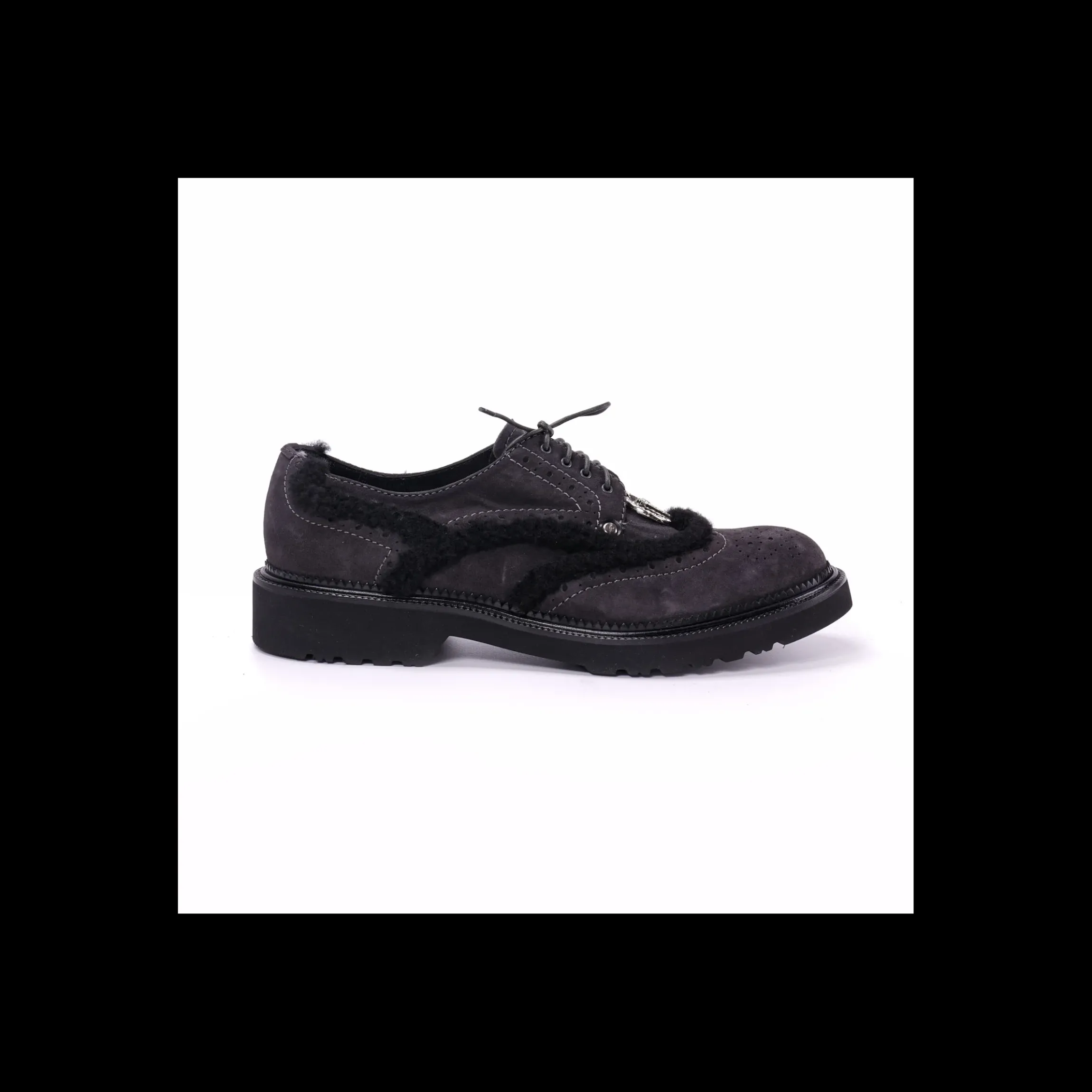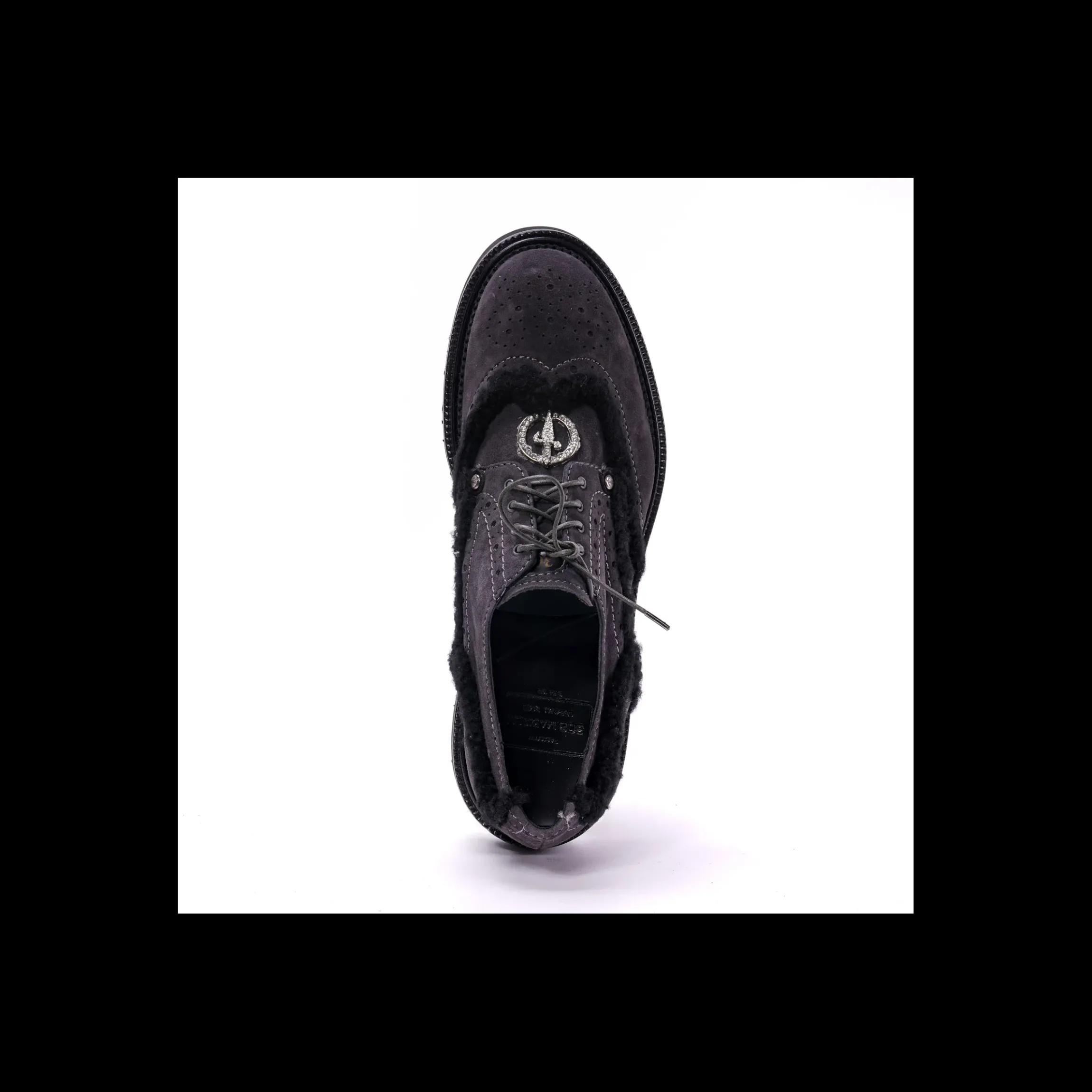 Stringata 308 Madison Cesare Paciotti. stringata , stile inglese, in camoscio grigio e pelliccia di colore nero.