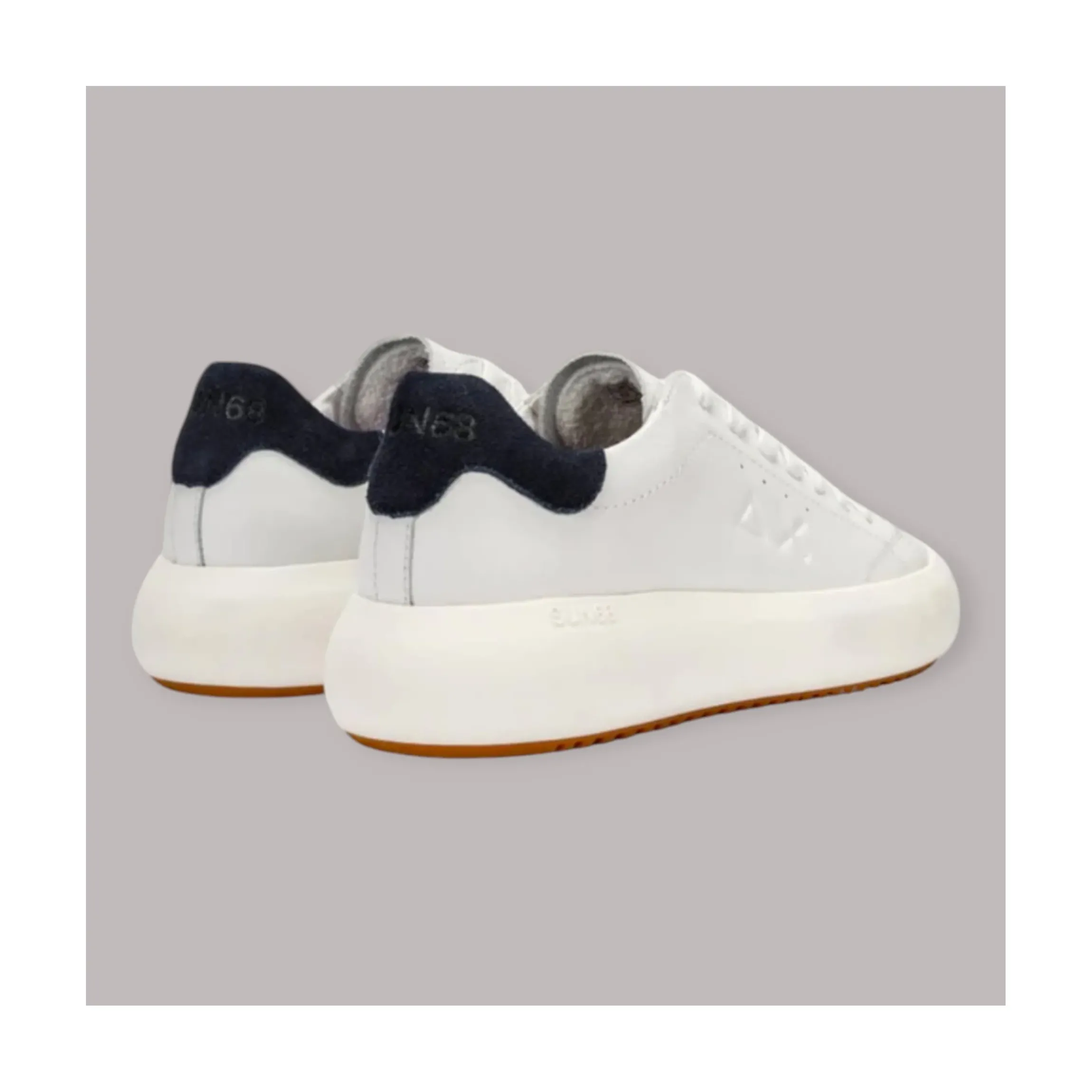 SUN 68 BIG BOY CLASSIC SNEAKERS UOMO realizzata in pelle e dettaglio in camoscio di colore blu sul tallone, logo stampato sul lato, chiusura con lacci in cotone e suola alta a cassetta in gomma.