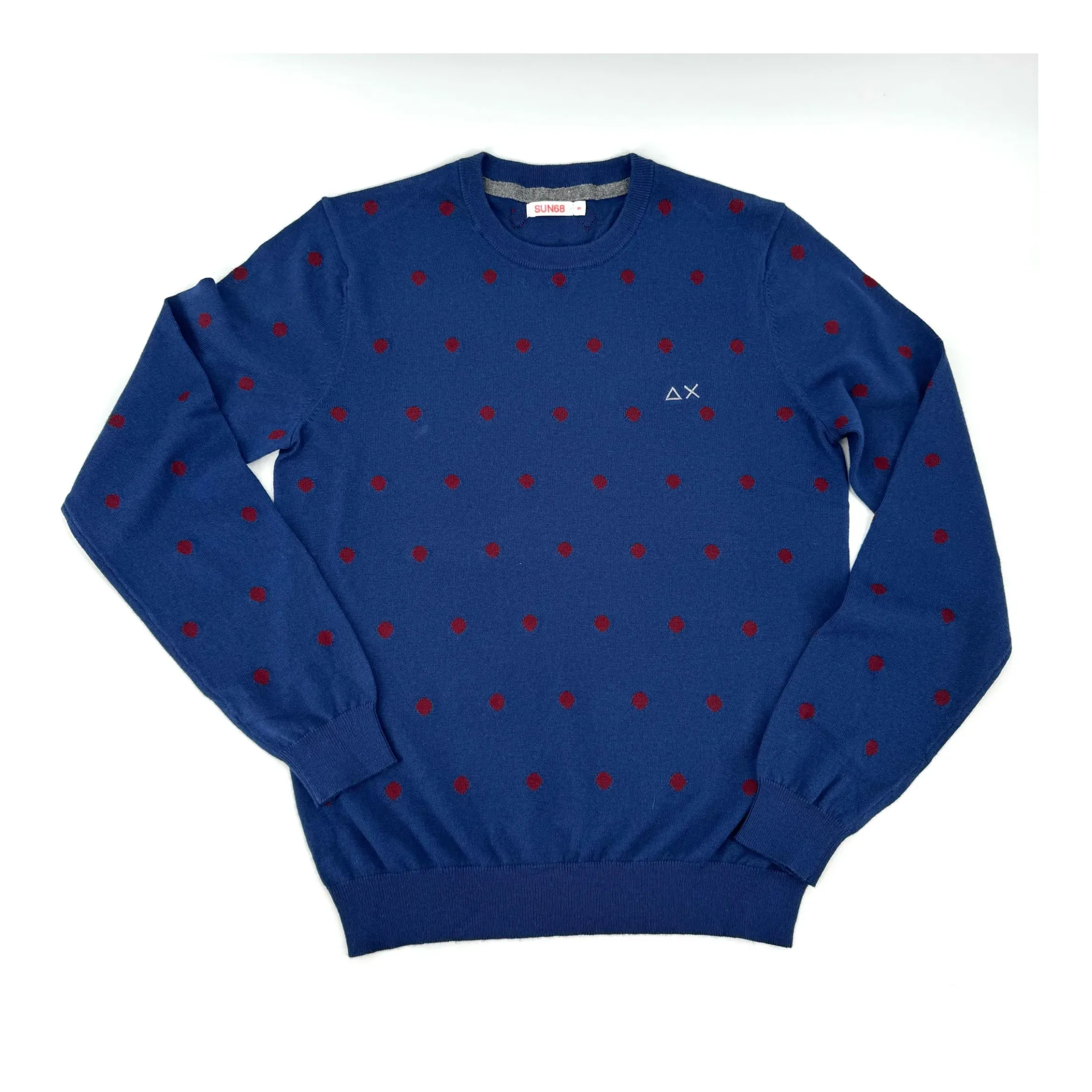 SUN 68 maglioncino in varie macro fantasie. La maglia è realizzata con composizione 50%. Si presenta con la base di tutte le varianti a tinta unita, e simpatici disegni che la rendono unica e spiritosa.