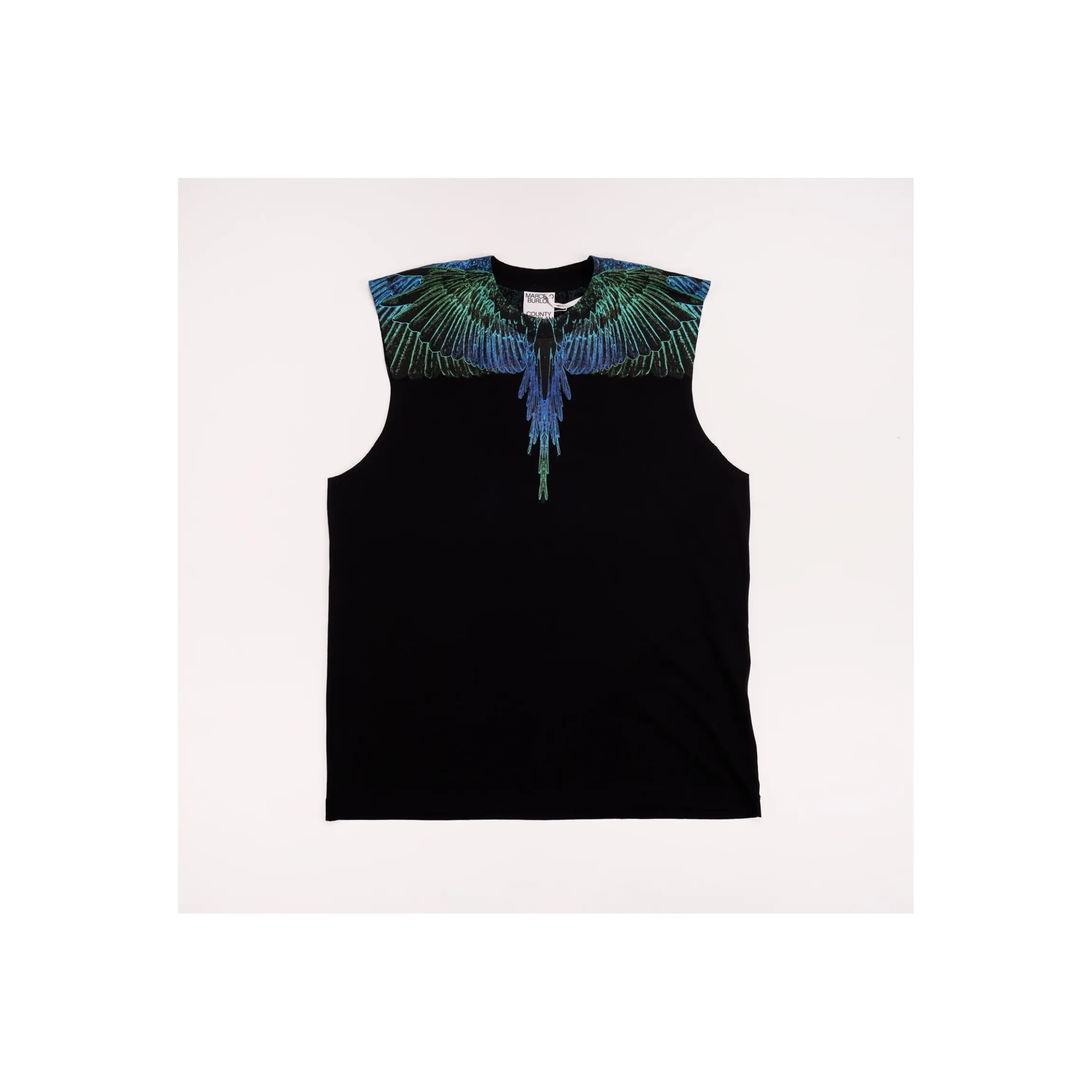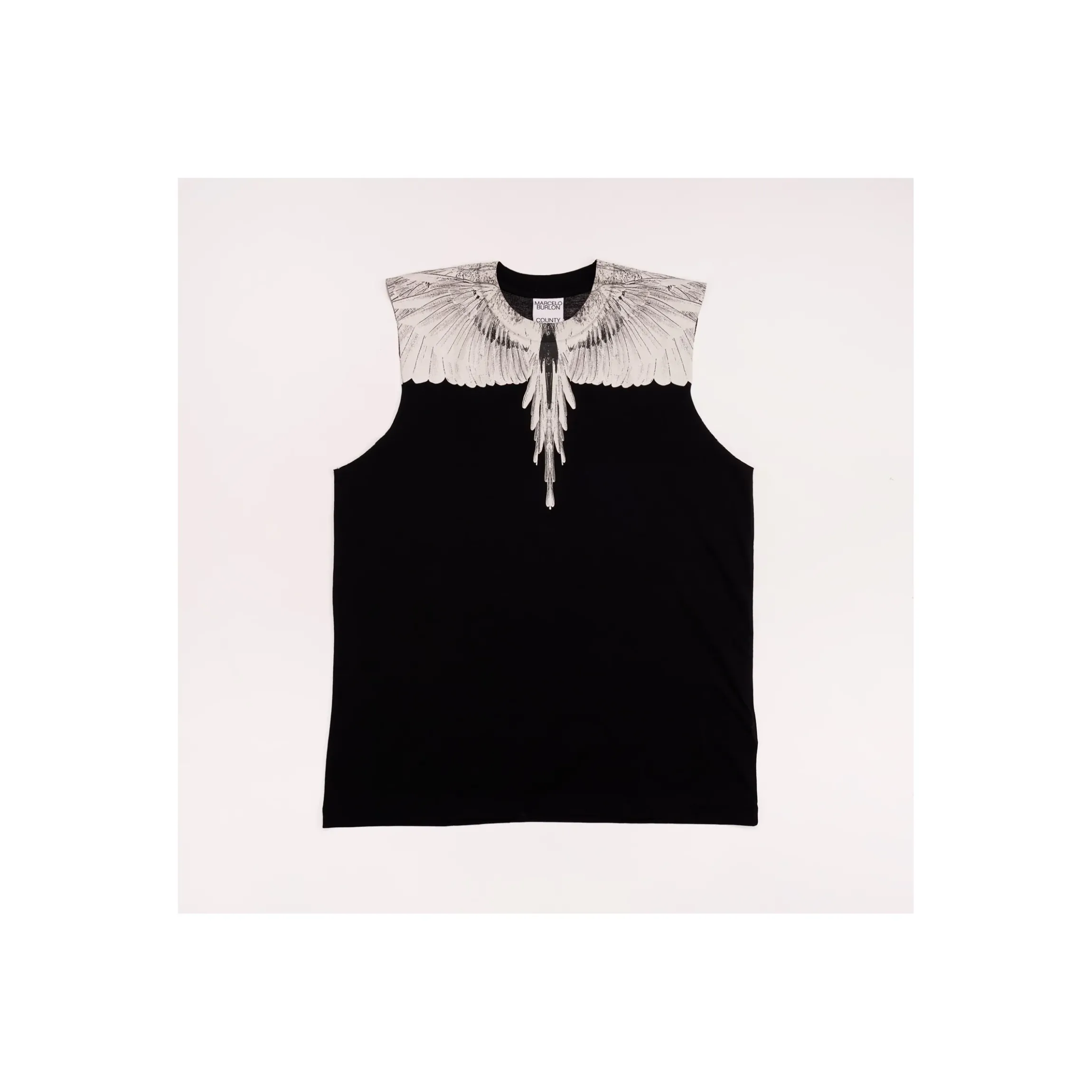 CANOTTA T-SHIRT MARCELO BURLON, CON STAMPA ICONICA. IN COTONE FRESCHISSIMO , DISPONIBILE NEL COLORE NERO CON STAMPA O BOANCA O BLU. UN CAPO IMMANCABILE PER GLI APPASSIONATI DEL BRAND.