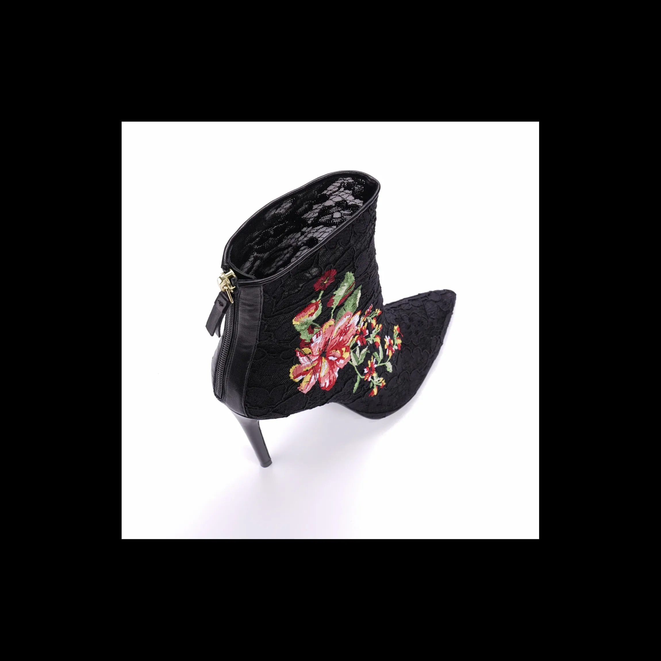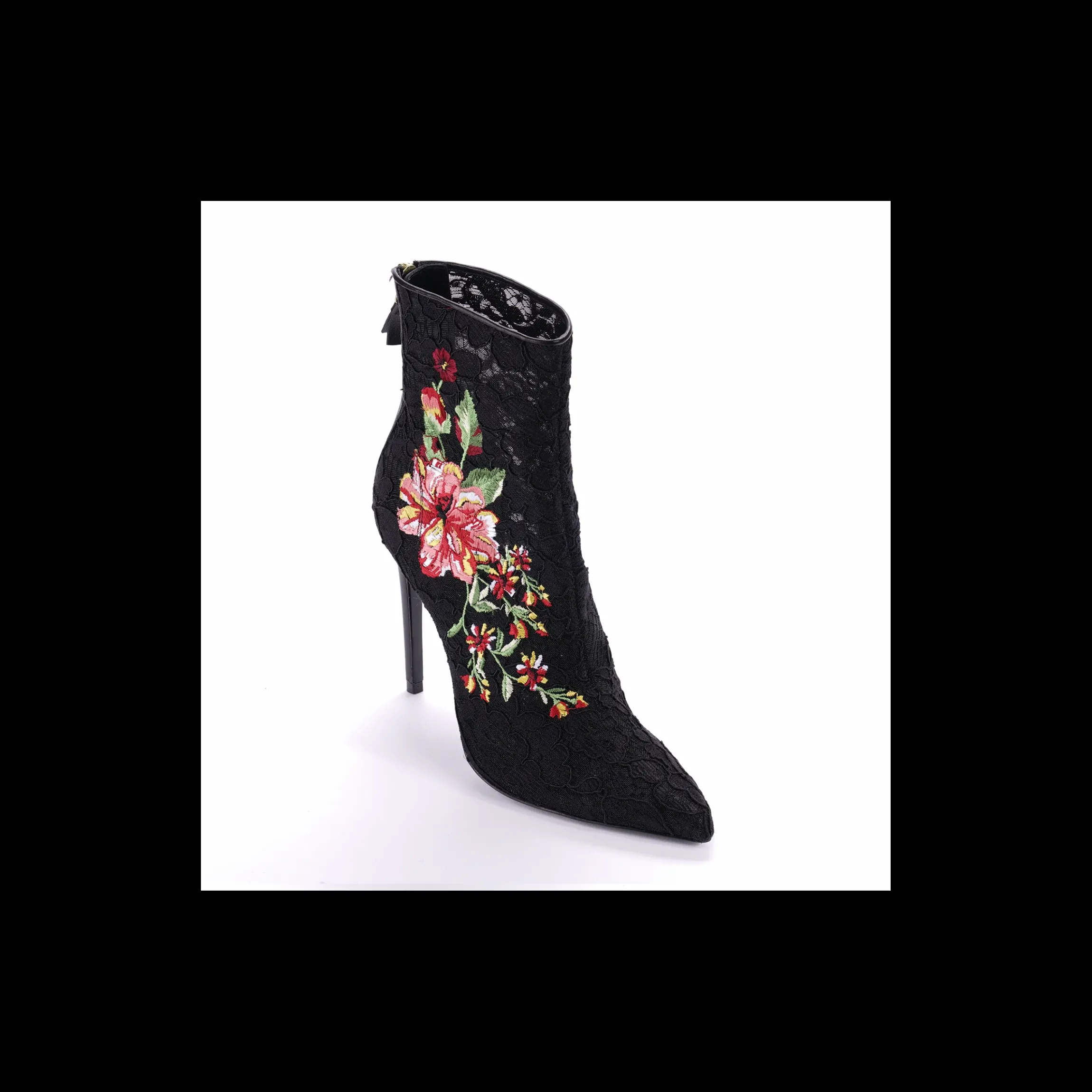 Tronchetto in pizzo e macramè TWIN-SET in colore nero e dettagli floreali multicolore