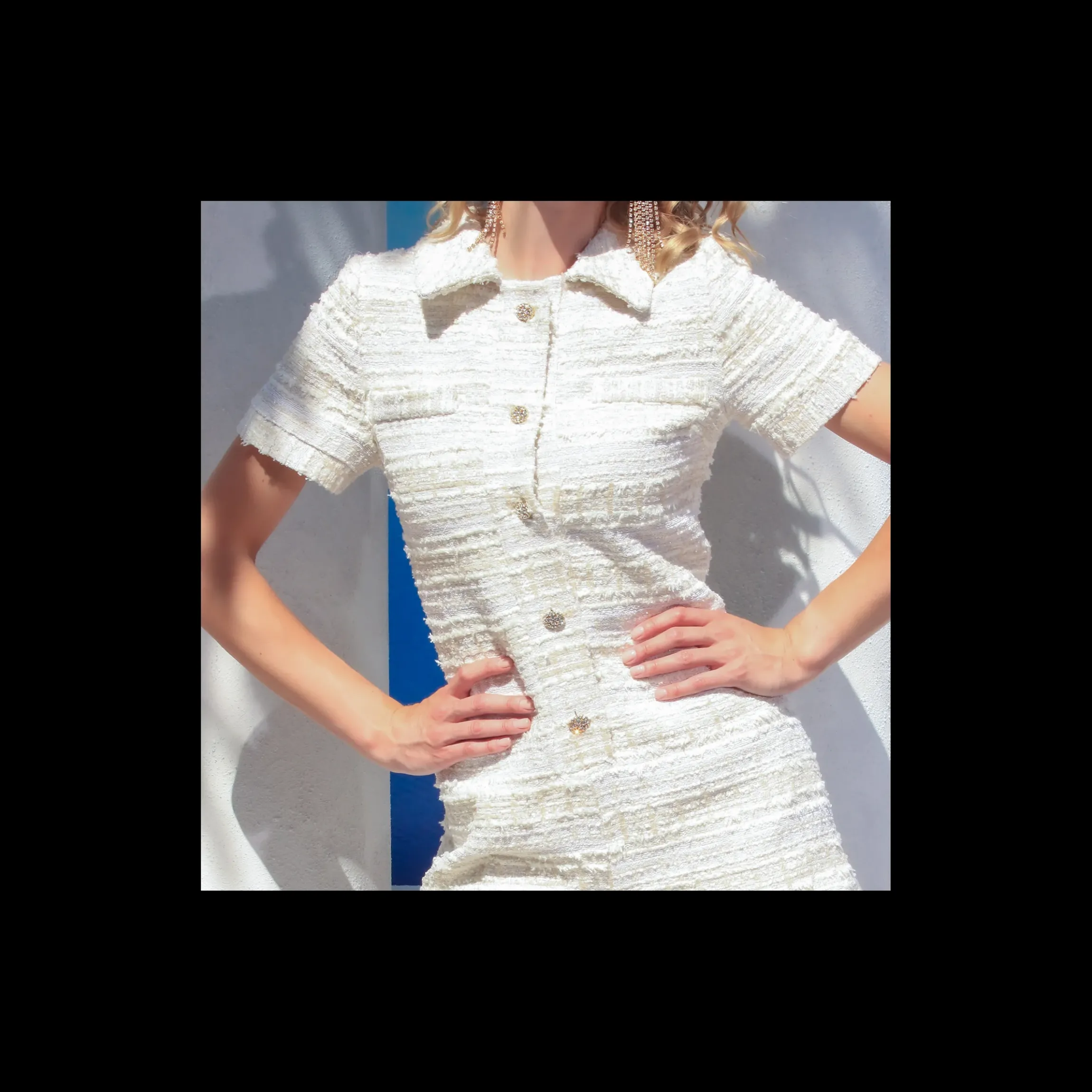 Tuta Giulia N , corta, con maxy bottoni gioiello, delicatissimo colore sabbia e corda , fantasia effetto tweed.