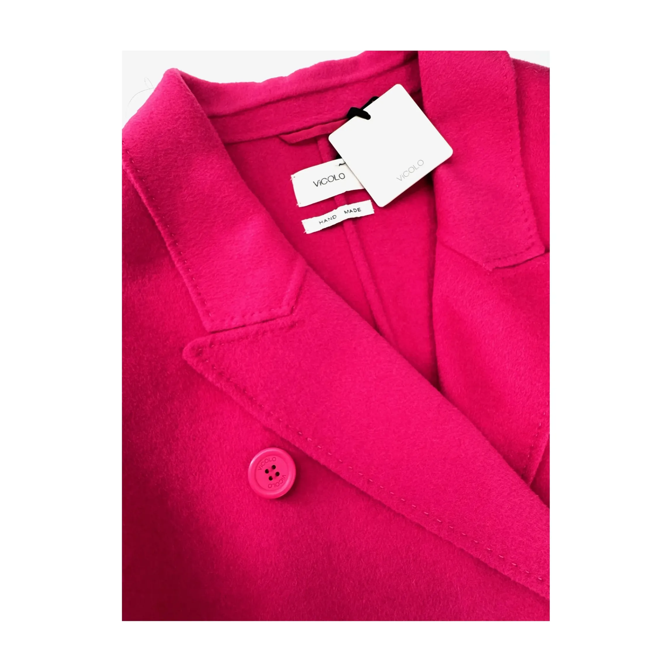 VICOLO cappotto doppio petto fucsia. Cappotto in misto lana con colletto a revers e maniche lunghe. Tasche interiori a pattina applicate con chiusura frontale doppiopetto.