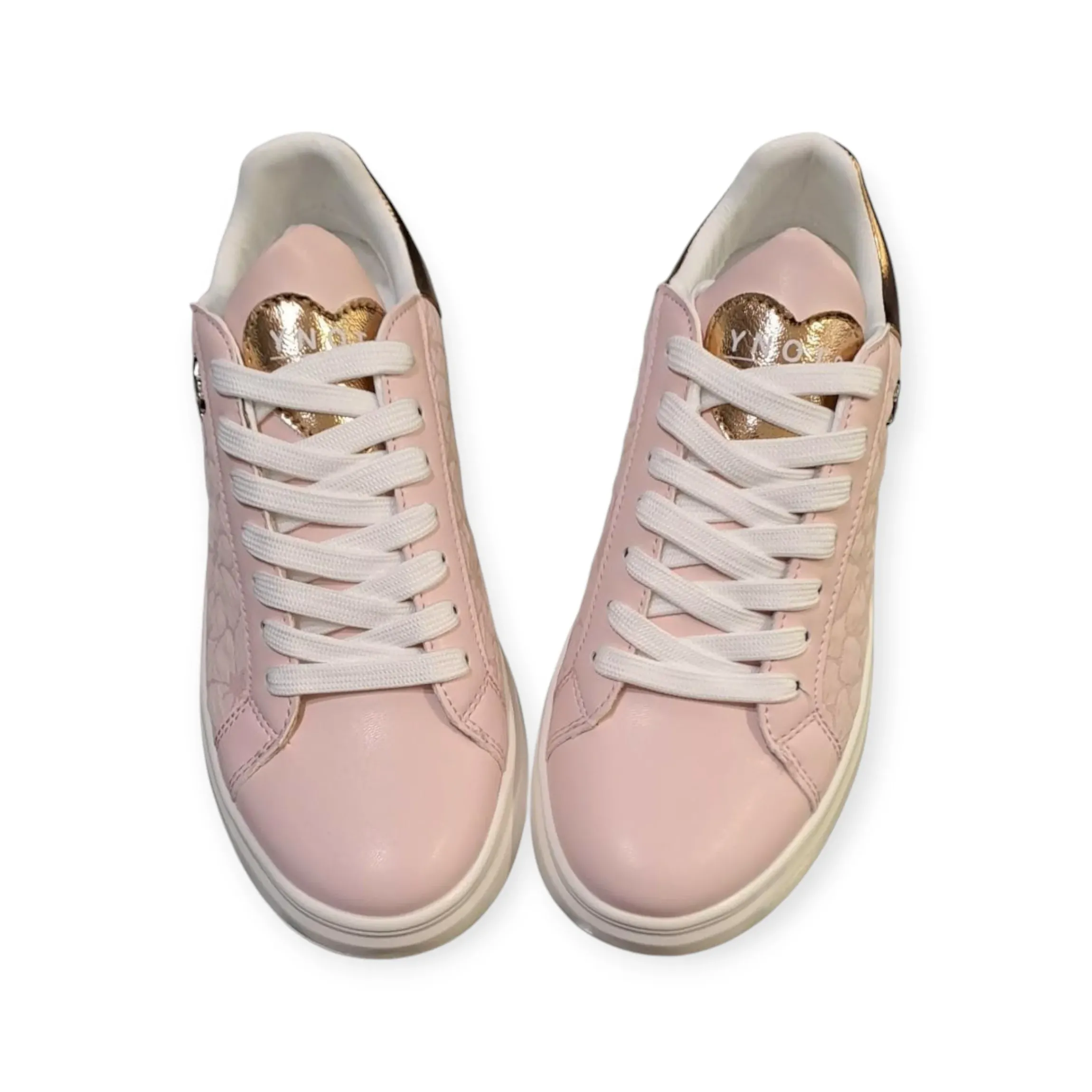 YNOT MILANO SNEAKERS DONNA PELLE E TESSUTO matelassè stampa fiori tono su tono. Il modello ha una linea comoda e versatile con sottopiede estraibile in lycra e suola in gomma alta 5 cm. Dettagli logo a contrasto colore sul tallone e sulla linguetta e logo in acciaio sul lato. Disponibile nei colori rosa e nero