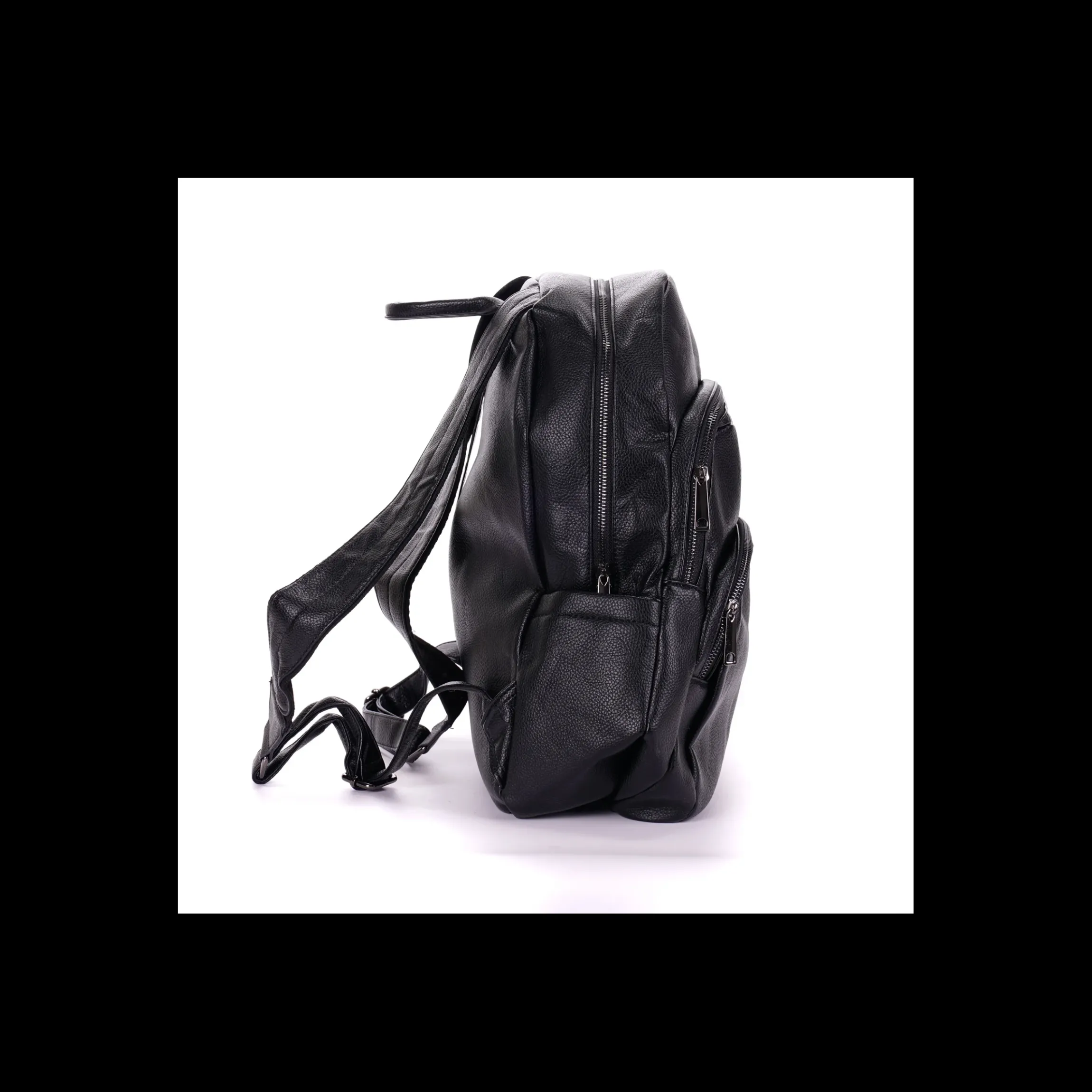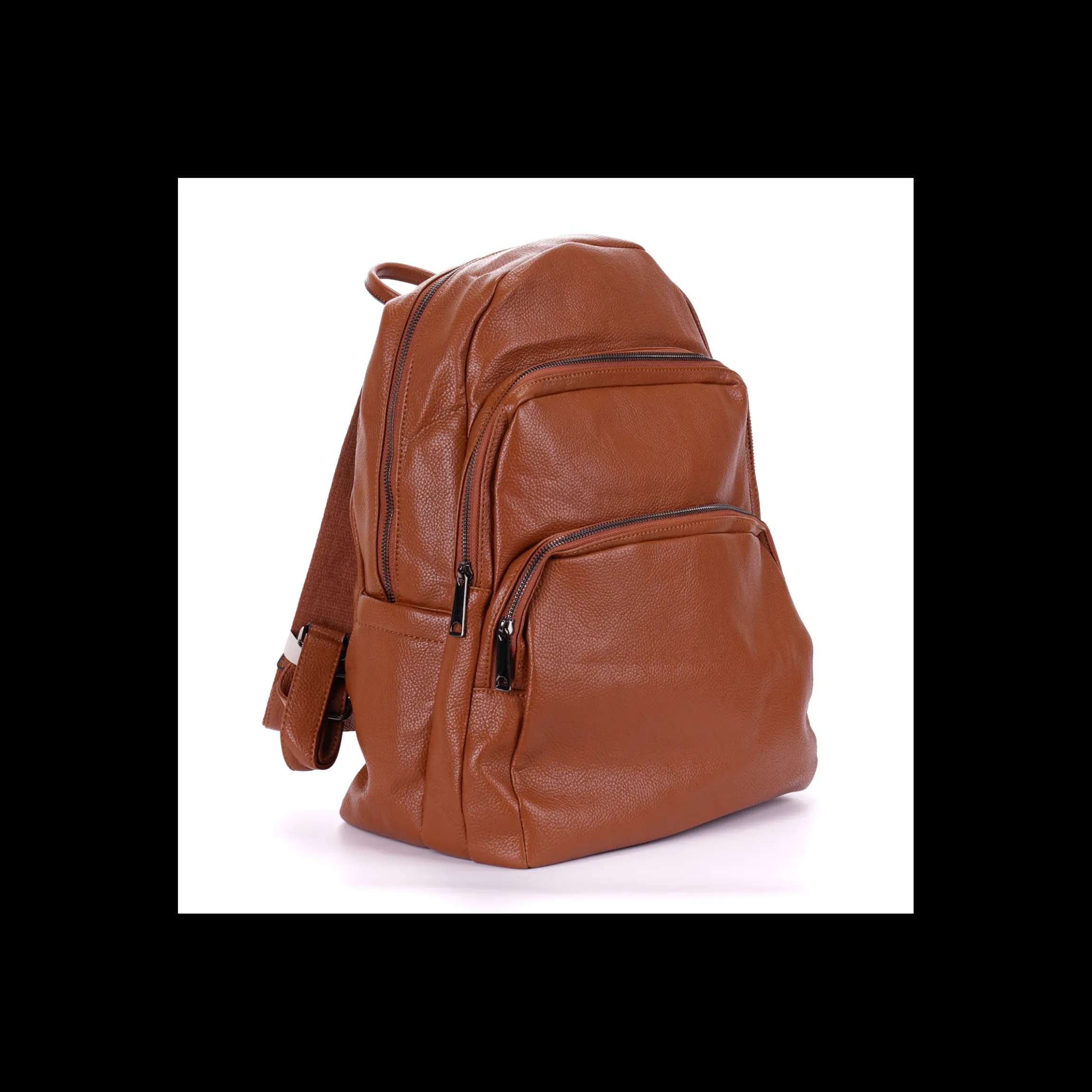 ZAINO UNISEX, MULTI TASCHE CON ZIP, IN ECOPELLE SUPER MORBIDA, DISPONIBILE NEL COLORE NERO E NEL COLORE CUOIO.