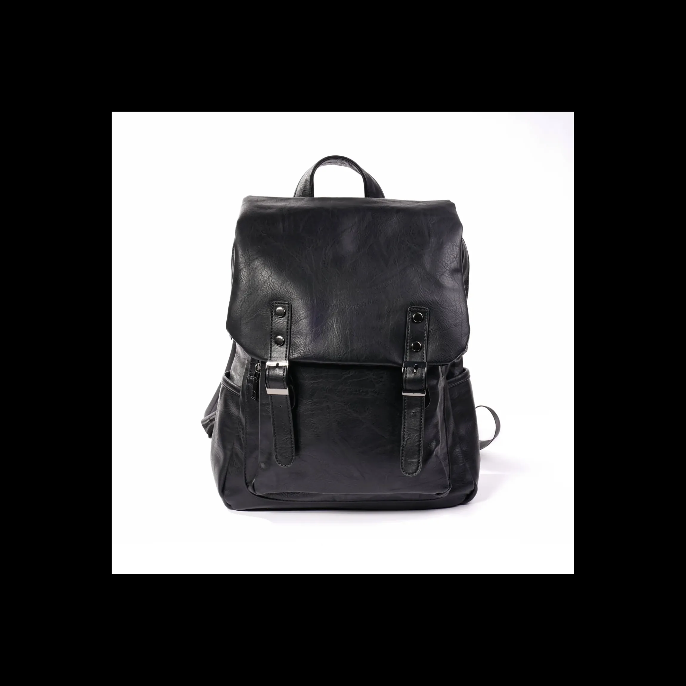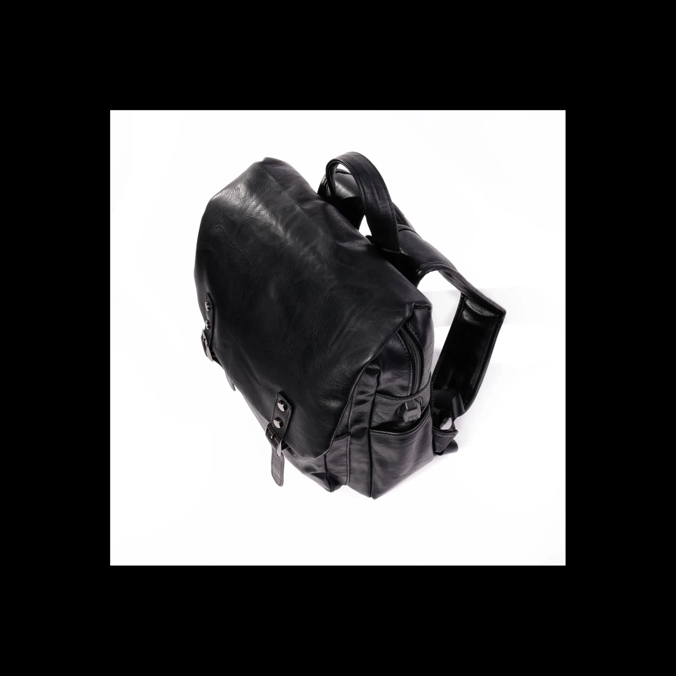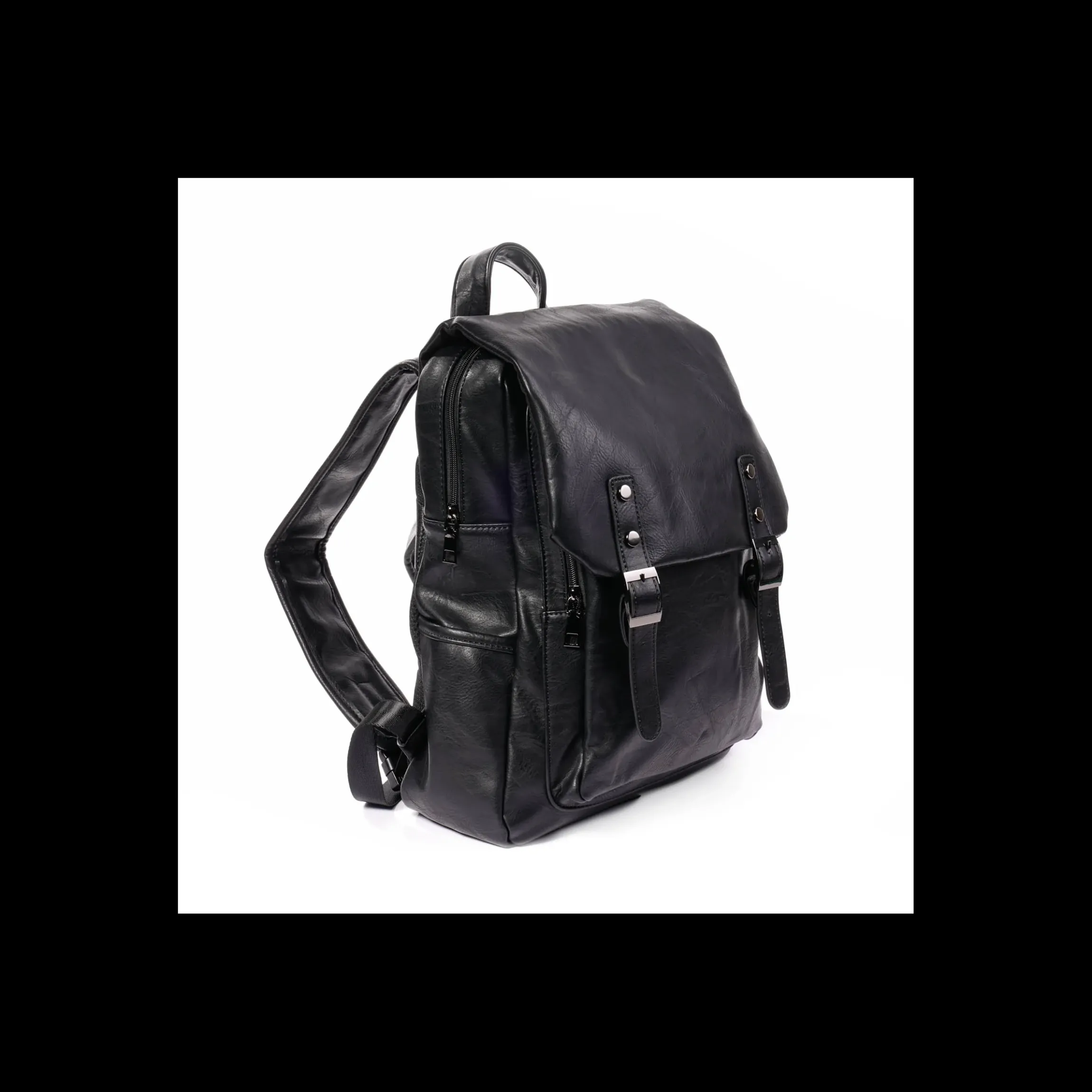 Zaino unisex MADE IN ITALY in eco-pelle colore nero , chiusura automatica con doppia finta fibbia cromata, multi tasca interna