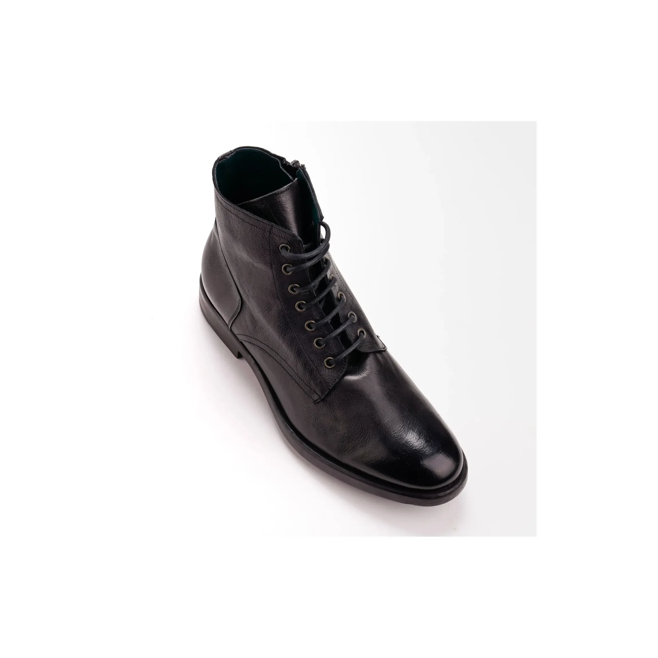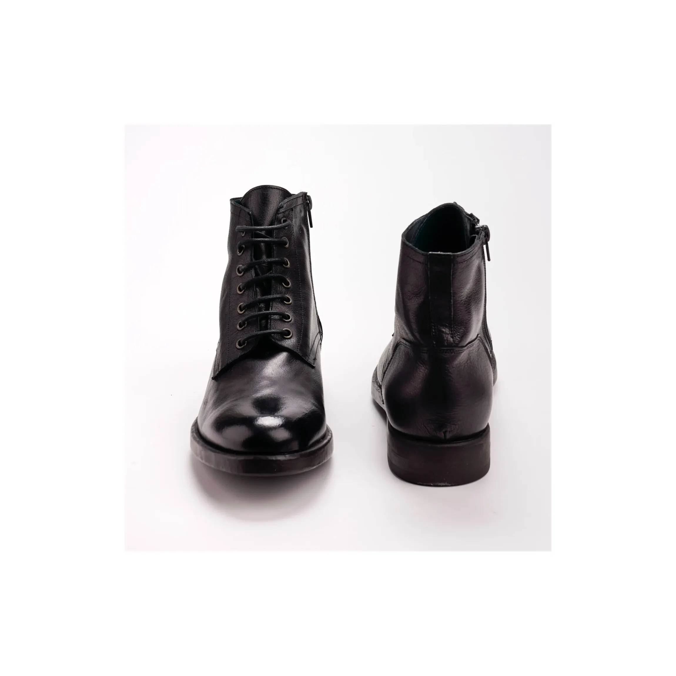GLI STIVALETTI SONO MUNITI DI CHIUSURA ATTRAVERSO STRINGHE E ZIP INTERNA ALLA SCARPA. TINTEGGIATA RIGOROSAMENTE A MANO E’ DISPONIBILE NELLA VERSIONE IN PELLE DI COLORE NERO E TESTA DI MORO E NELLA VERSIONE IN CAMOSCIO OLEATO DI COLORE MARRONE CASTORO.